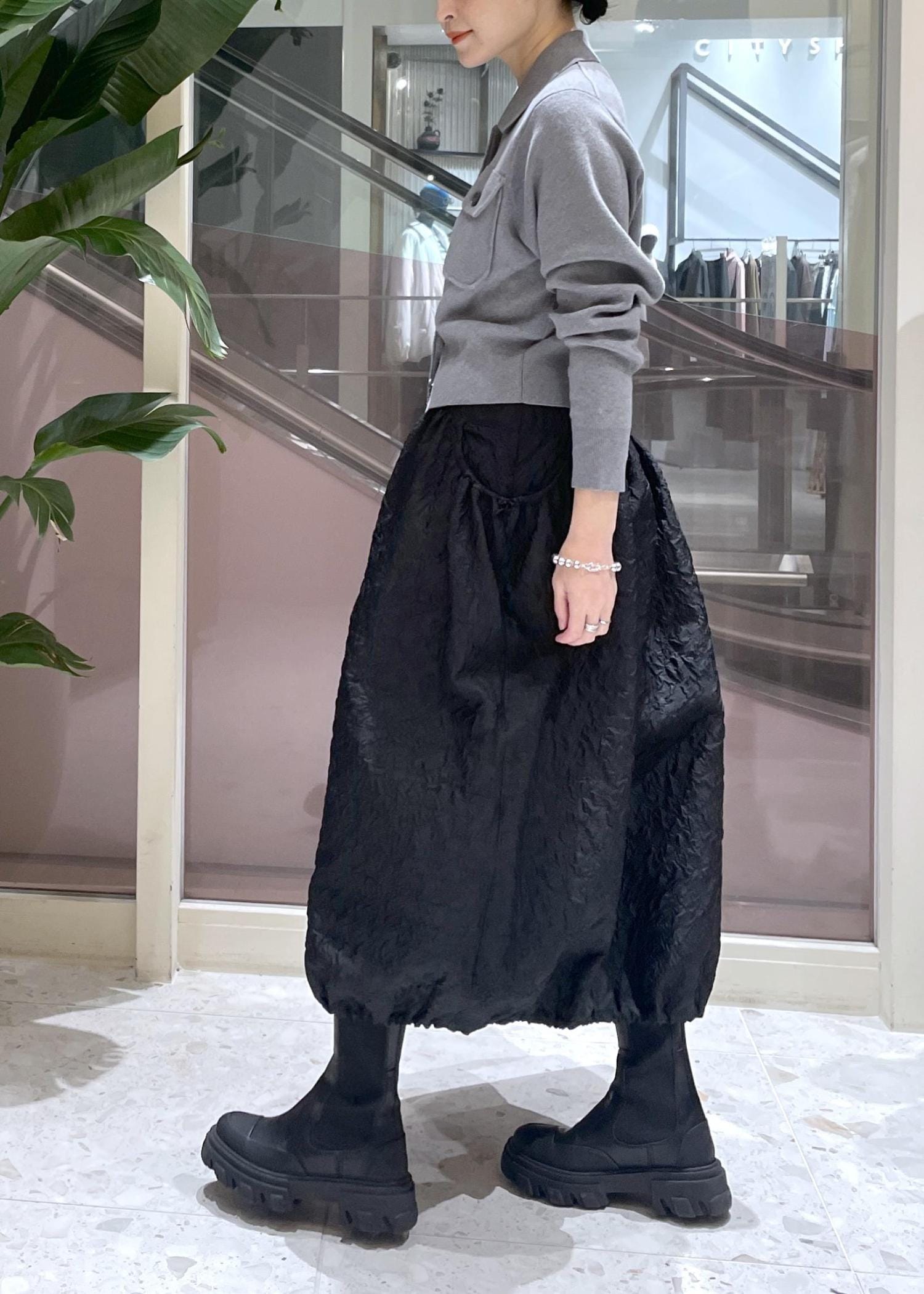 ADAM ET ROPÉ FEMMEジャガードギャザースカートブラック / 36¥9,680レビュー36サイズで薄手のトップスがインできる程よいサイズ感。