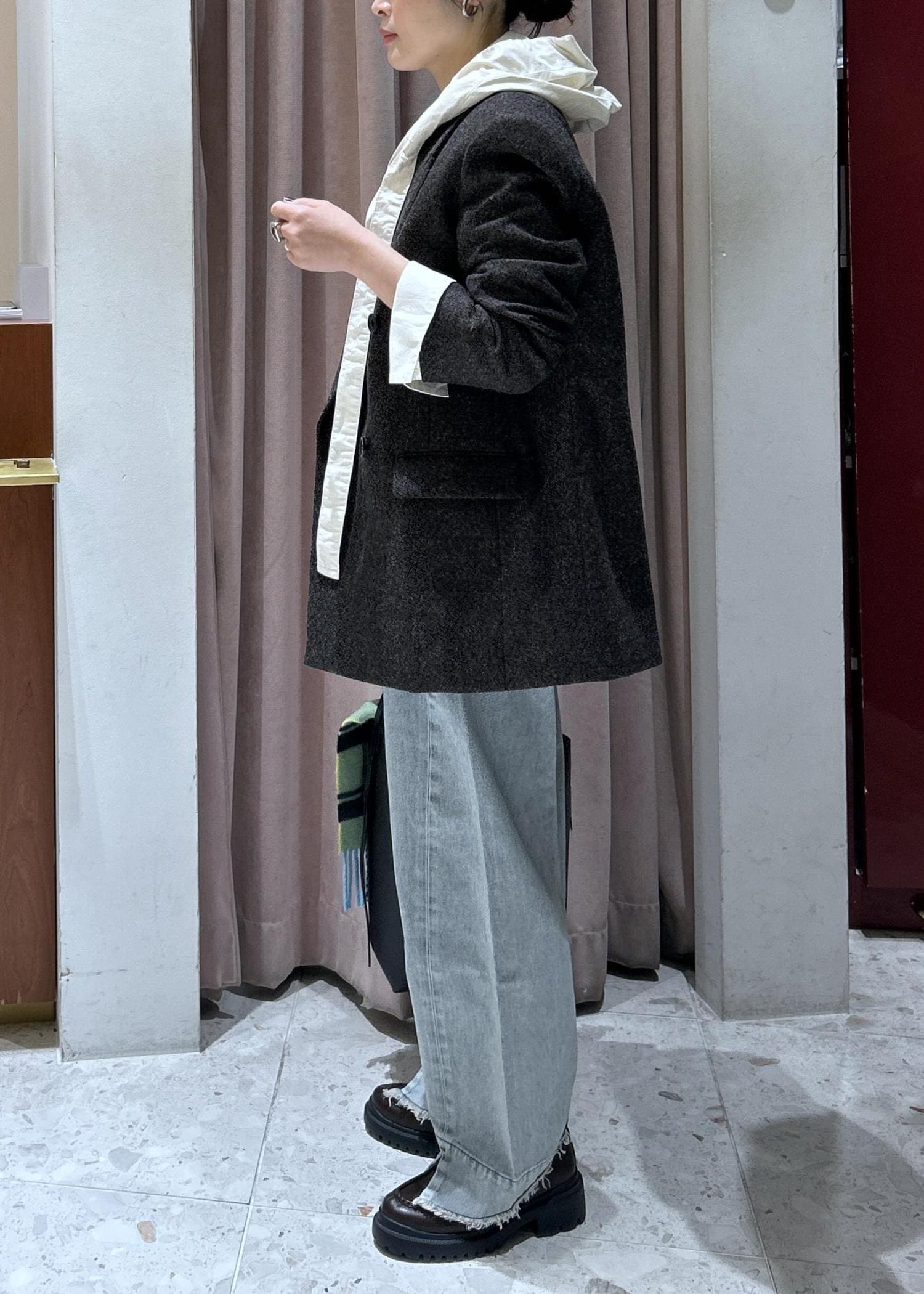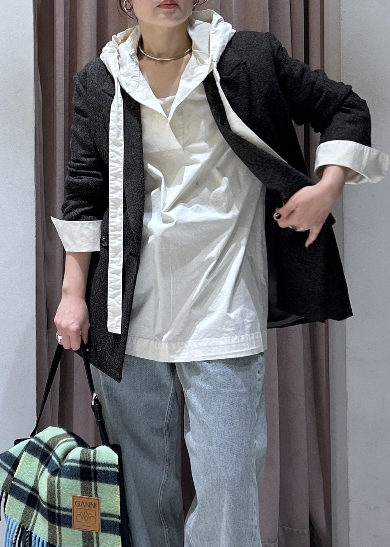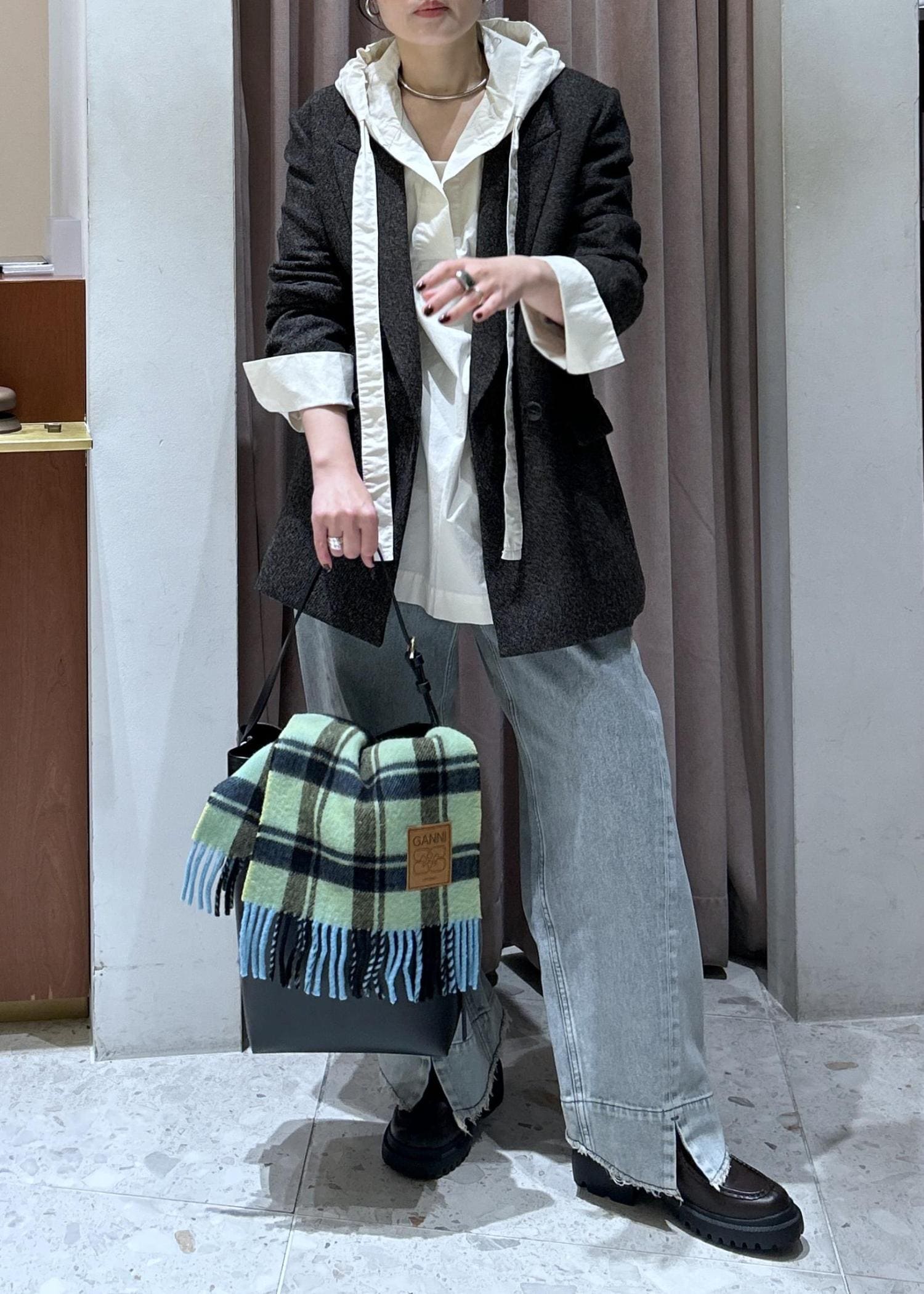 ジャケットもお仕事っぽくなり過ぎず、エレガントにオシャレに決まります。