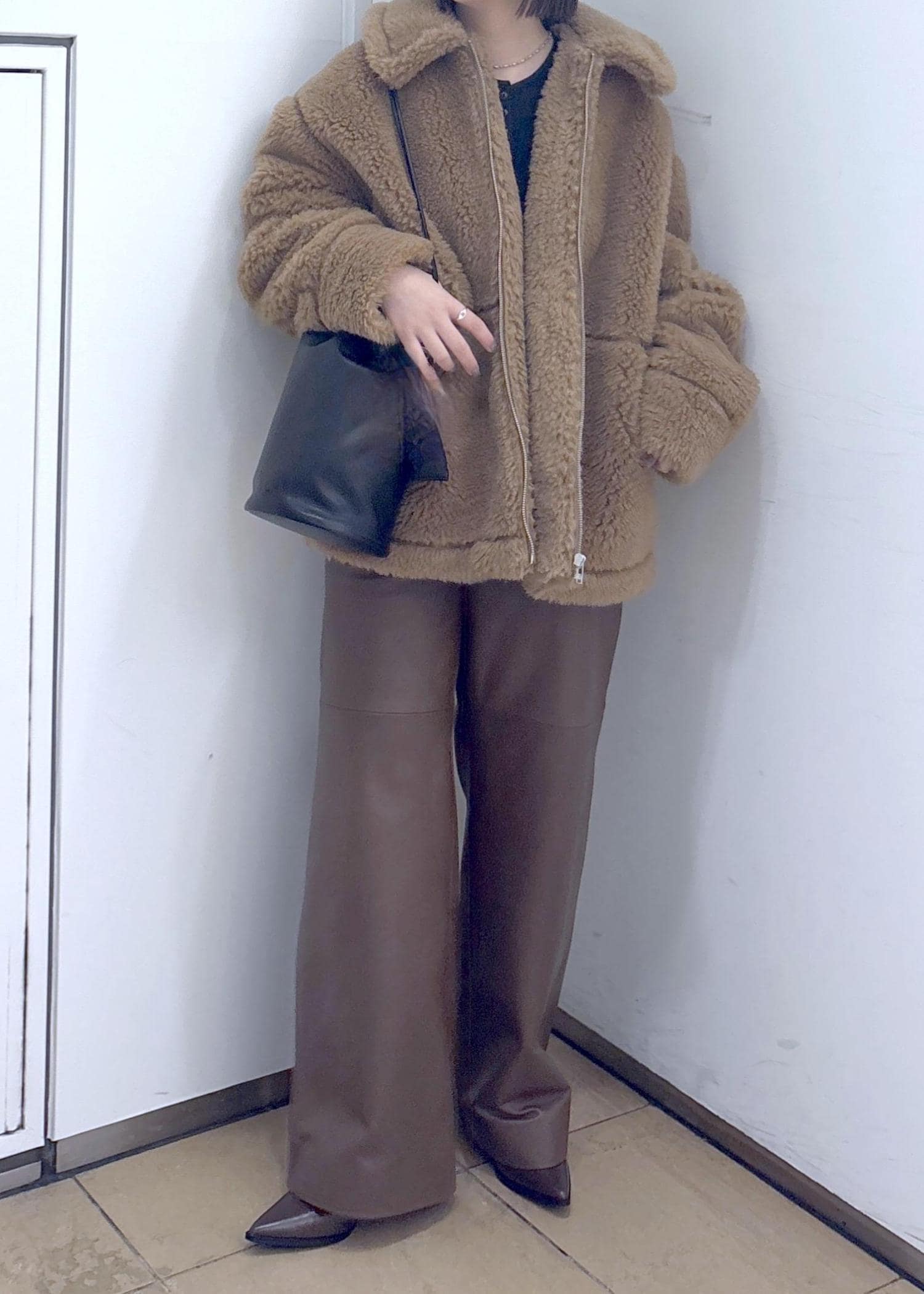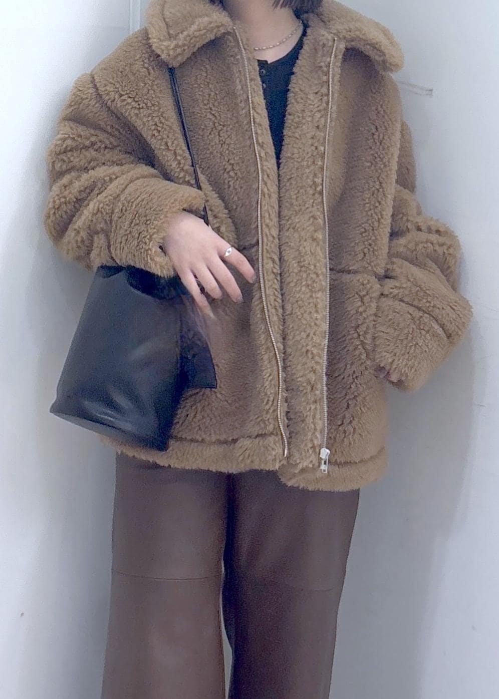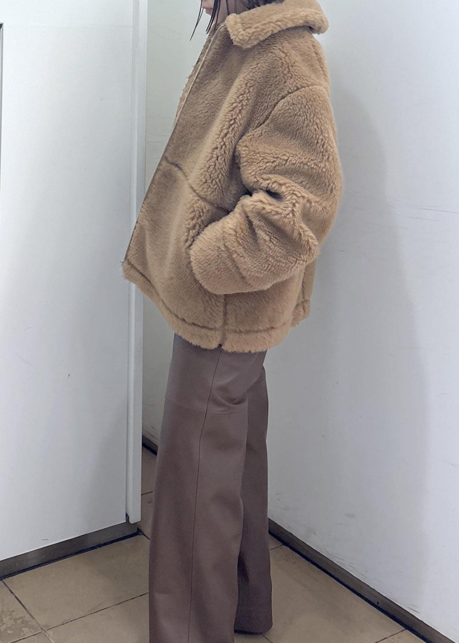 ADAM ET ROPÉ FEMMEスウィッチングボアブルゾンキャメル系 / F¥29,700レビューオーバーサイズなのでニットや厚手のスウェットの上でも着用いただけます!軽量で羽織りやすいです。