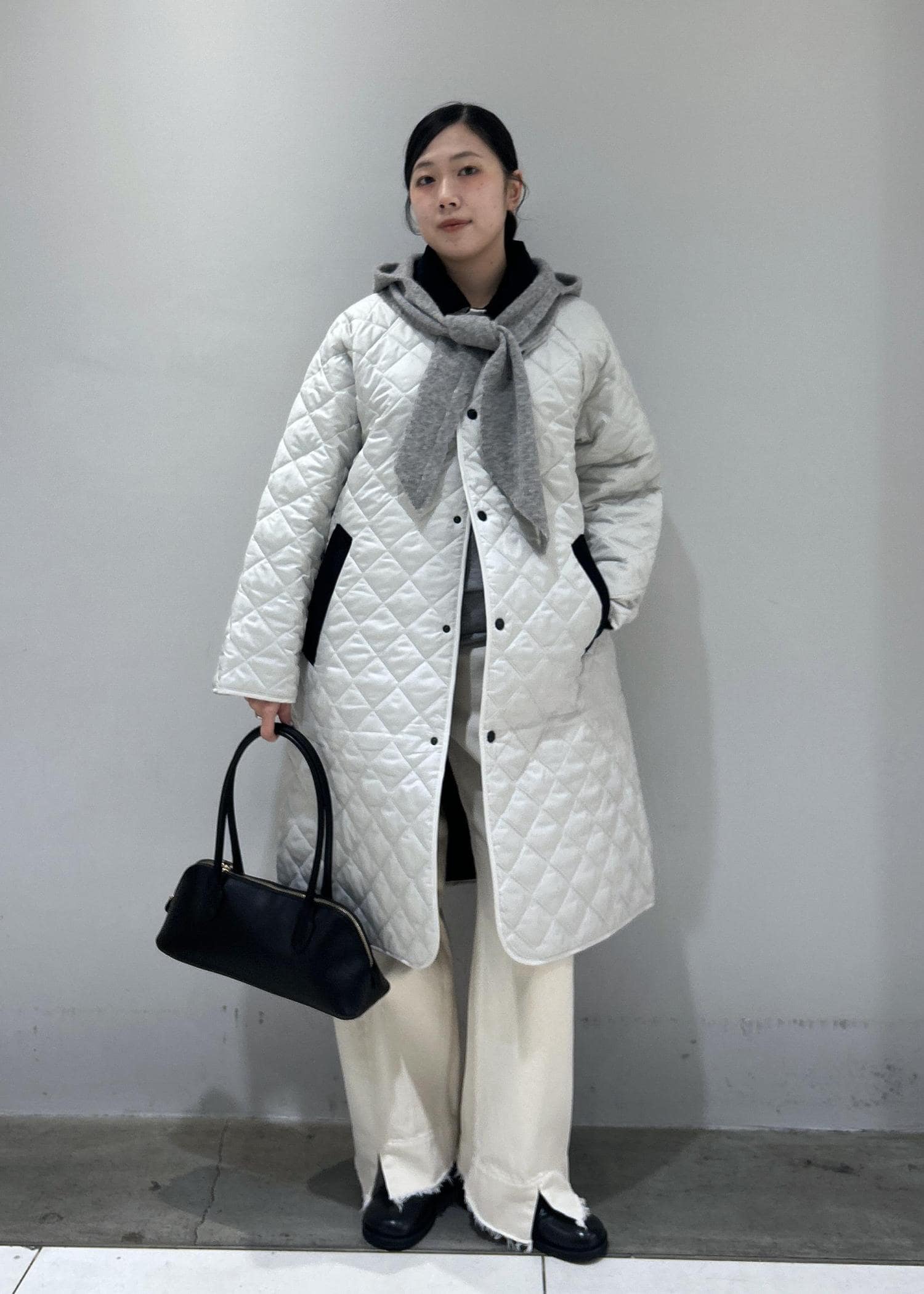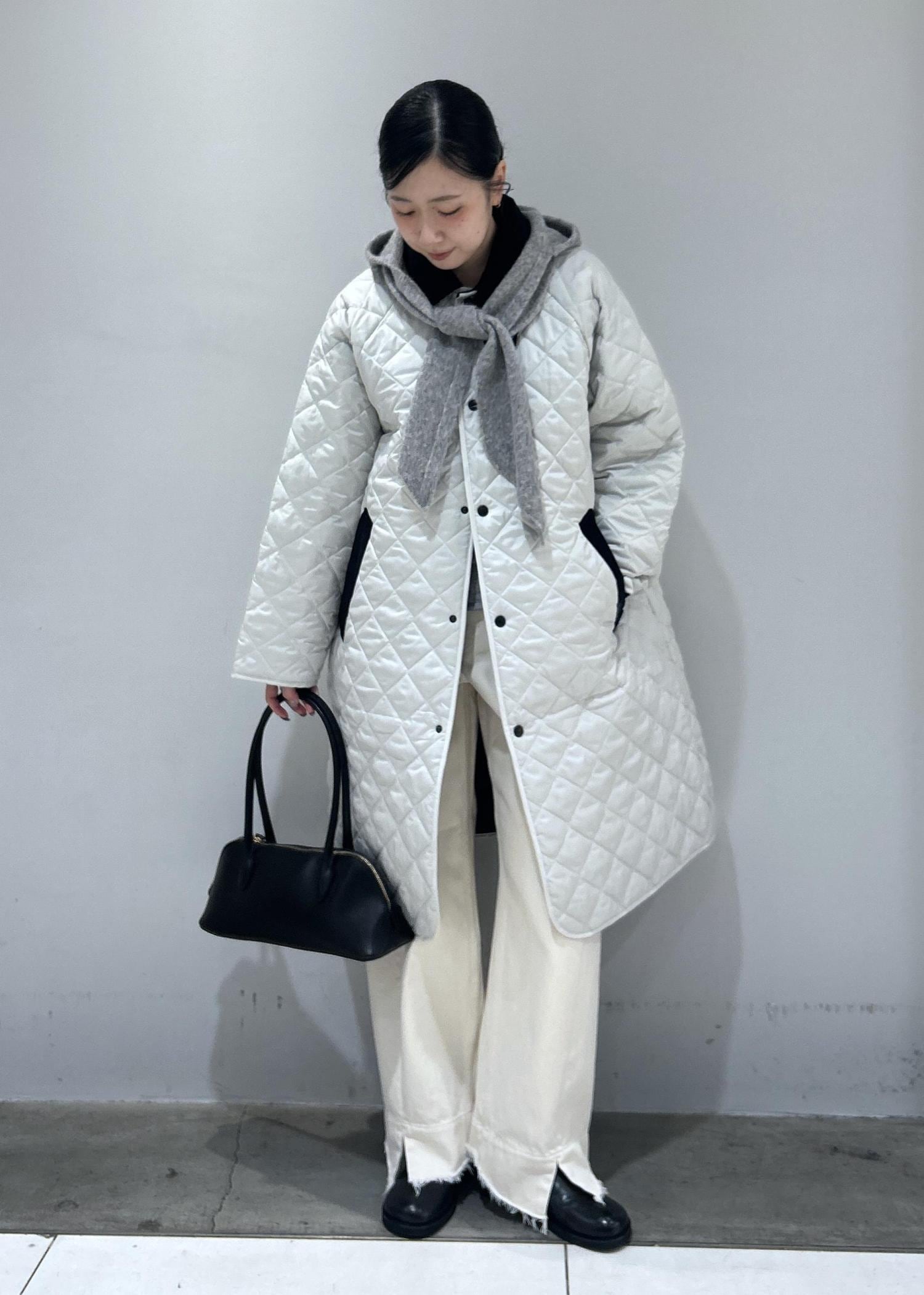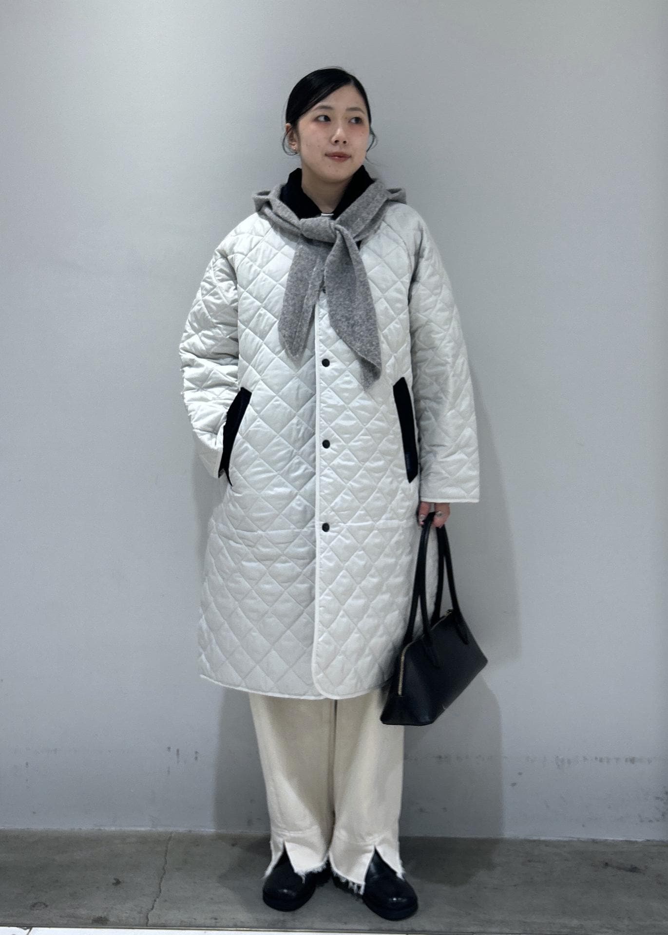 ホワイトのアウターとキナリのパンツで全体的に柔らかい印象にしました◎