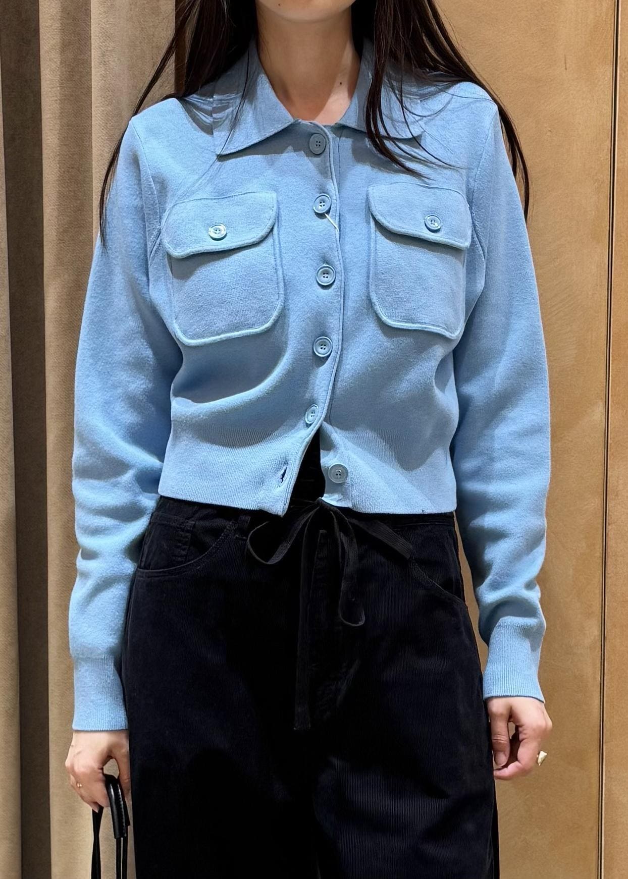 ADAM ET ROPÉ FEMMEコットンカシミヤポケットカーディガンサックス / F¥24,200レビュー腰骨が隠れるぐらいの丈なのでワイドパンツもの相性抜群です。カシミヤ混素材なのでとても着心地が良かったです。