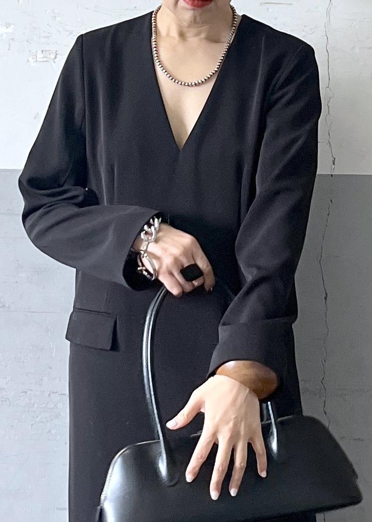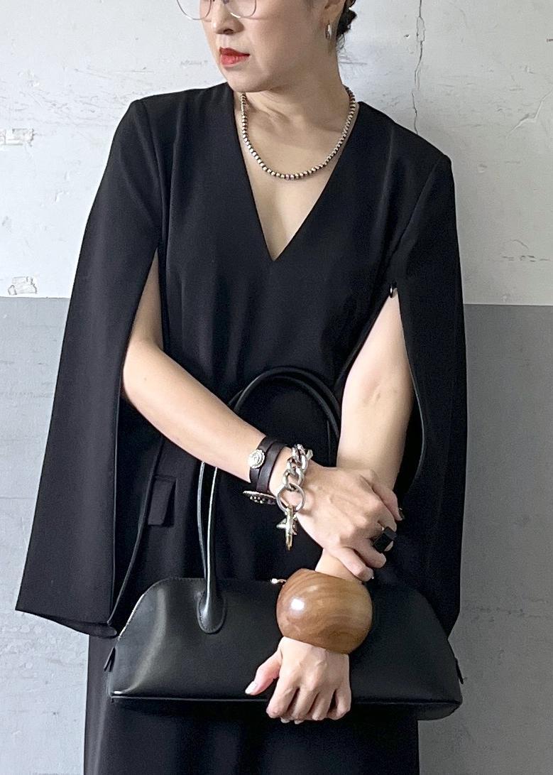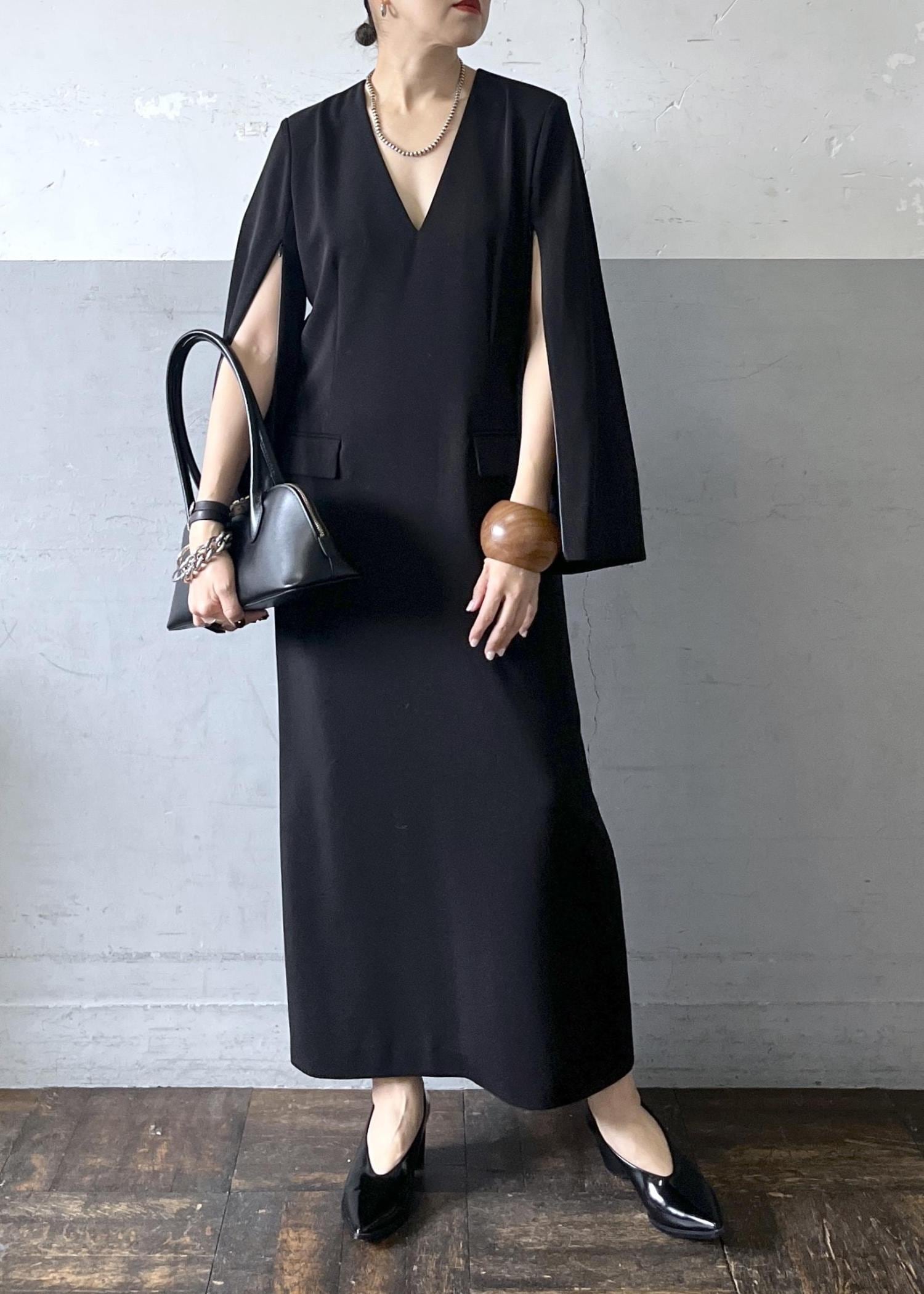 ADAM ET ROPÉ FEMME【サステナブル】スリットスリーブワンピースブラック / 38¥33,000レビューシンプルなVネックのロングワンピースです。袖の内側にジップが付いていて二の腕まで開ける事が出来ます^ ^ 1枚で着ても十分可愛いですが、インナーにシースルーやレース、色物などの合わせもオススメ。カジュアルに普段使いにしてもオシャレです。