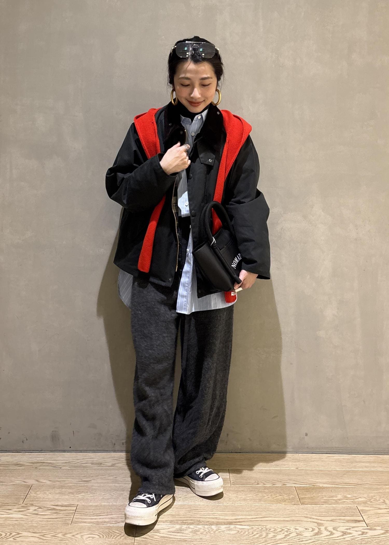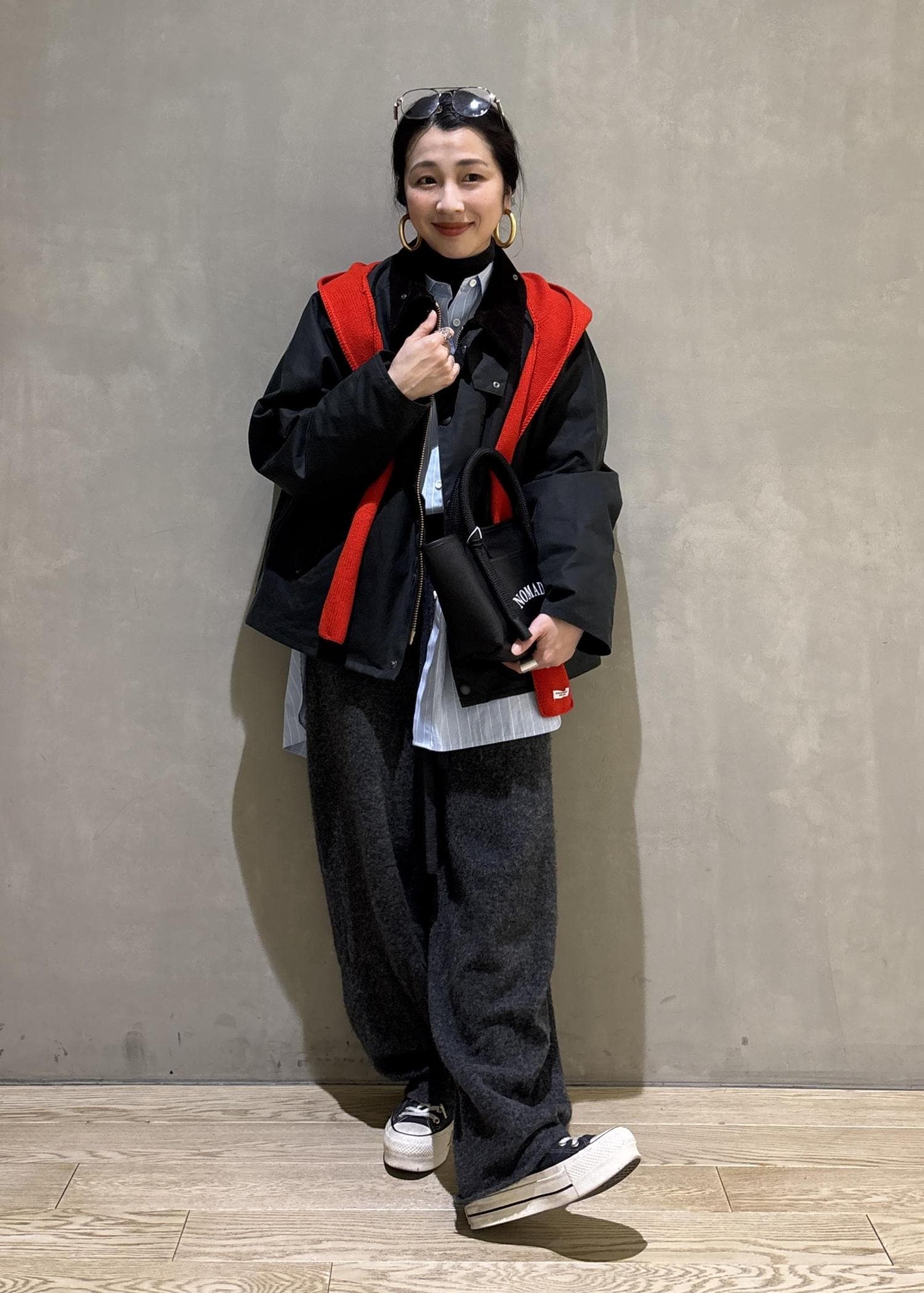全体的にダークカラーで渋いカラーが多いので、あえて赤をアクセントに取り入れて一気に華やかさな印象に。