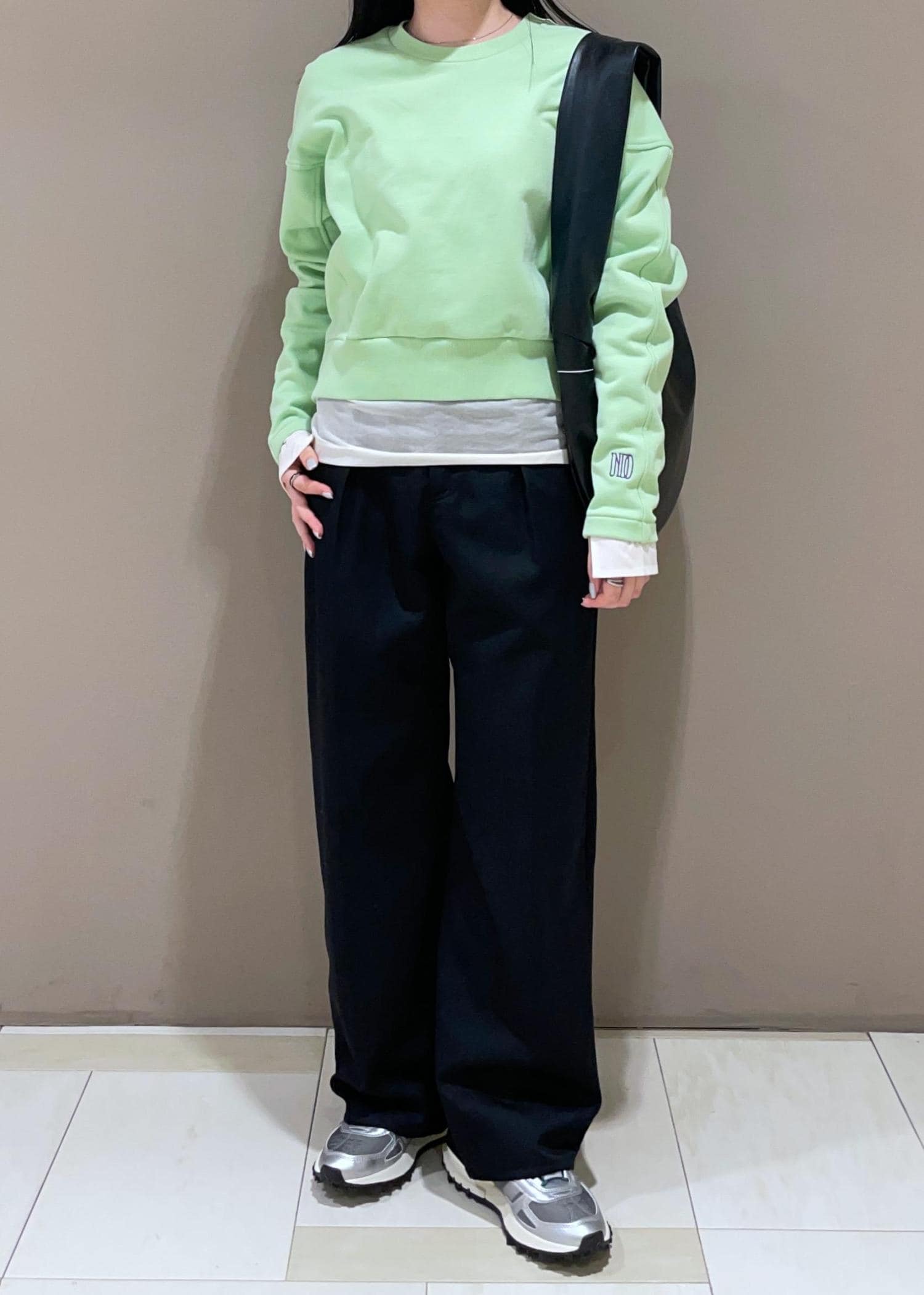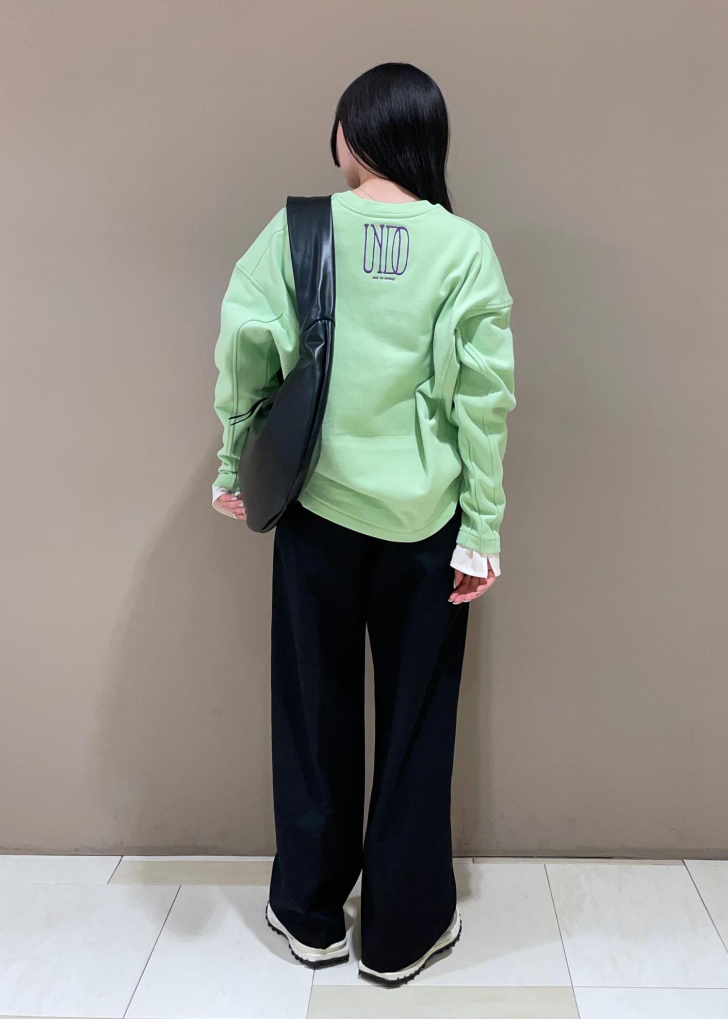 ライトグリーンが映えるロゴフォルムスウェット