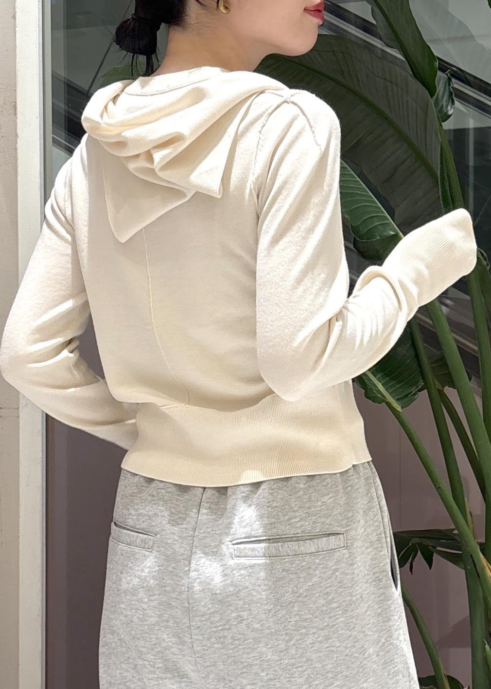 生地は薄めのニットで、肌に触れてもチクチクしにくくなってます。カシミヤ混なので見た目以上にあたたかいです◎ -