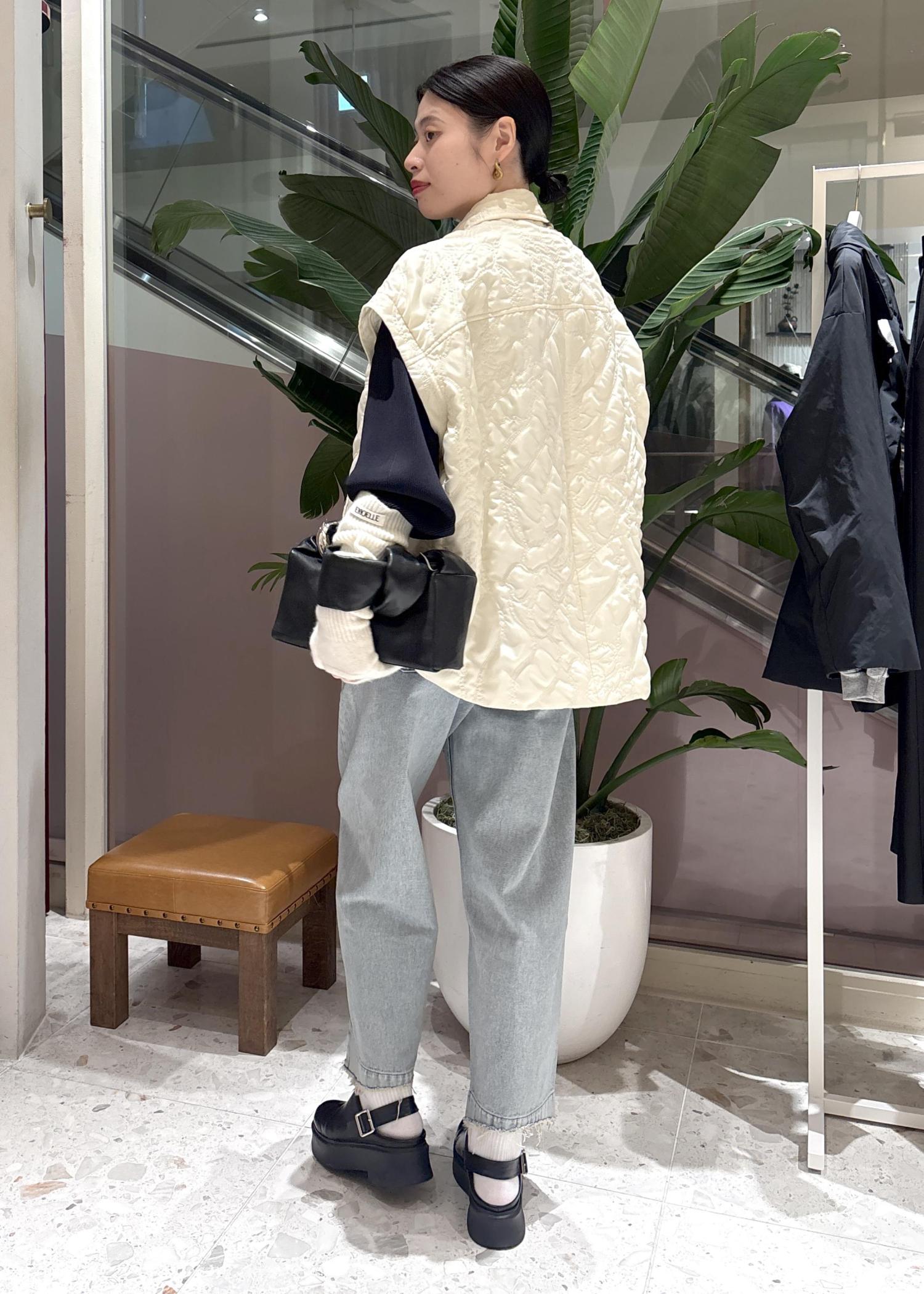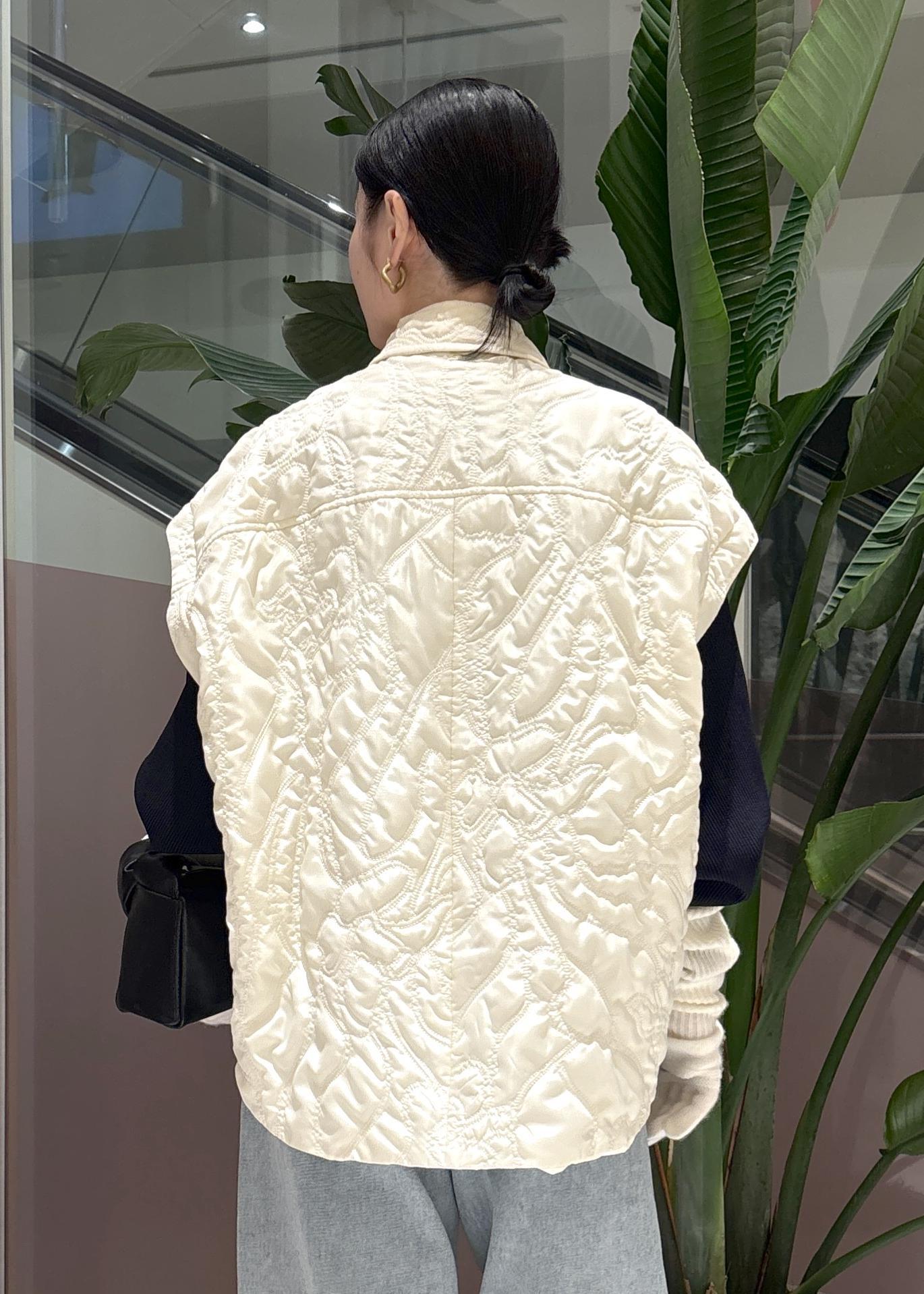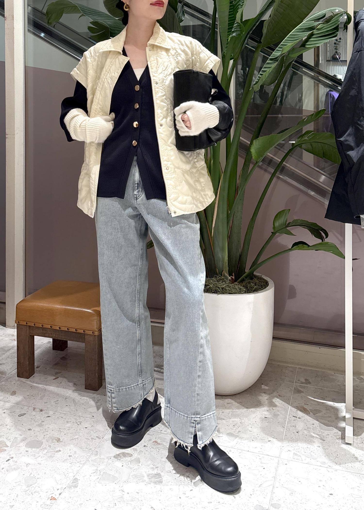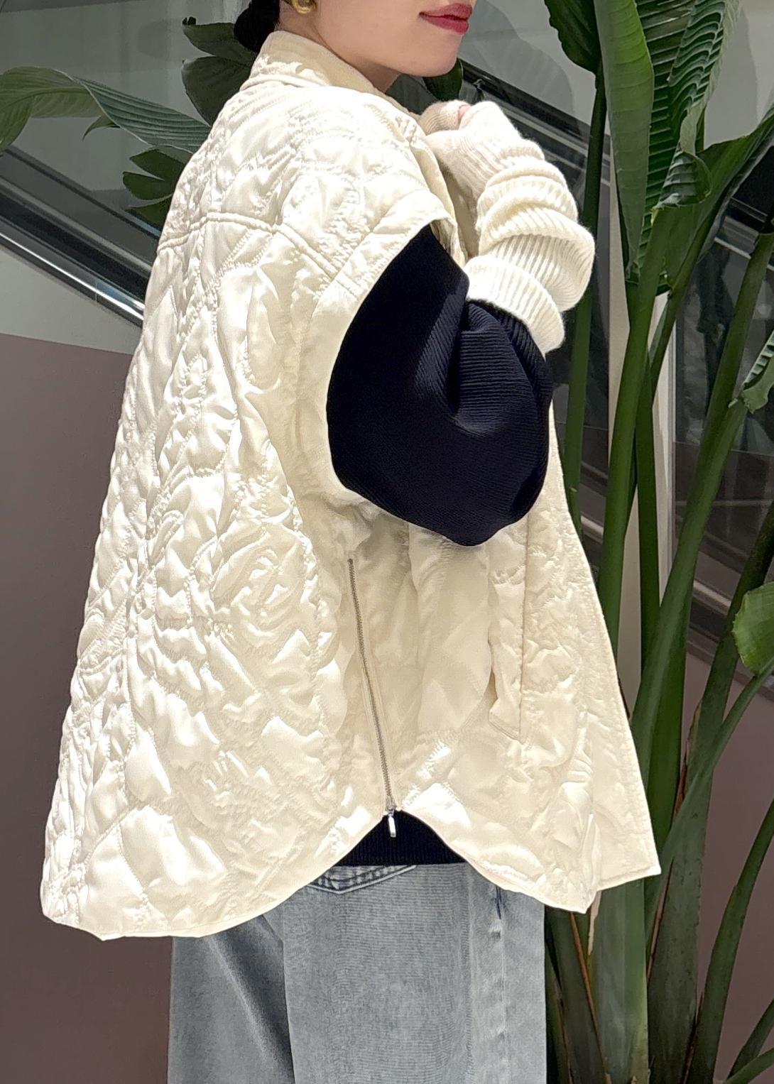 上に羽織ったキルティングベストは、袖をつけるとキルティングジャケットとして使えます◎