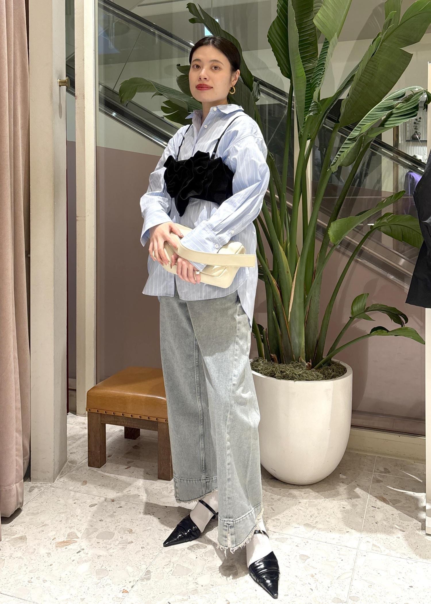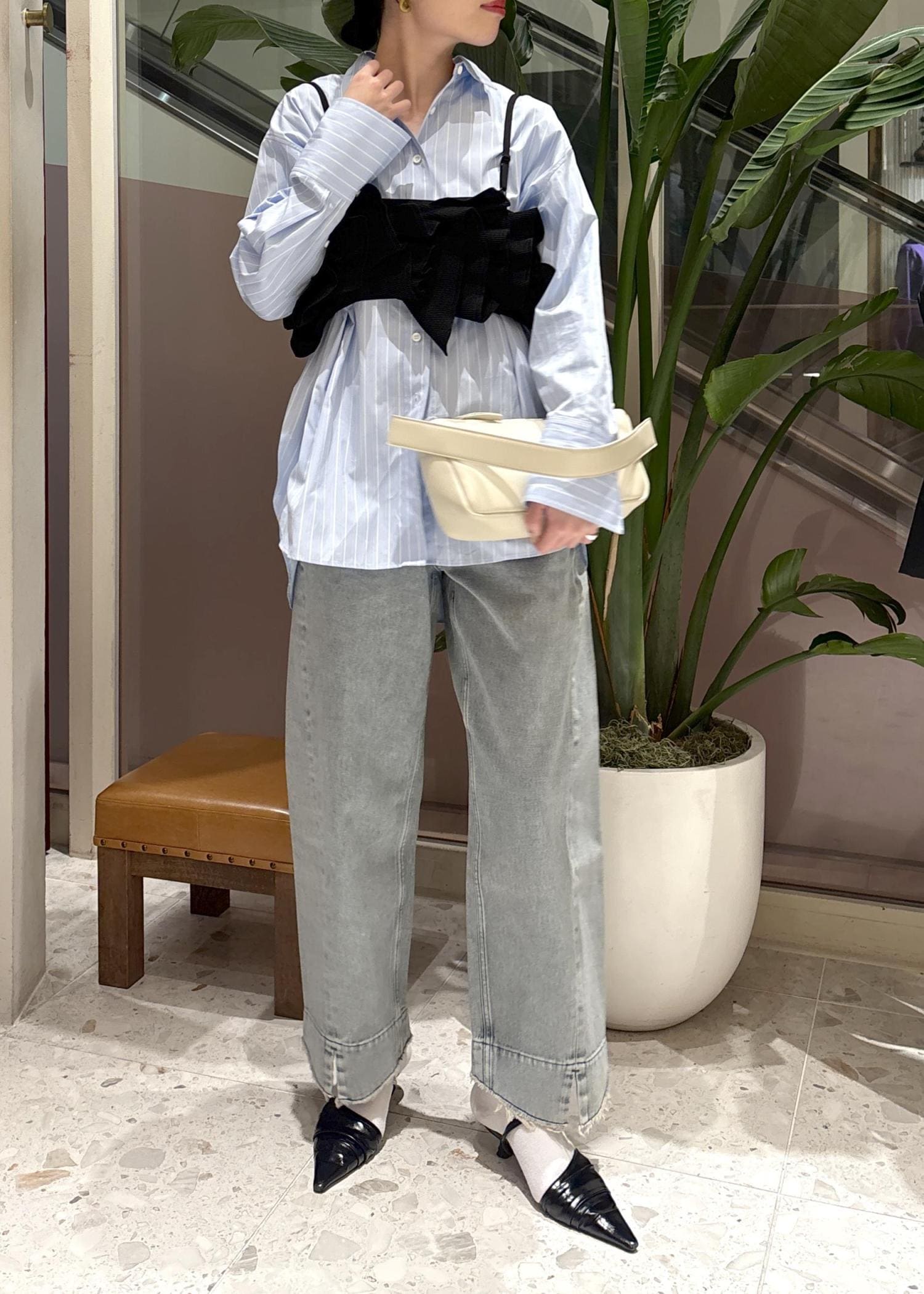 今回はニットフリルビスチェをモードカジュアルなスタイリングを意識して着てみました。