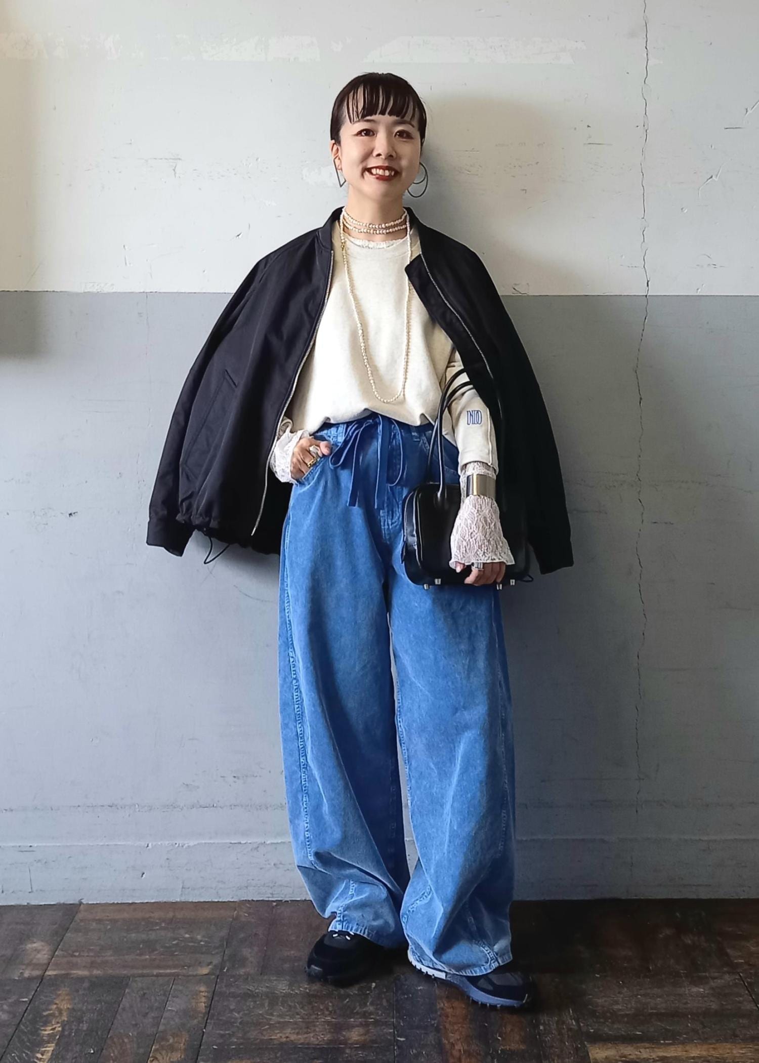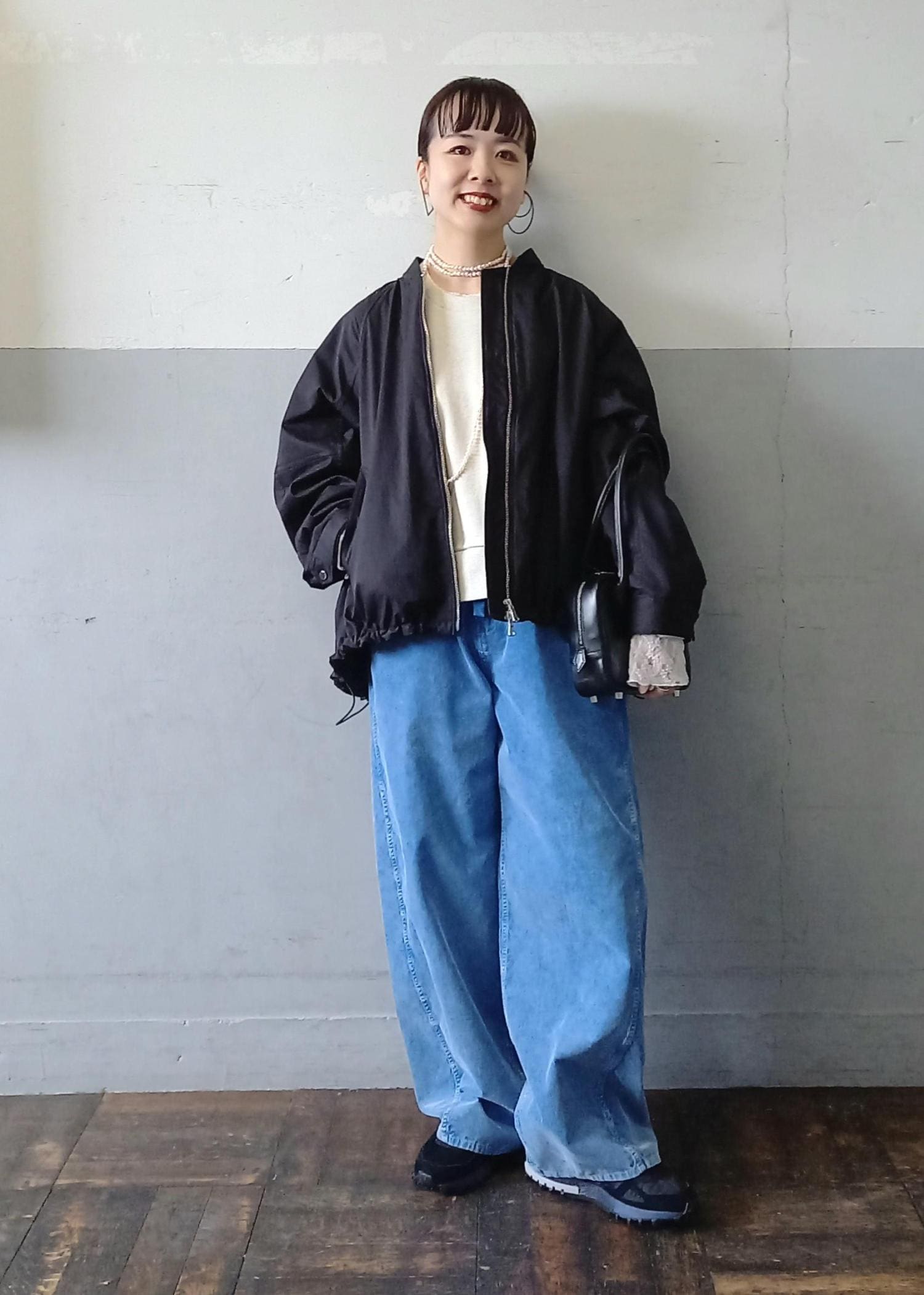 今回はモノトーンの中にブルーを差し色にしてコーディネートしてみました!