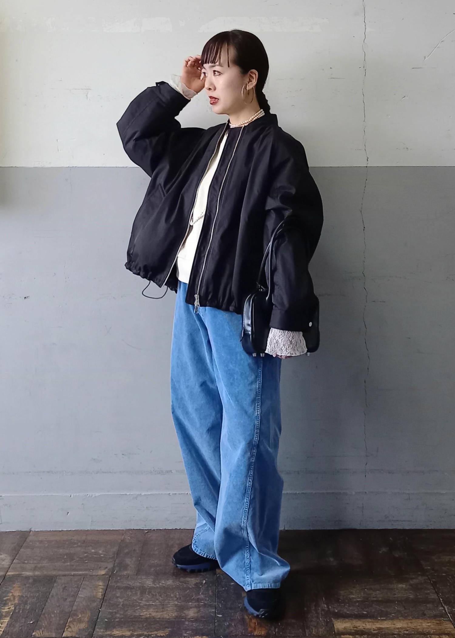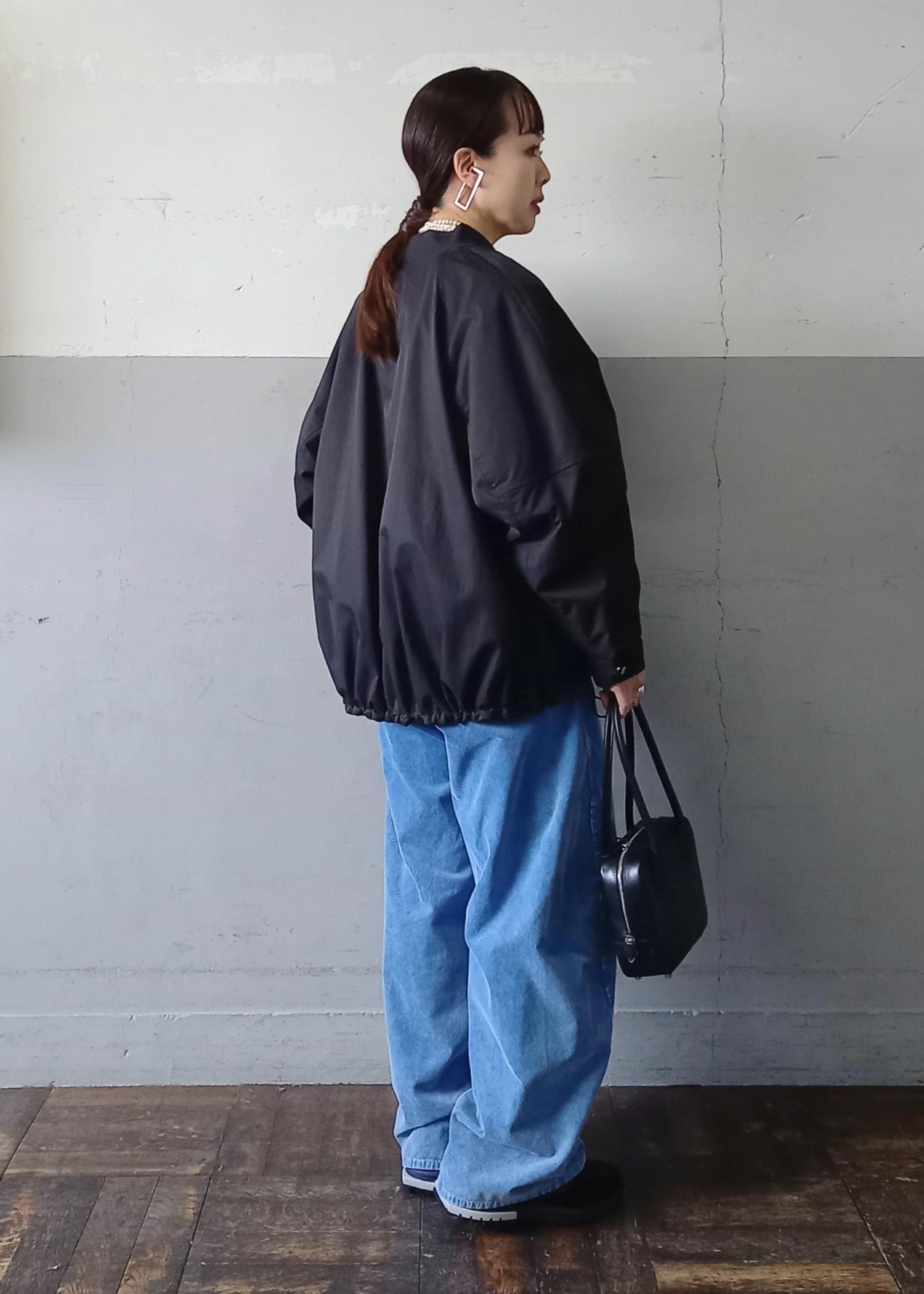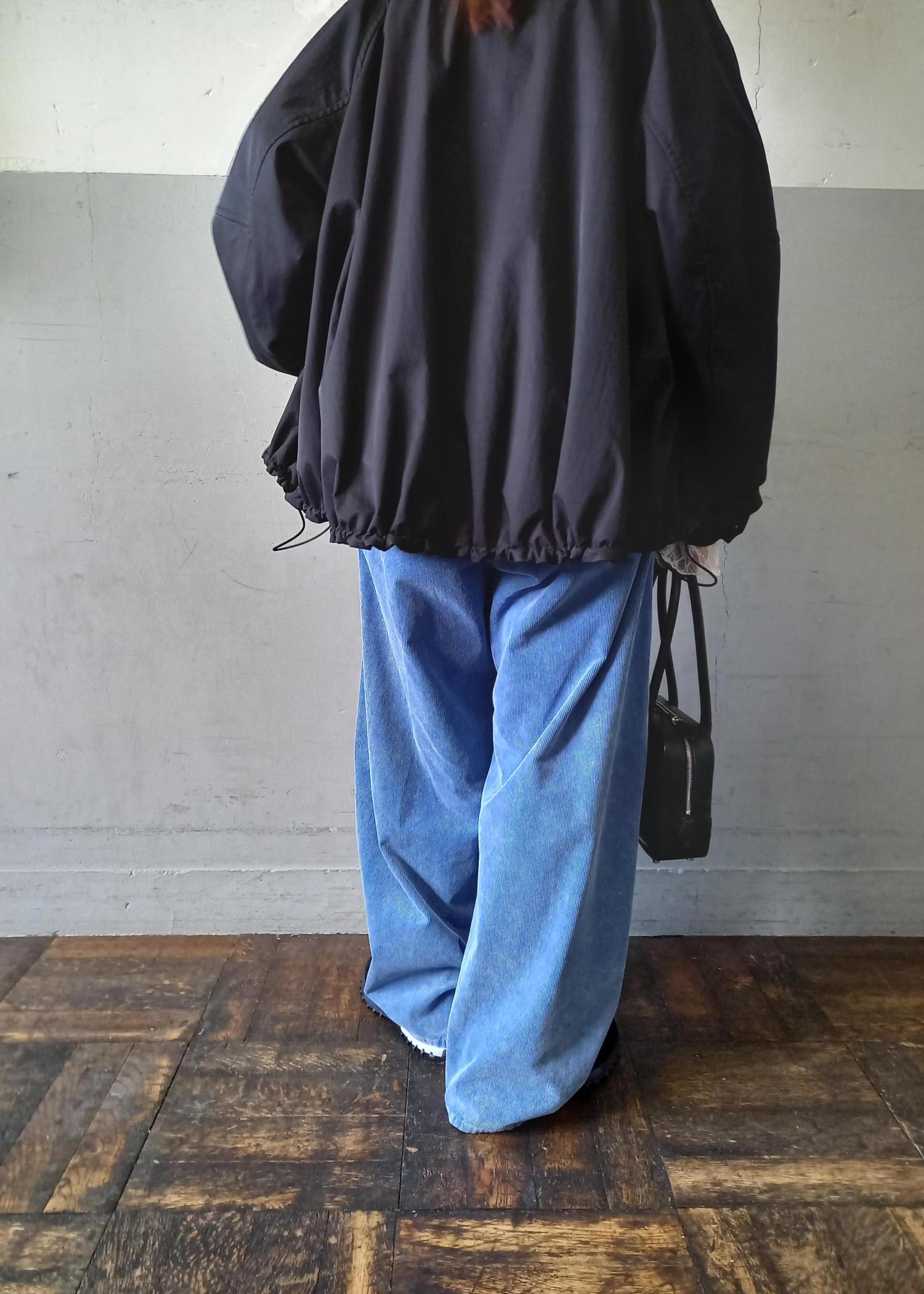 ブルゾンと言っても袖口や裾はリブ仕様ではないのでカジュアルすぎずきれい目にも合わせていただきやすいです☺️テントラインでも、裾のドローコードを絞って丸みのあるフォルムでも着れるのでシルエットの変化を楽しんでいただけますよ✨ -