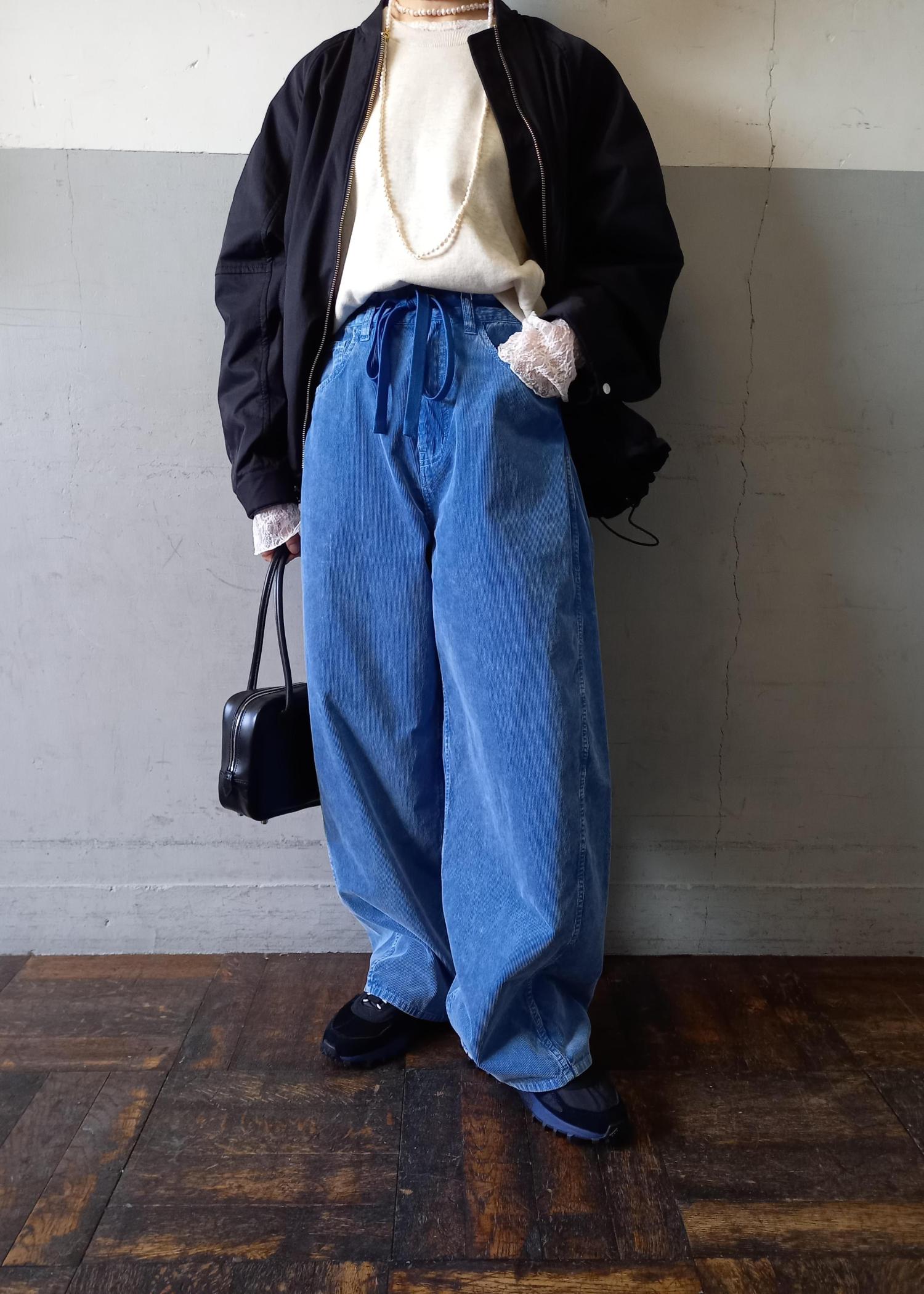 ADAM ET ROPÉ FEMME【新色追加】ガーメントダイコーデュロイパンツブルー系 / 36¥19,800レビュー158㎝骨格ウェーブの普通体型で36サイズを着用しています。ウエストは大きいのですが紐でキュッと結ぶと問題なしでした◎