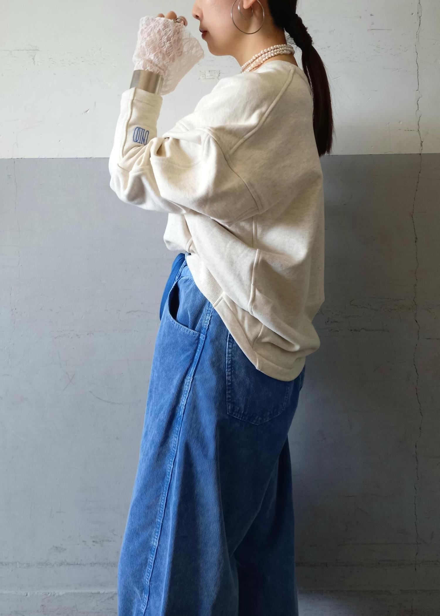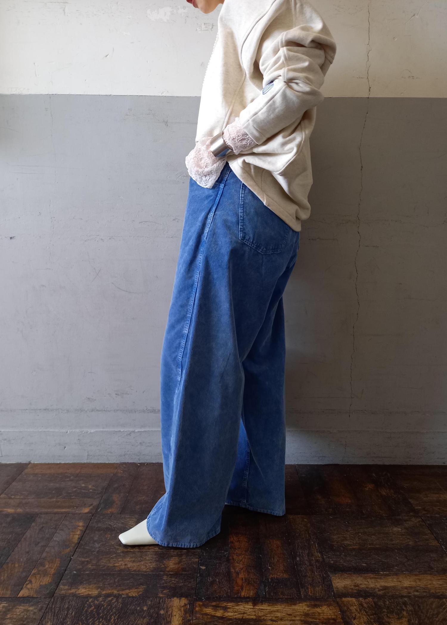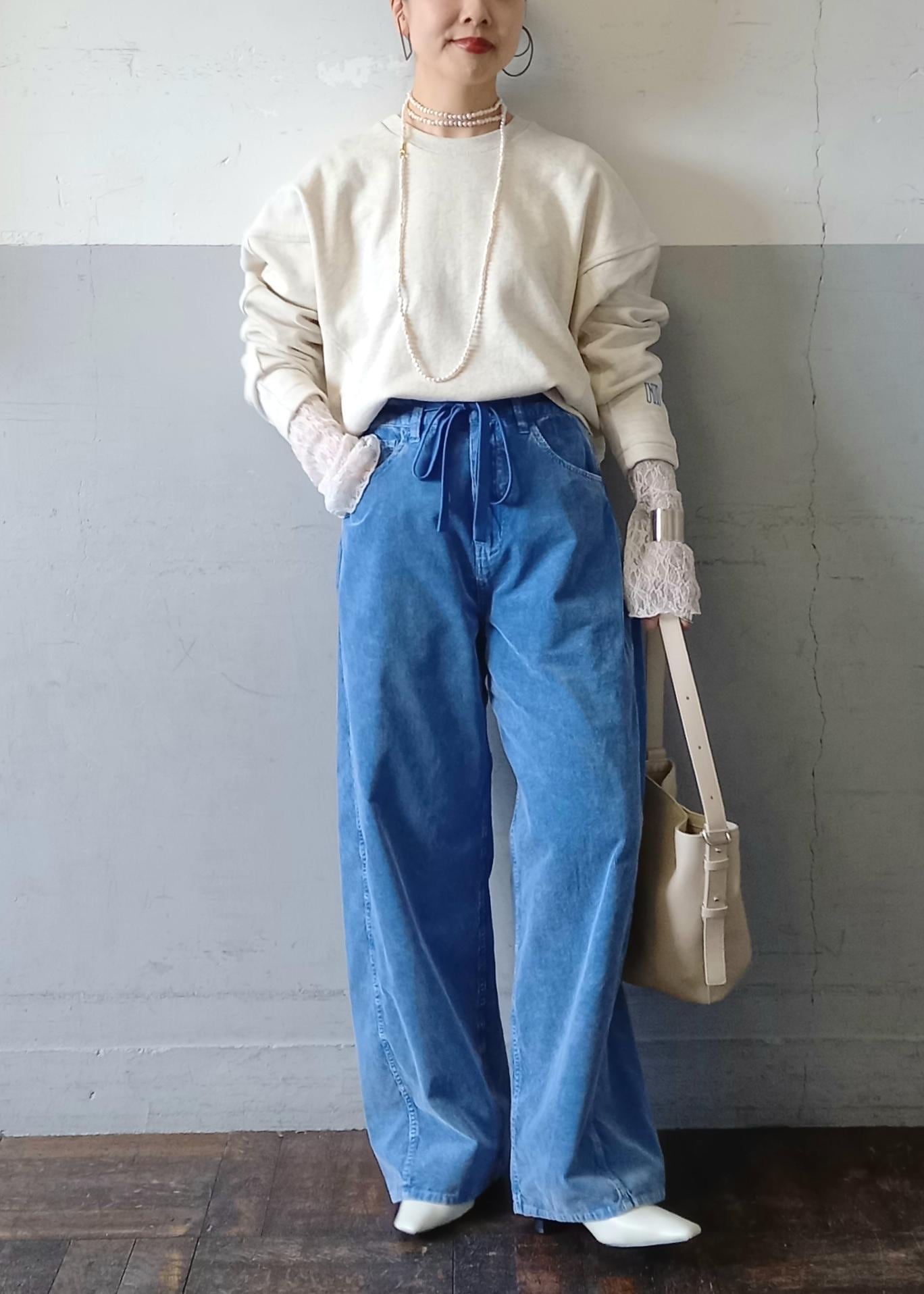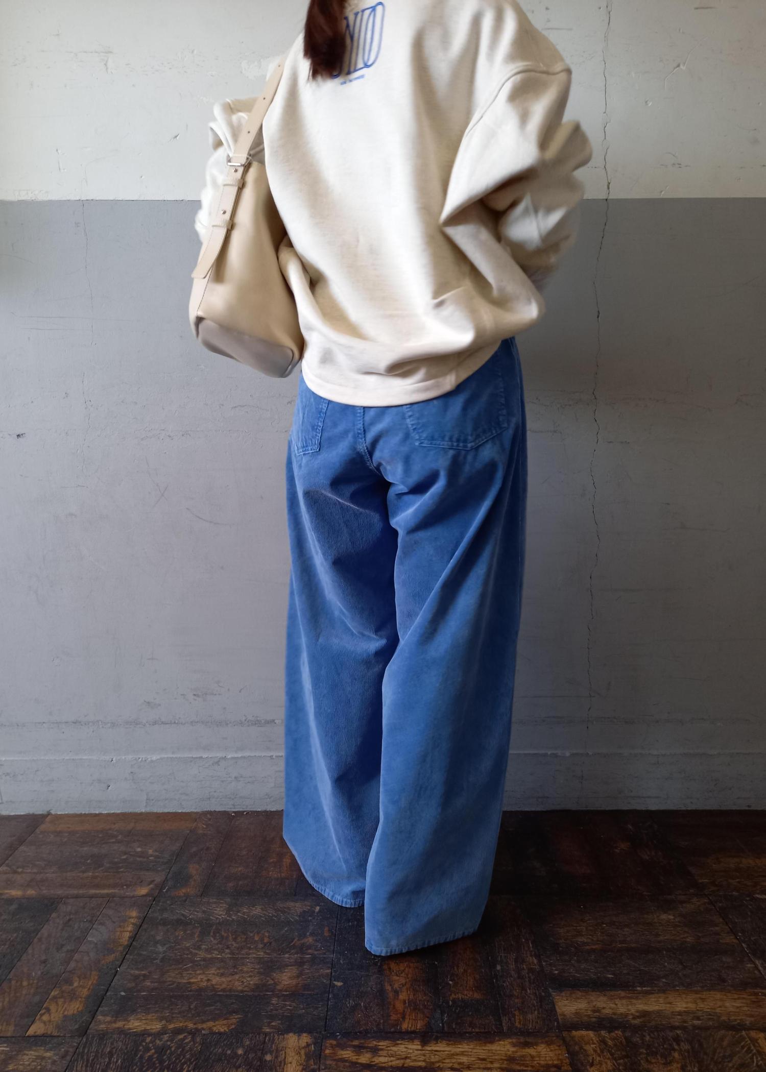 ボトムはずっと人気のあるコーデュロイパンツのブルーと合わせました!