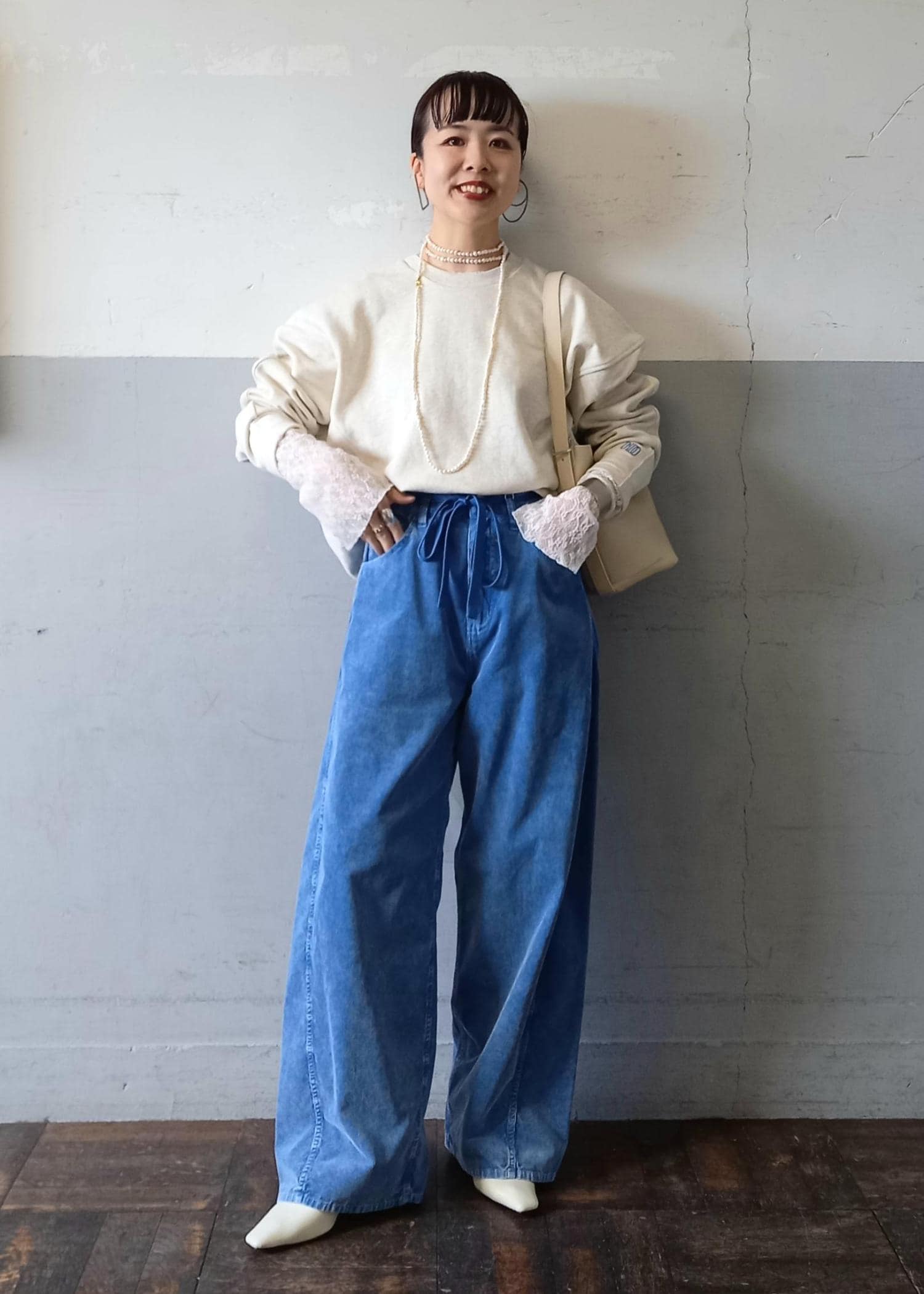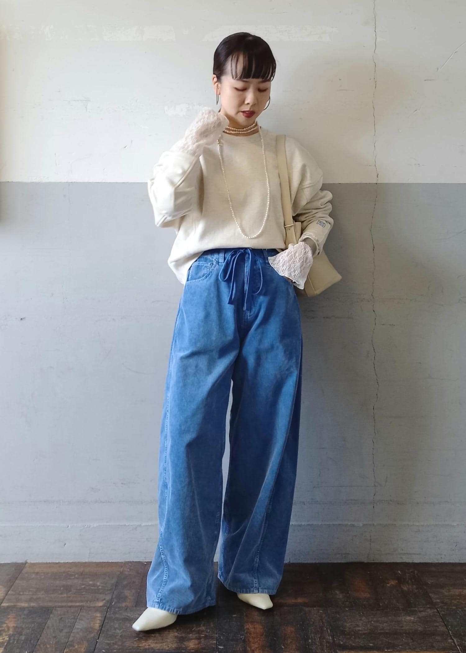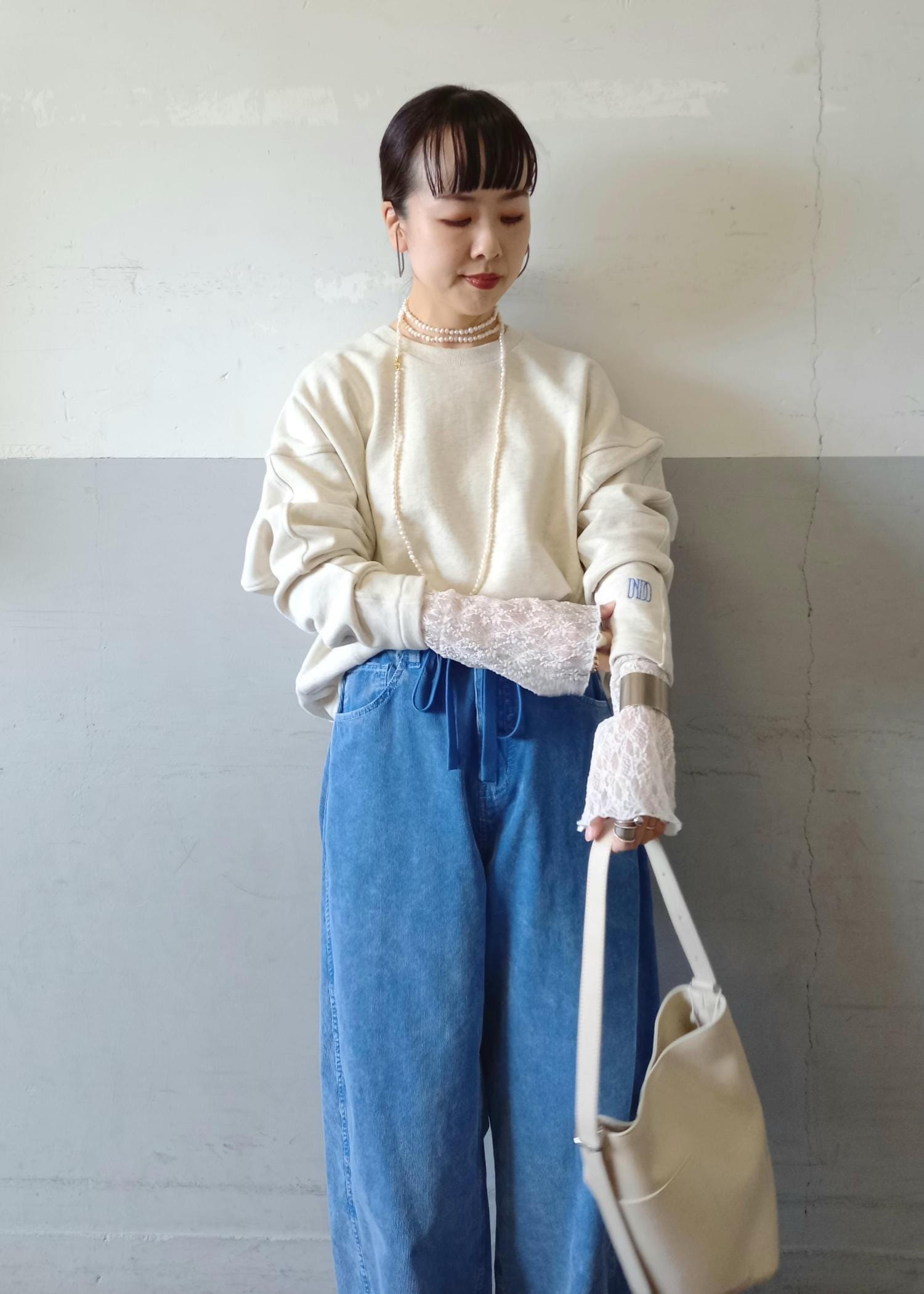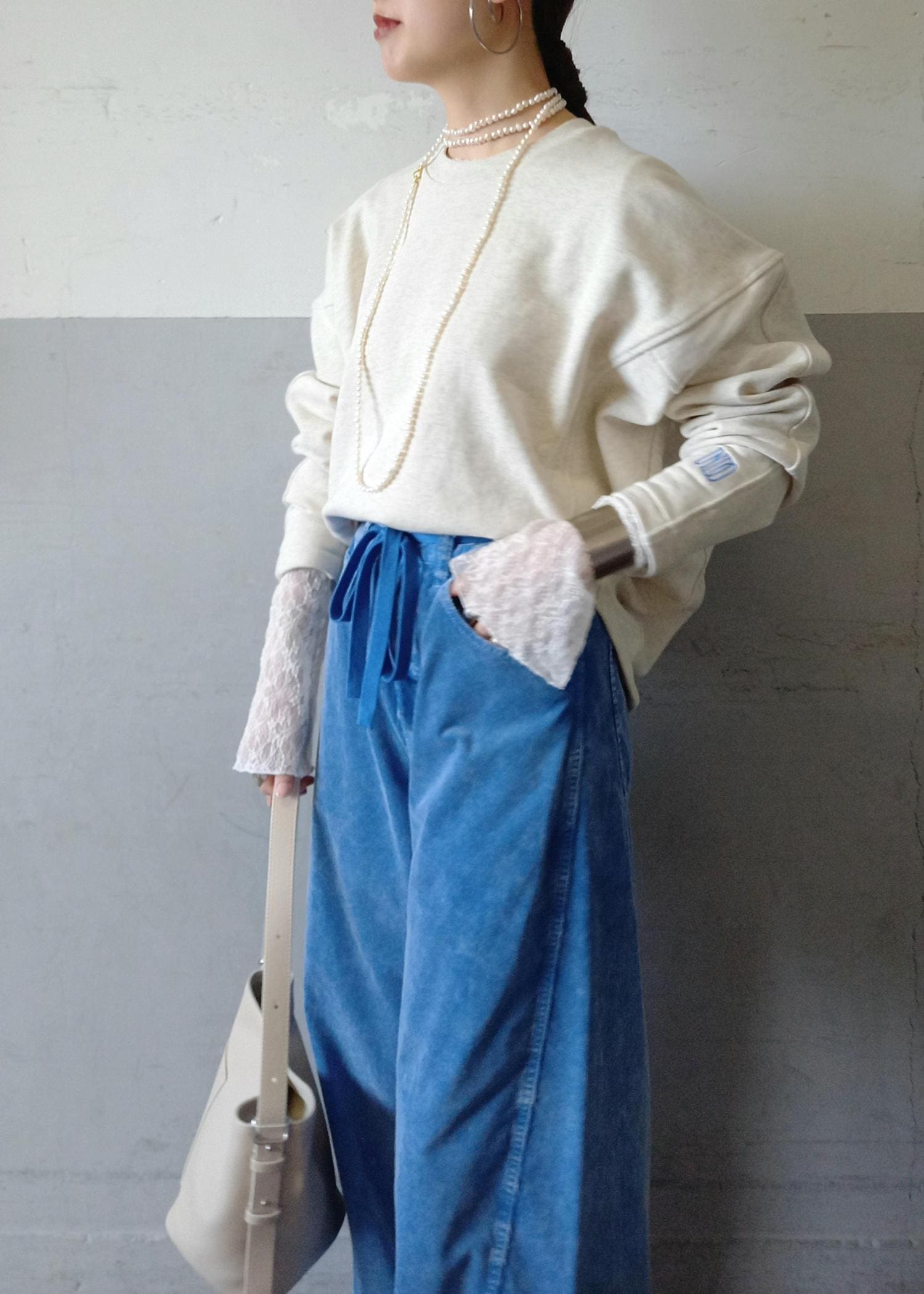 ボトムはずっと人気のあるコーデュロイパンツのブルーと合わせました!