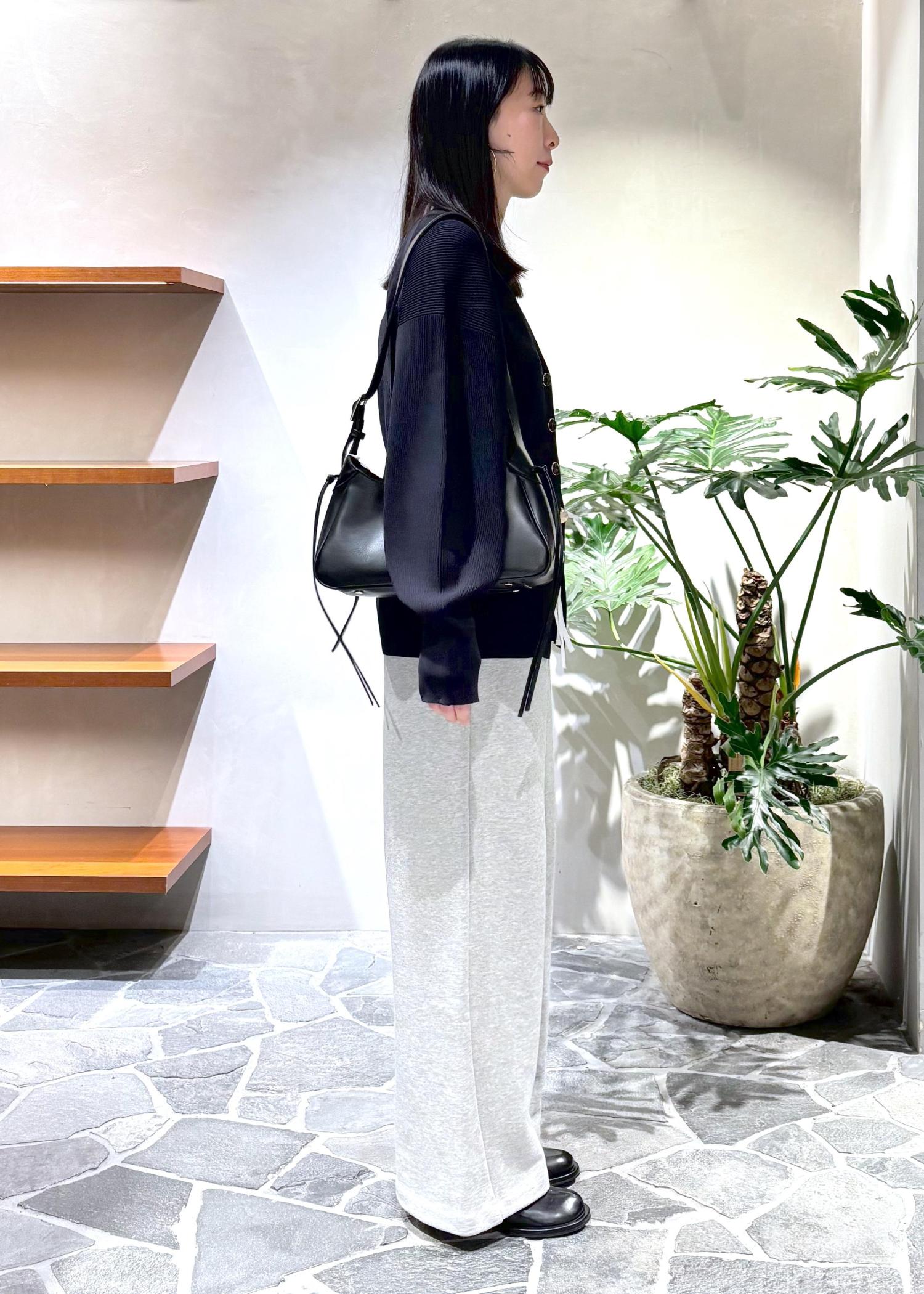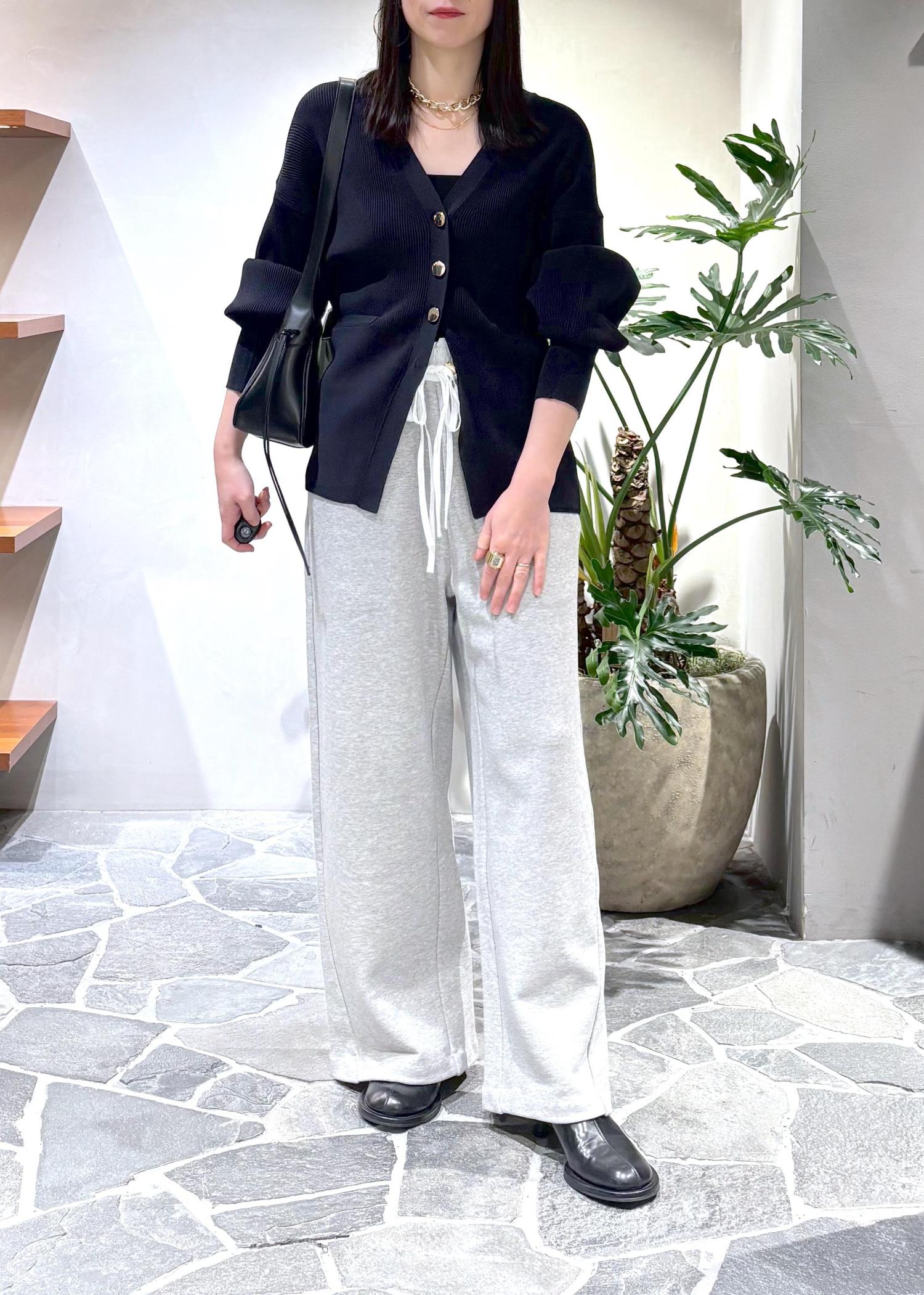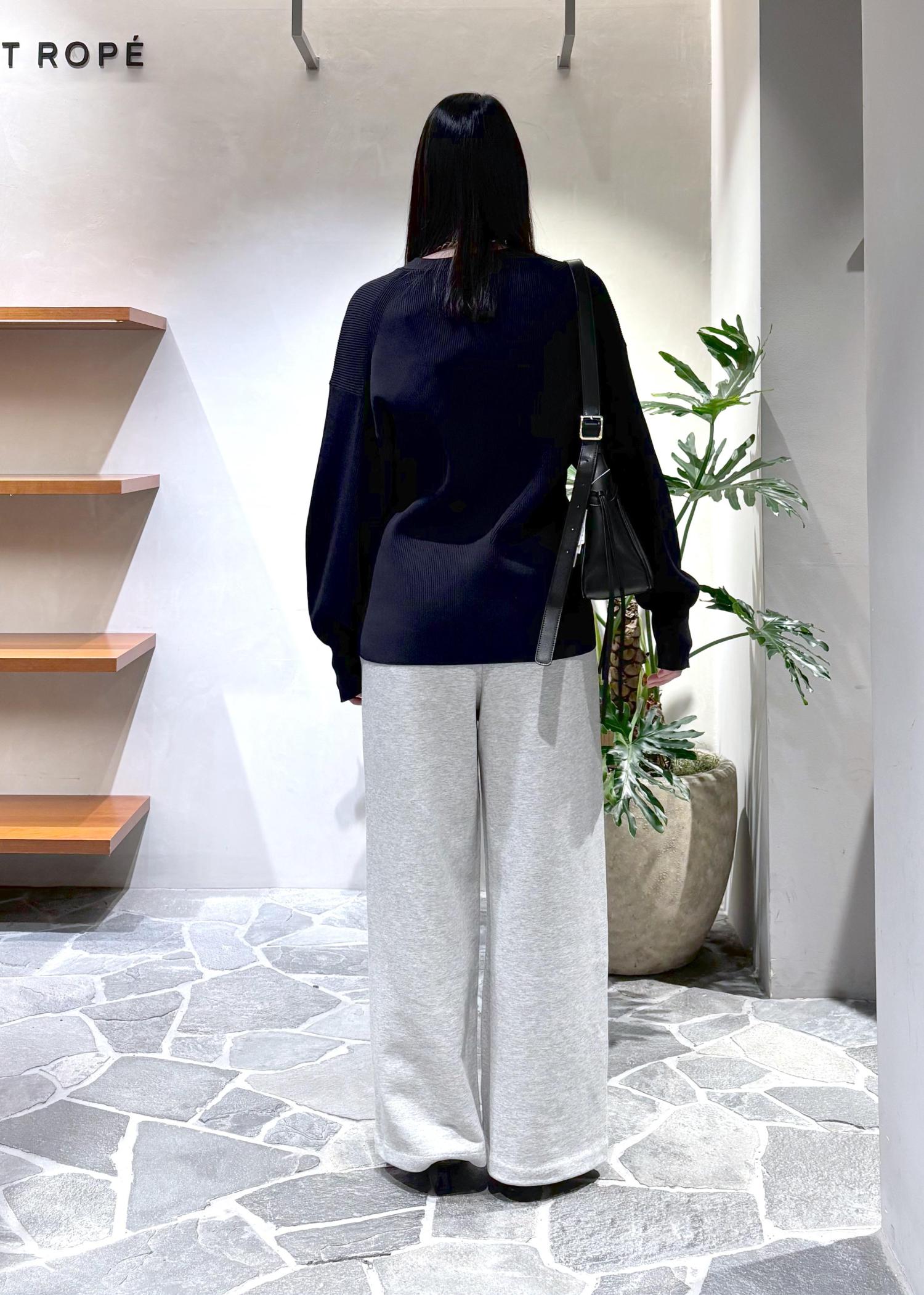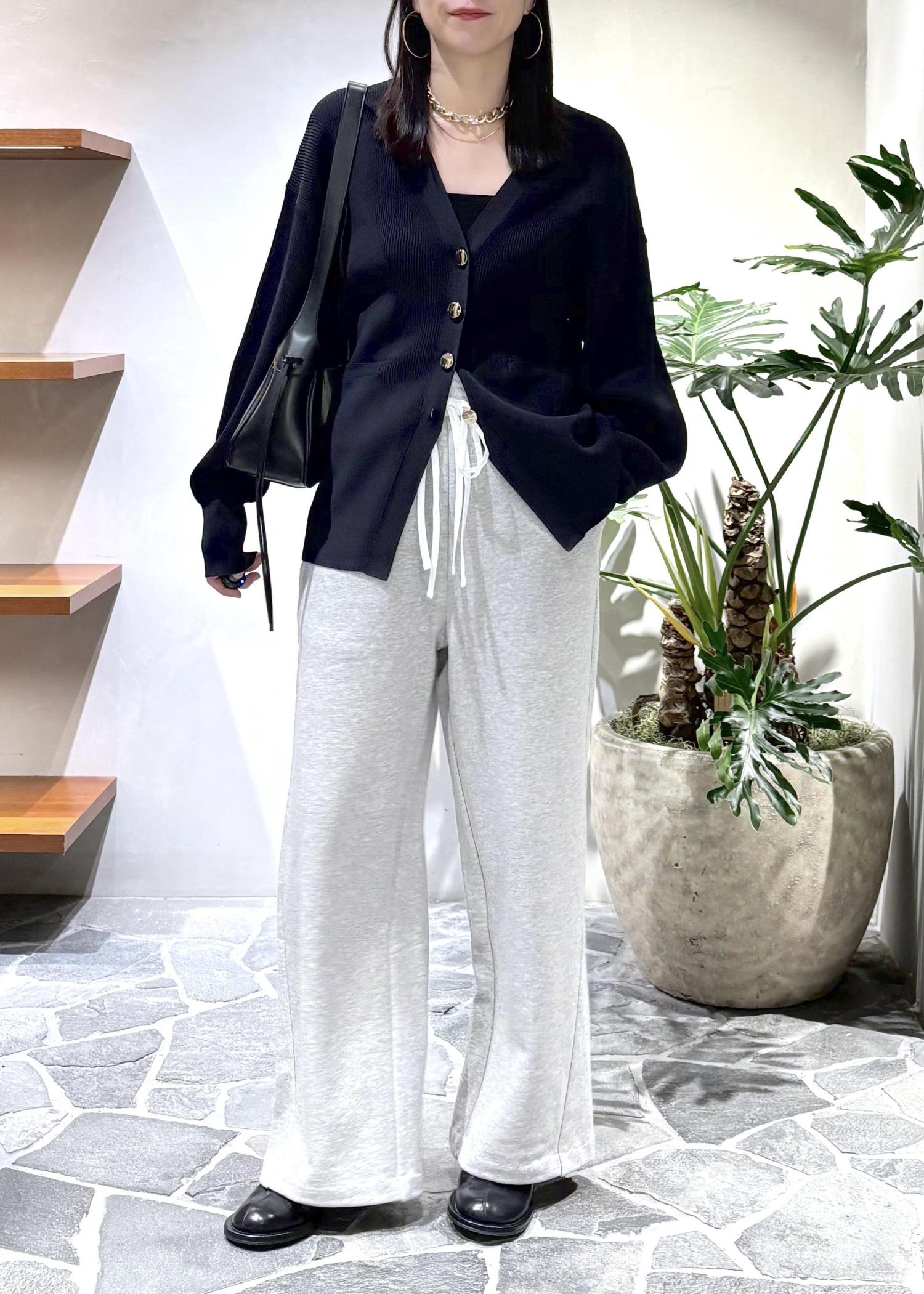 ウエストデザインが可愛いく、ワイドストレートのデザインも綺麗なので部屋着感がでないスウェットパンツ。