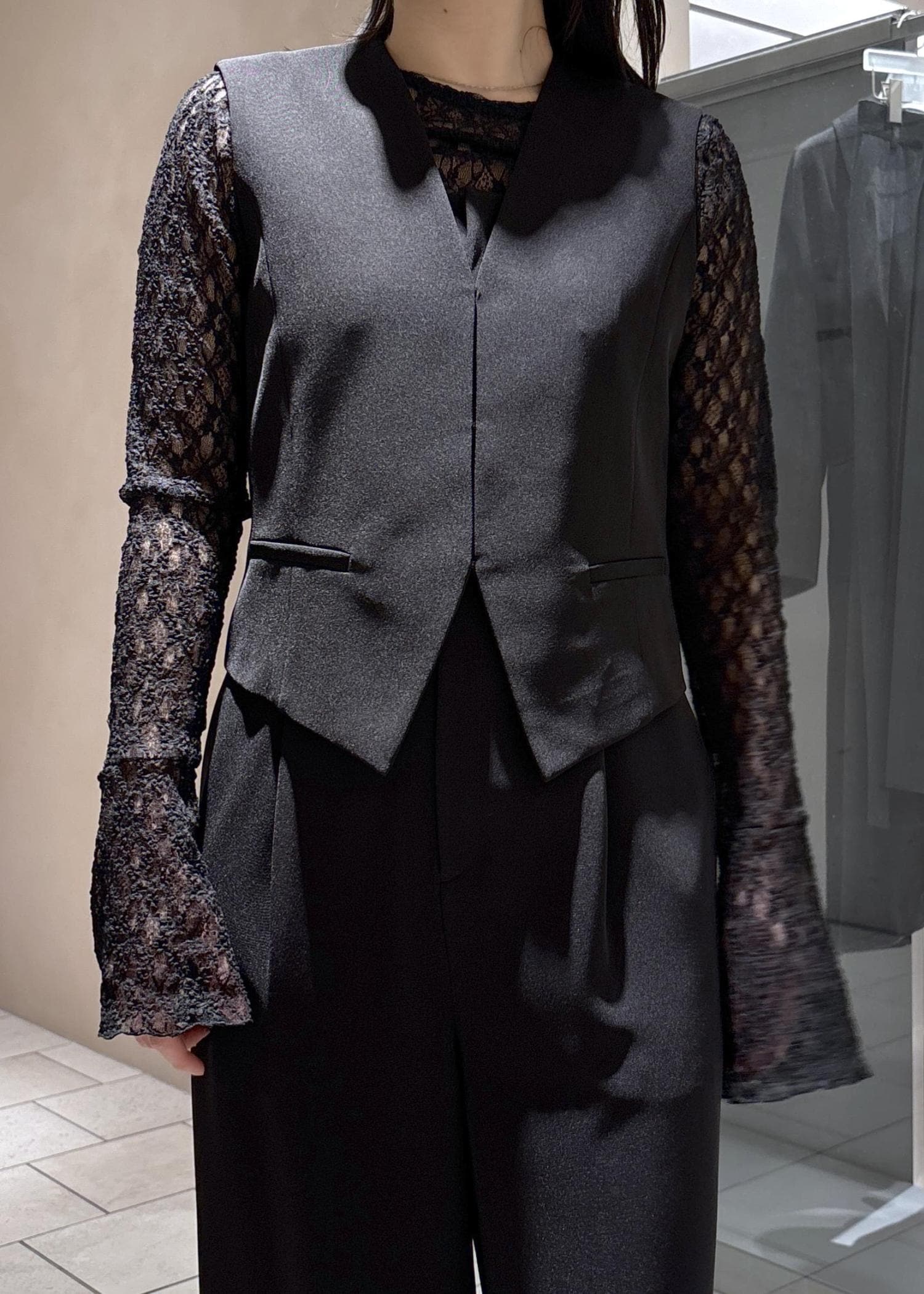 ADAM ET ROPÉ FEMMEフレアスリーブレーストップスブラック / F¥12,100レビューチクチクせず、ピッタリ過ぎない。