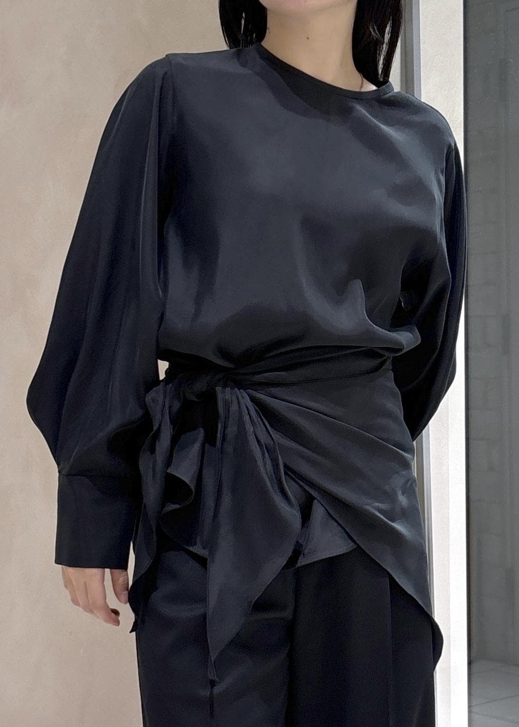 ADAM ET ROPÉ FEMMEフィブリルロンTEEスカーフブラウスブラック / F¥17,600レビュー贅沢なキュプラ素材。