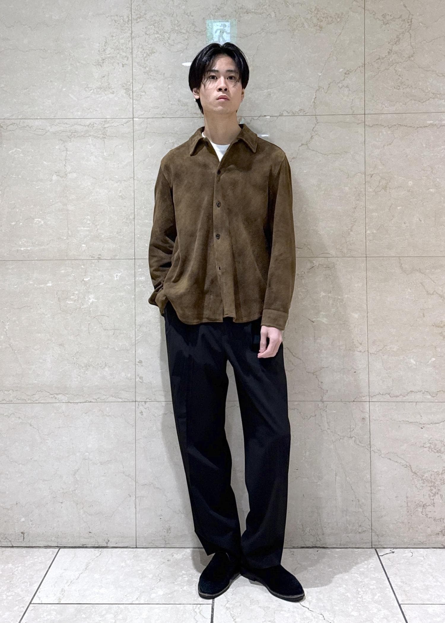 ADAM ET ROPÉ HOMMEヴィンテージ加工 ゴート スエード シャツブラウン / M¥71,500
