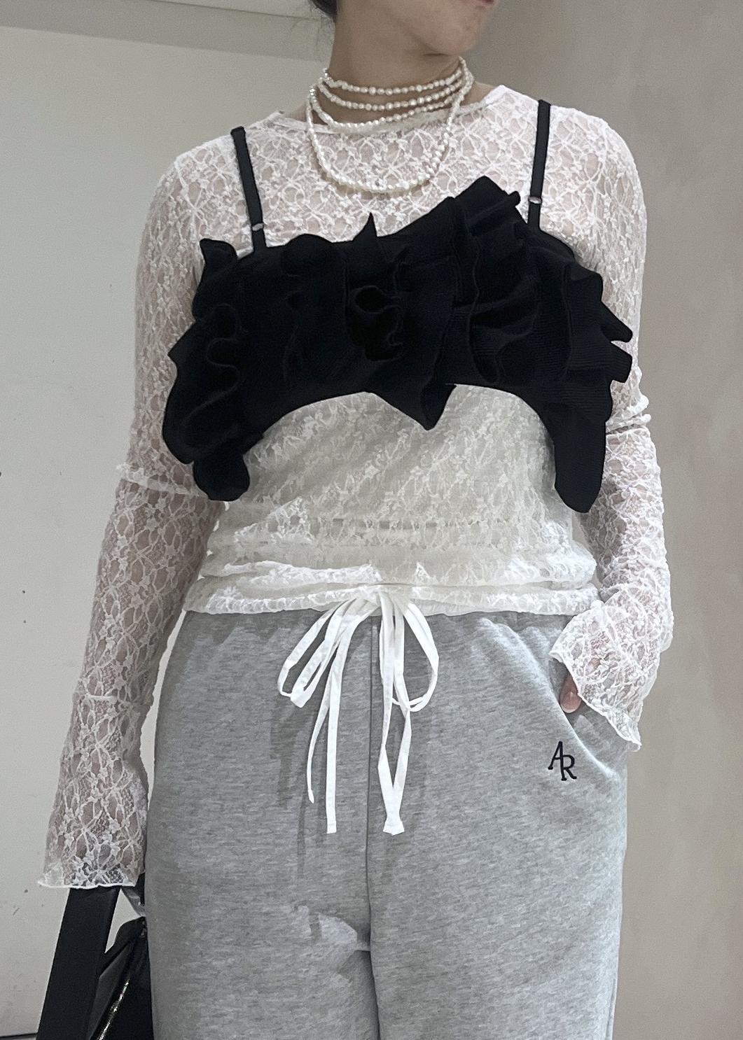 ADAM ET ROPÉ FEMME【サステナブル】ニットフリルビスチェブラック / F¥17,600レビューフリルが可愛いビスチェです!