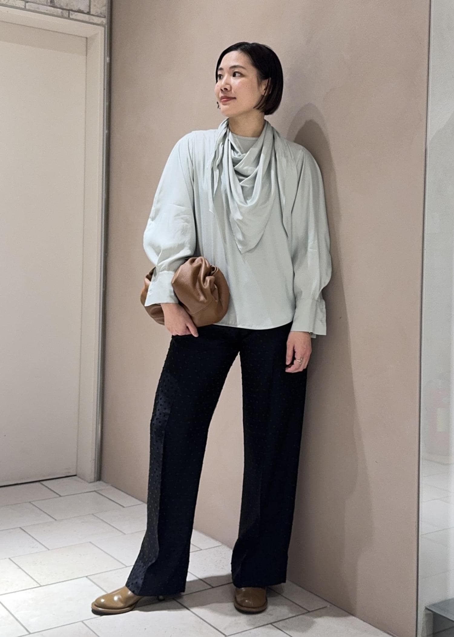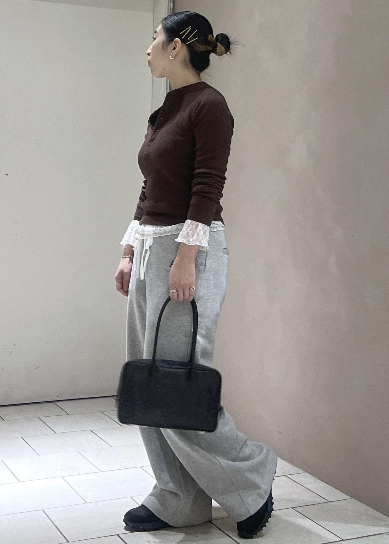 着丈少し短めでインナーで遊んで着るのも楽しいです!柔らかめの素材感で着心地よく着られます♪ 色は3色で捨て色のないカラーリングです!