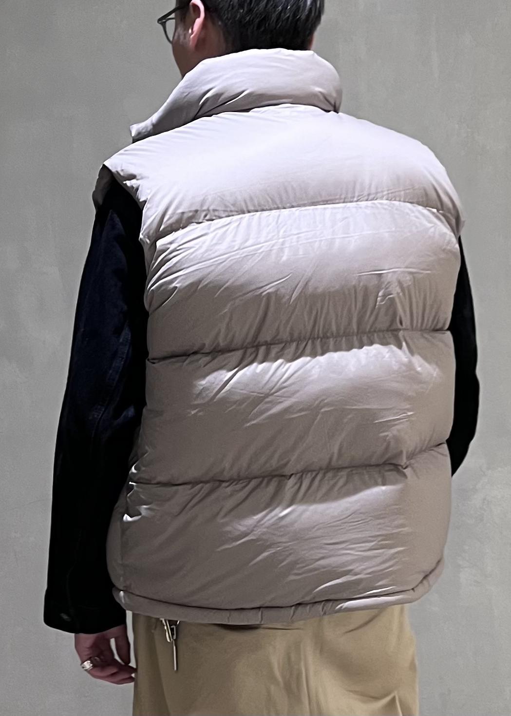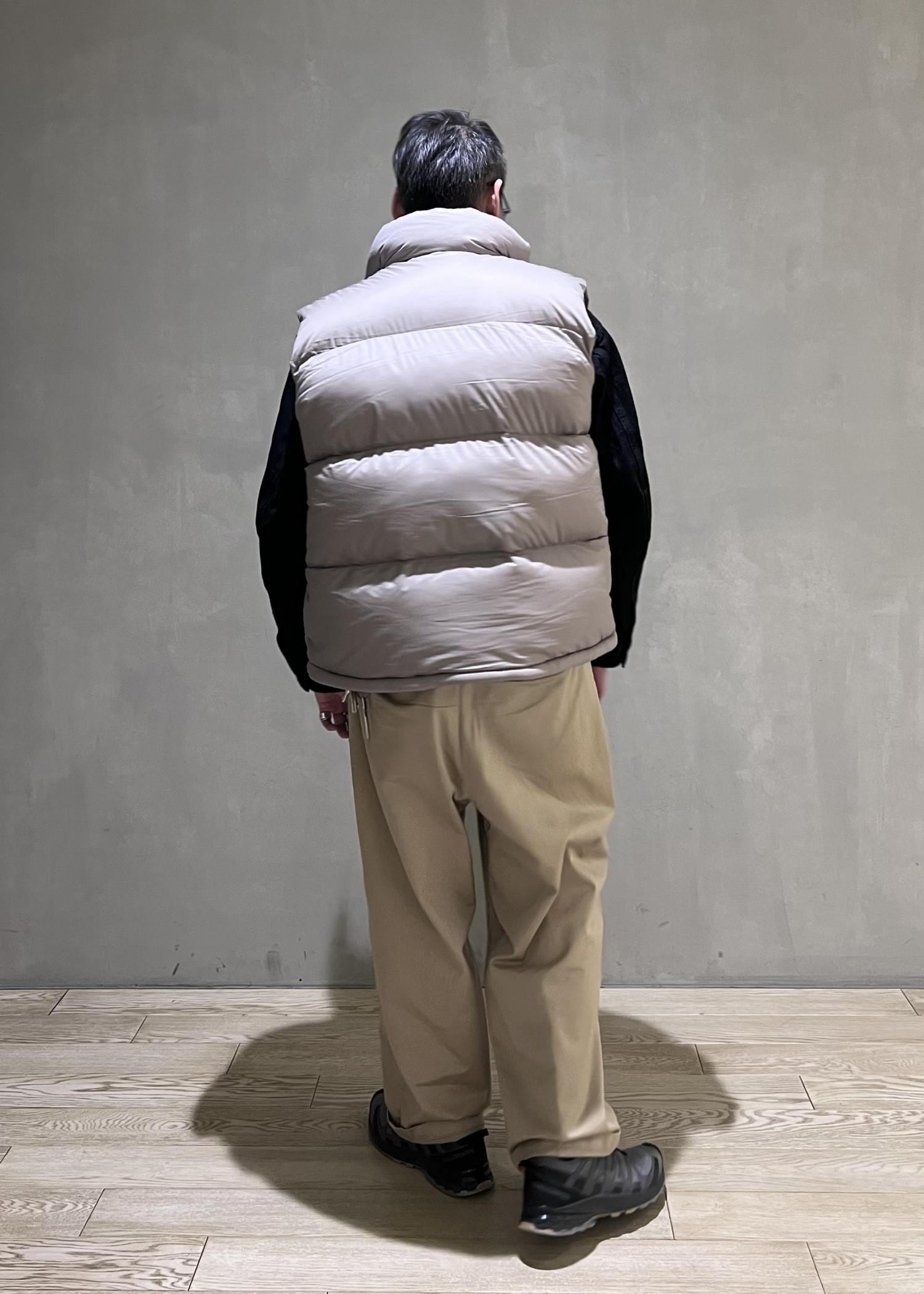 適度なハリとしなやかさもある表面感でダウンのボリューム感はありますが非常に軽く、快適な着心地です