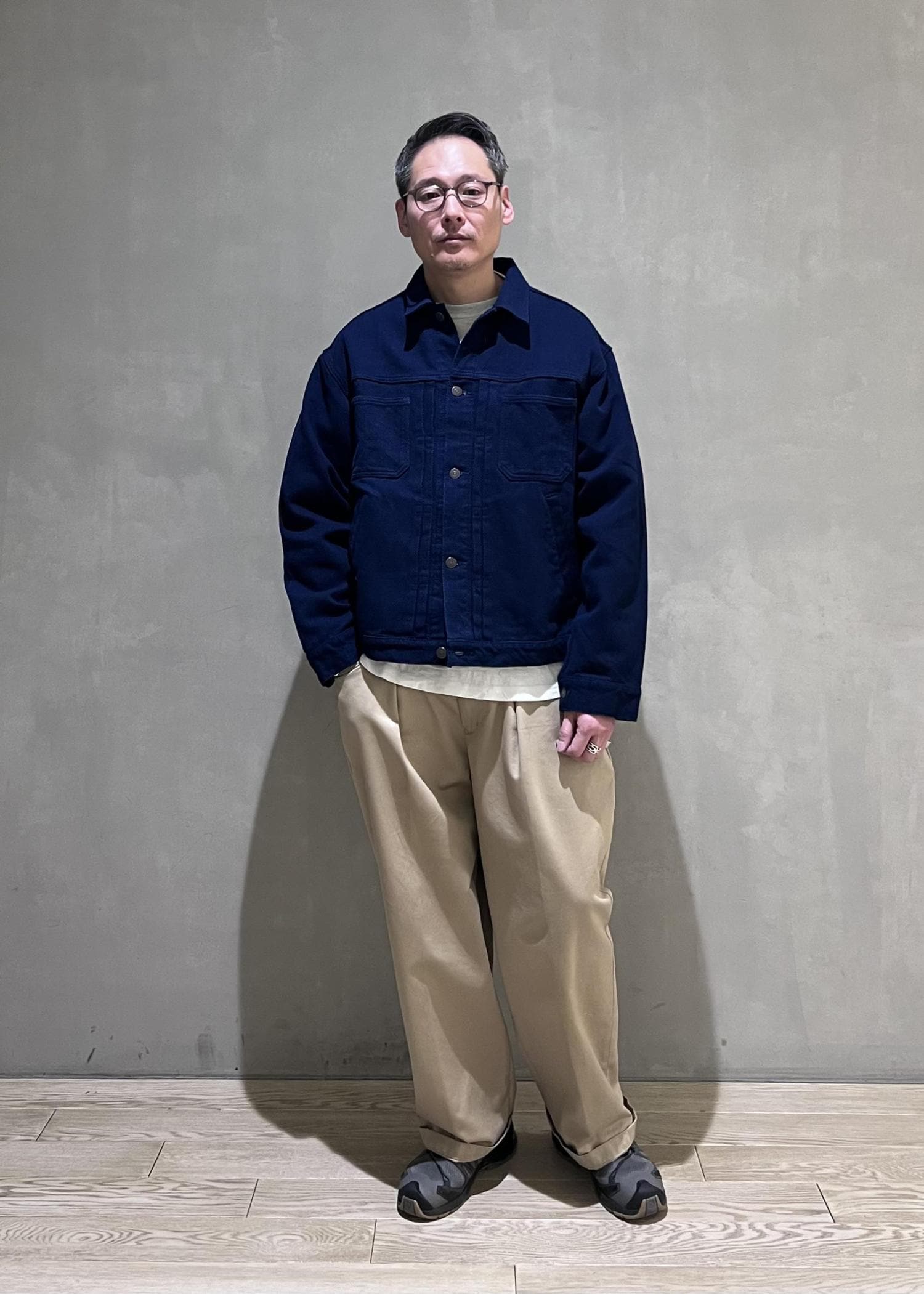 ADAM ET ROPE' JEANSよりデニムトラッカージャケットを使用したスタイリングのご紹介です!