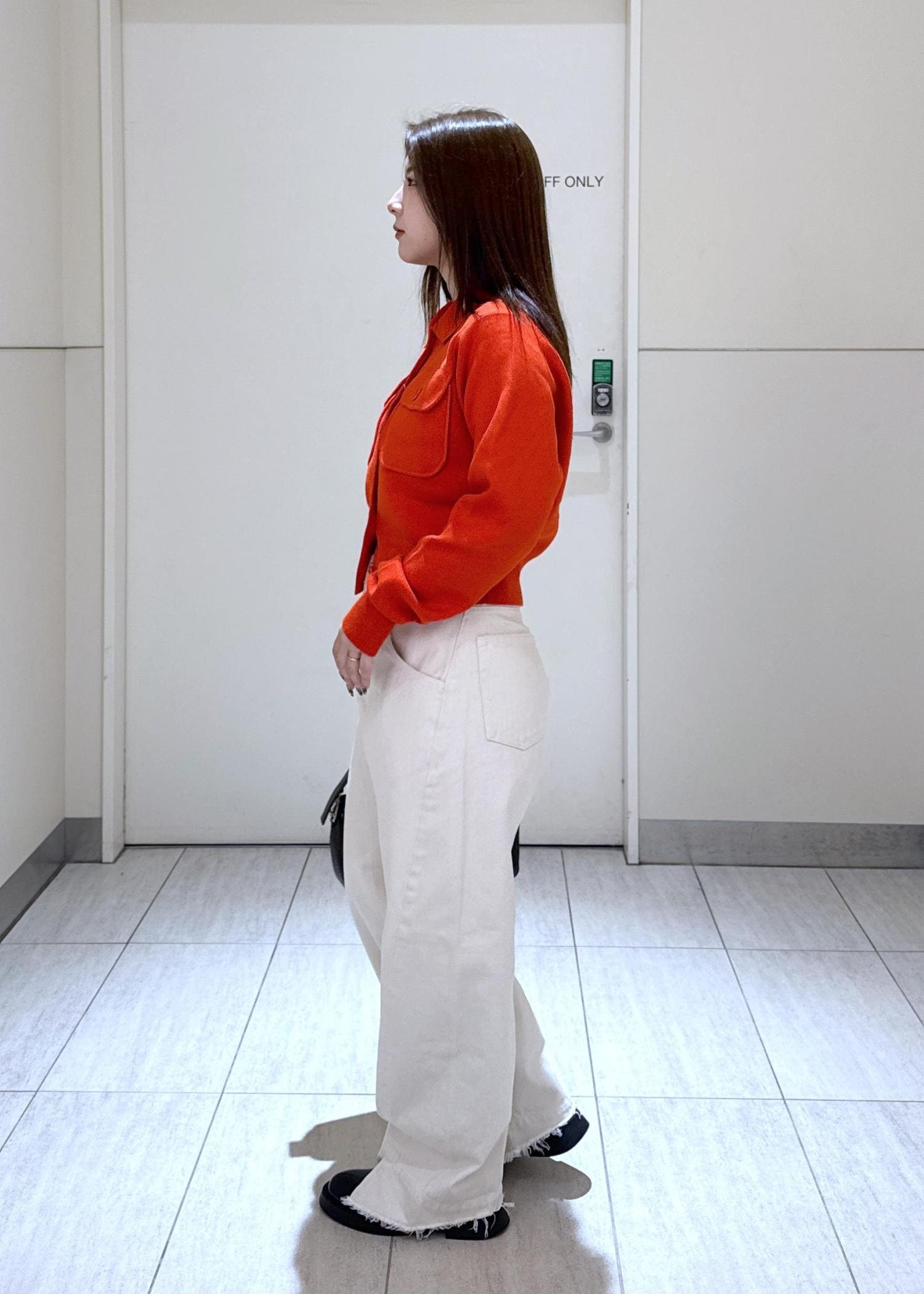 ADAM ET ROPÉ FEMMEコットンカシミヤポケットカーディガンレッド系 / F¥24,200レビュー肌触りが良く、サイズ感も小さすぎず丁度いいです。