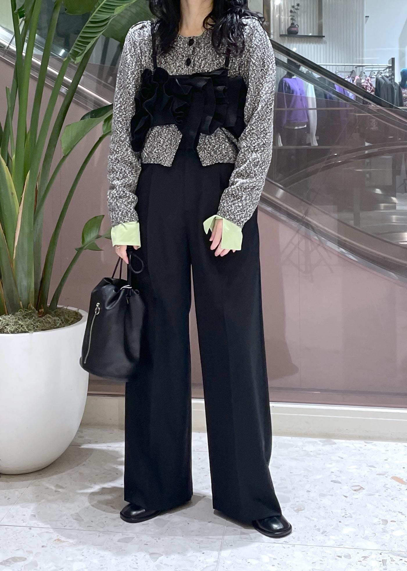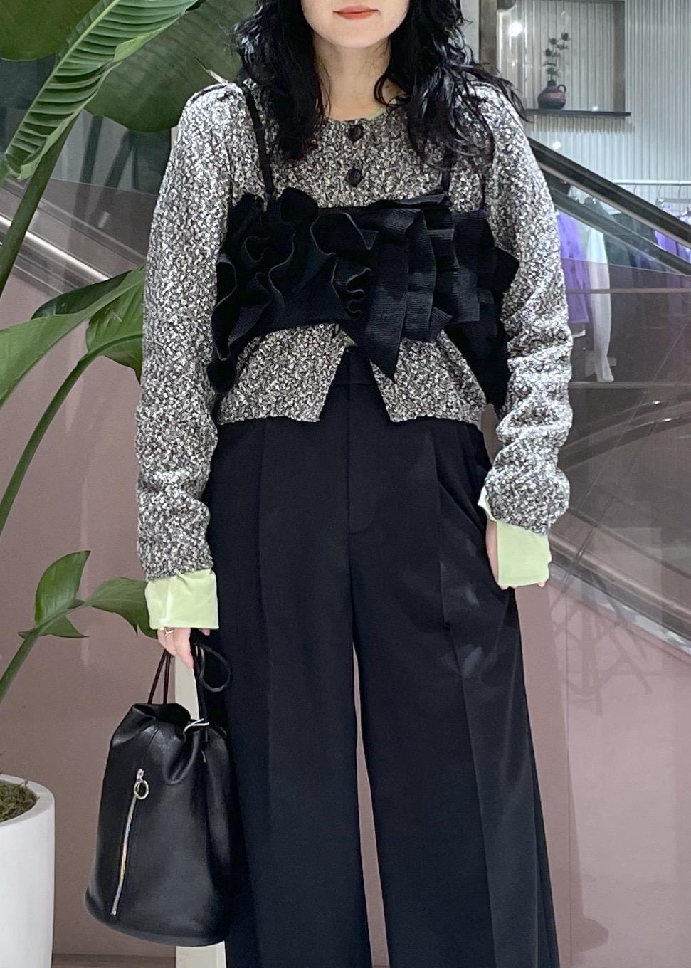 ADAM ET ROPÉ FEMME【サステナブル】ニットフリルビスチェブラック / F¥17,600レビュー立体的なニットのフリルが可愛いビスチェ。