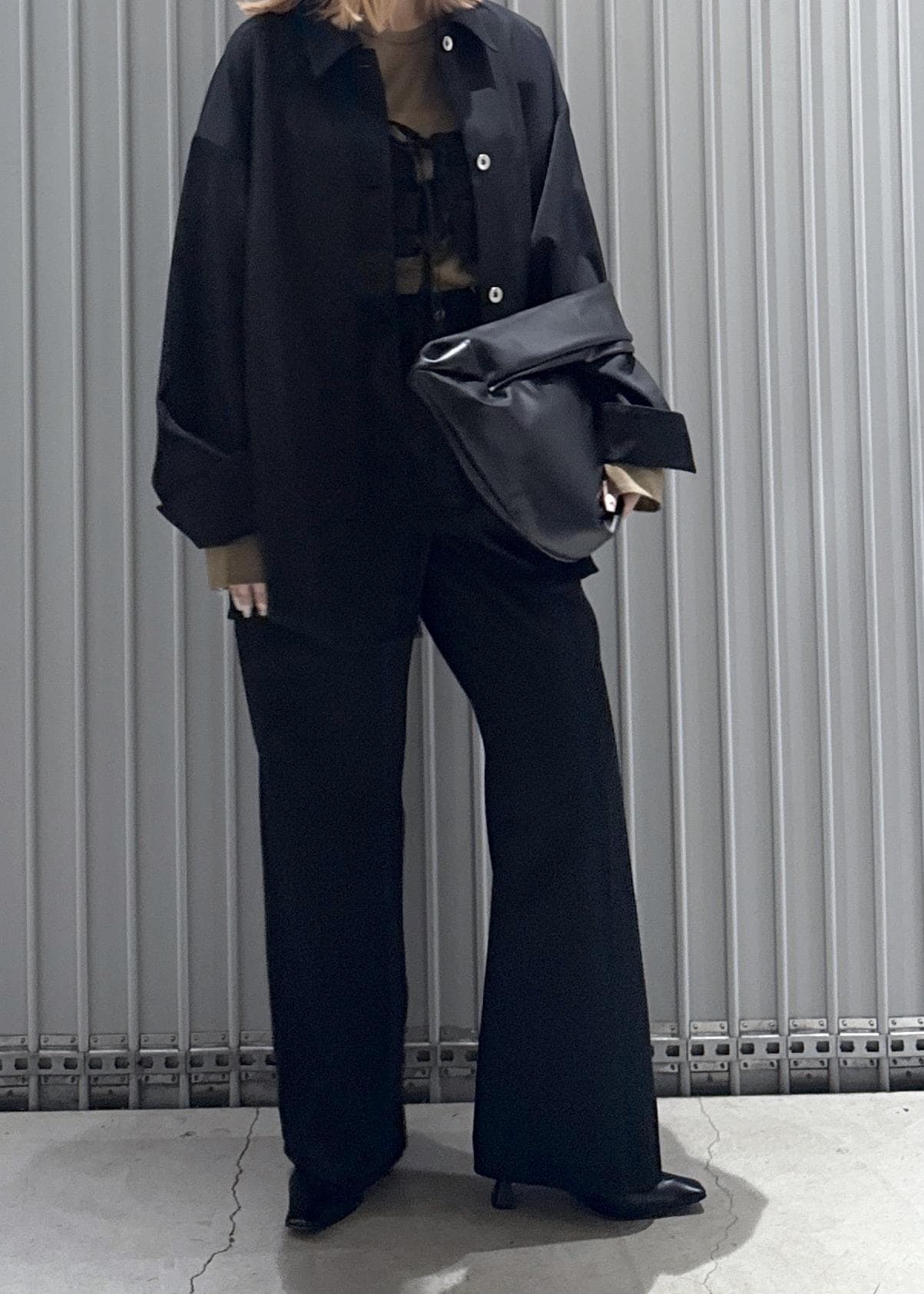 オーバサイズで落ち感のあるシャツブルゾン