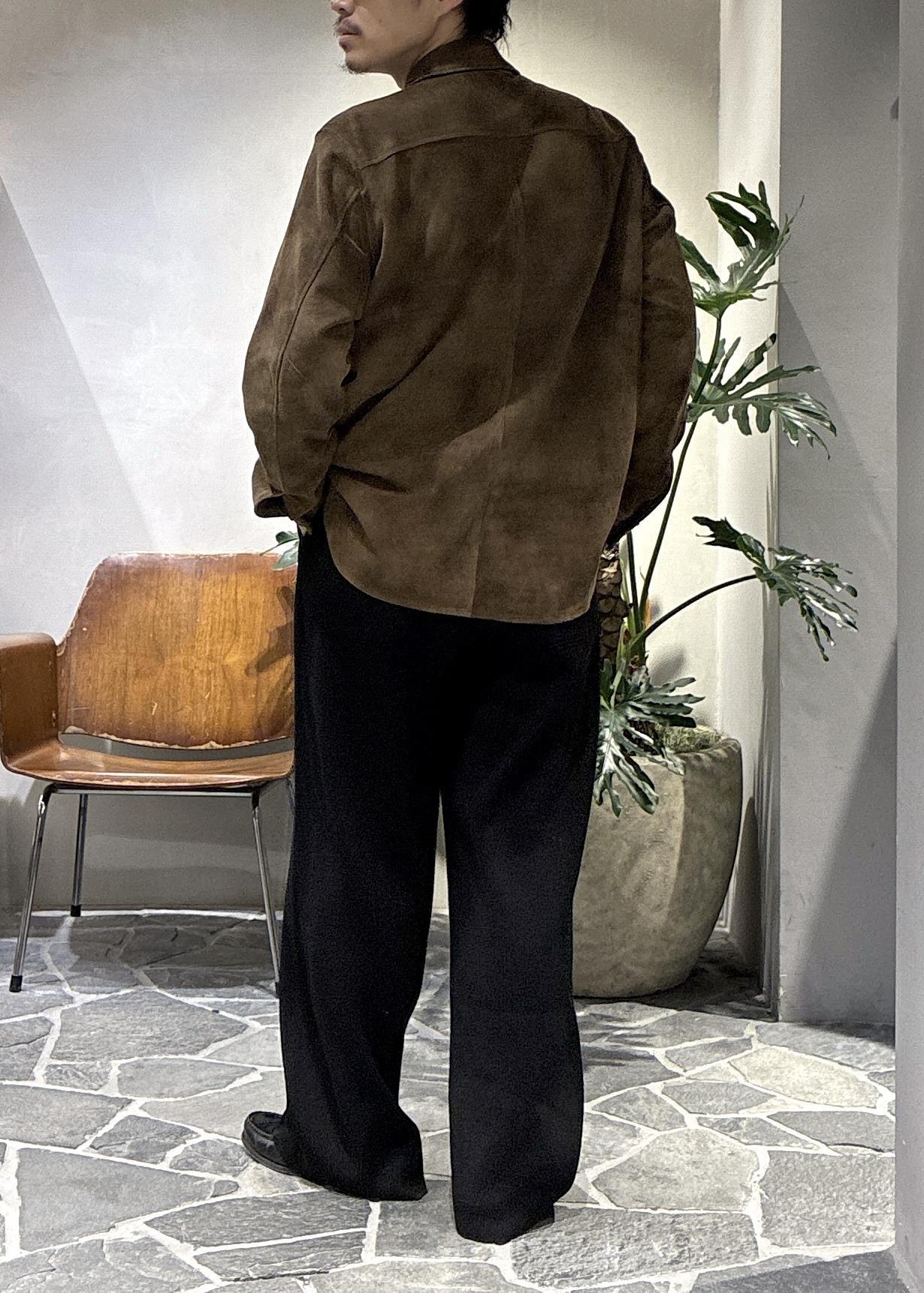 ヤギ革の独特な風合いがとにかくかっこよく、程よい肉感もあるので、春先のトップスとしてはもちろん、冬場はアウターのインナーとしても重宝します。 -
