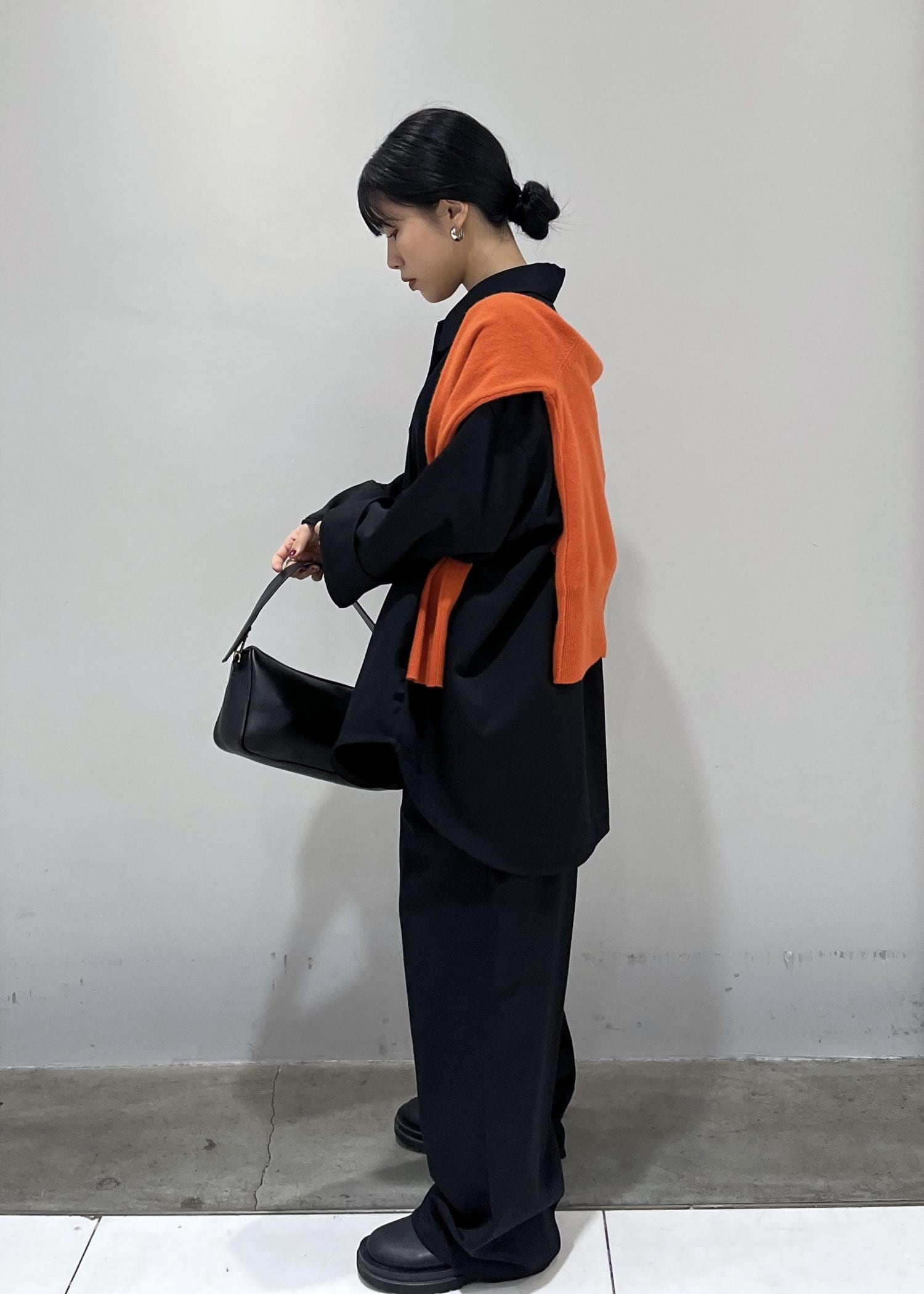 ADAM ET ROPÉ FEMMEカシミヤポロニットレッド系 / F¥17,820レビュー肌触りも良くコンパクトなサイズ感なので、今回のように肩にかけたりポイント使いにもおすすめなアイテムです!