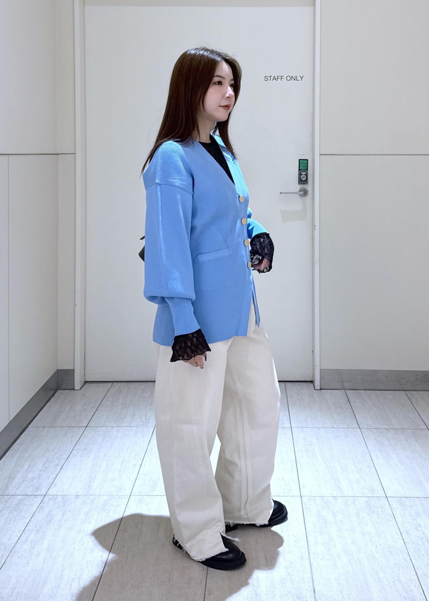 本日は新作カーディガンにトップスを合わせてシンプルな大人コーデにしてみました!