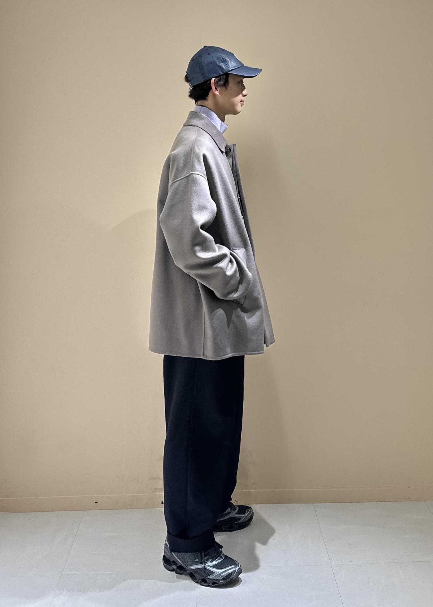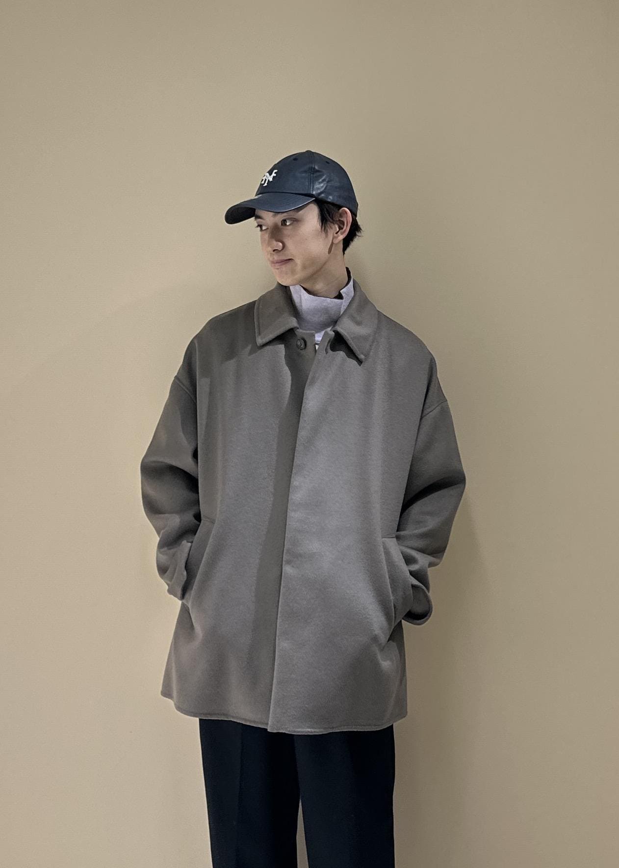 メリノウールを使用したコート。軽やかな着心地、柔らかい肌触り。それでいてしっかり温かいです。軽やかなので冬に着ても疲れずらいです。程よくゆとりがありながらもスタイリッシュ。とにかくカッコいい形、佇まい。ショートにのコートなので使いやすいです。