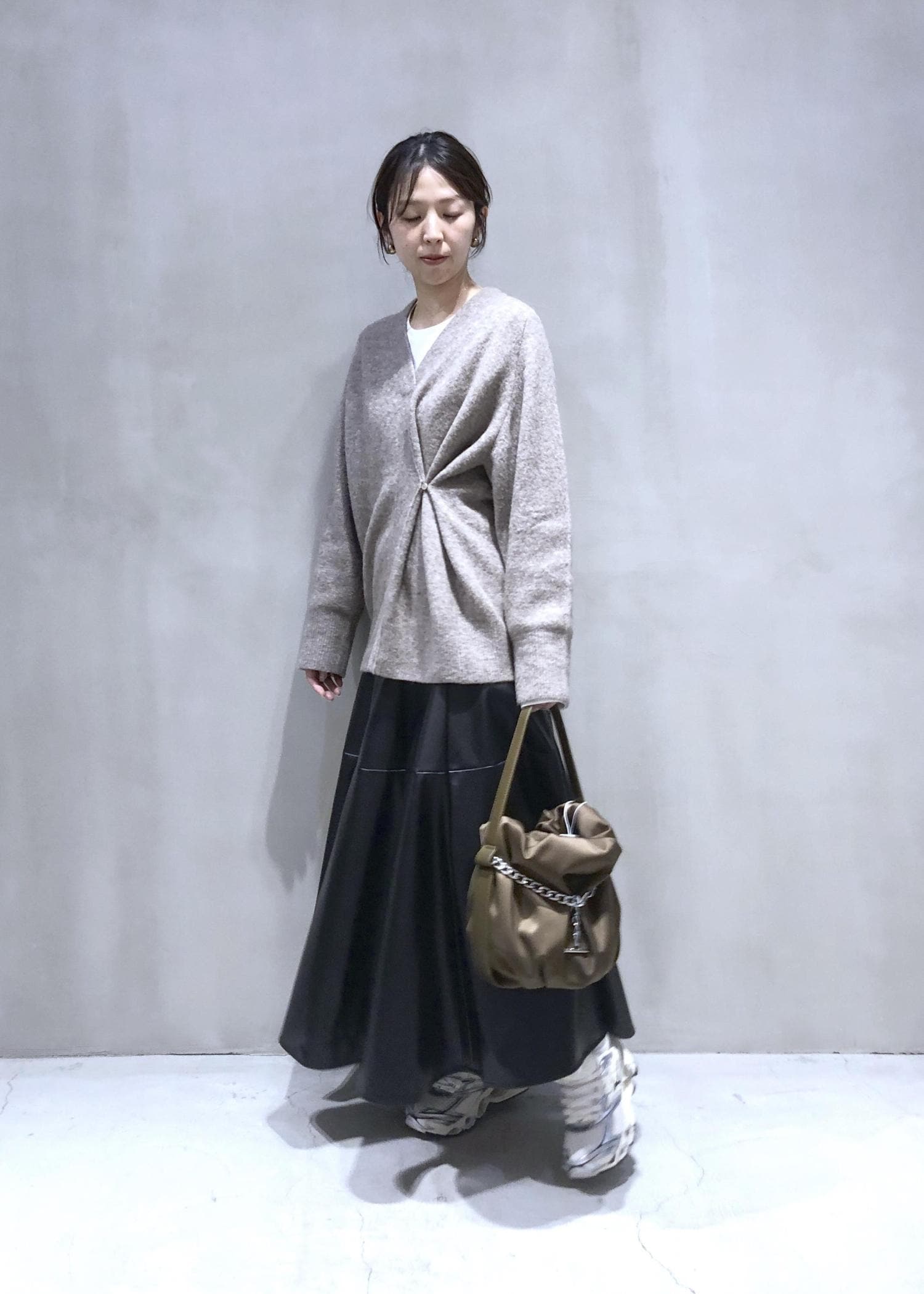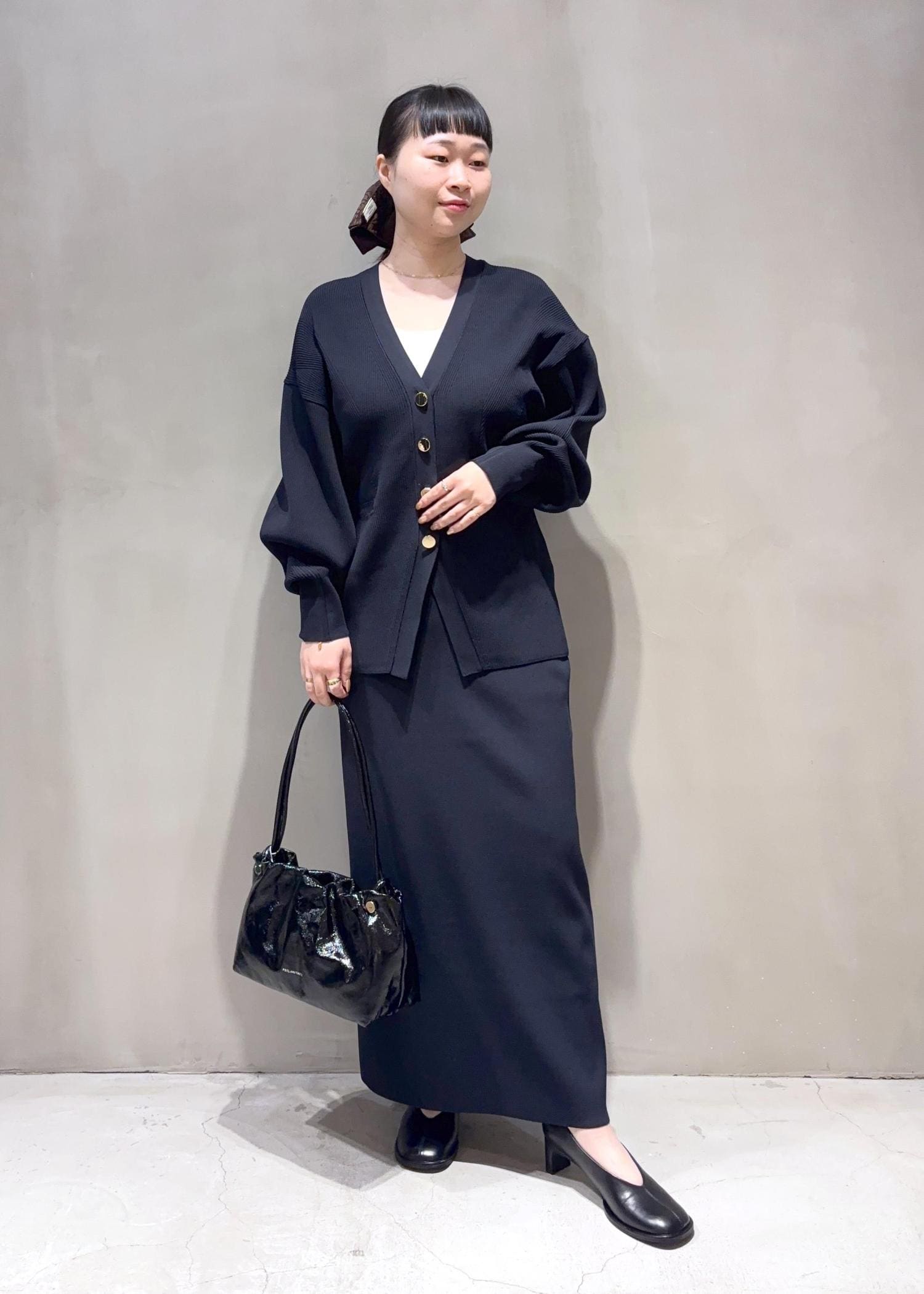 袖は細めなので、カーディガンなどの羽織も袖通ししやすいです。 -