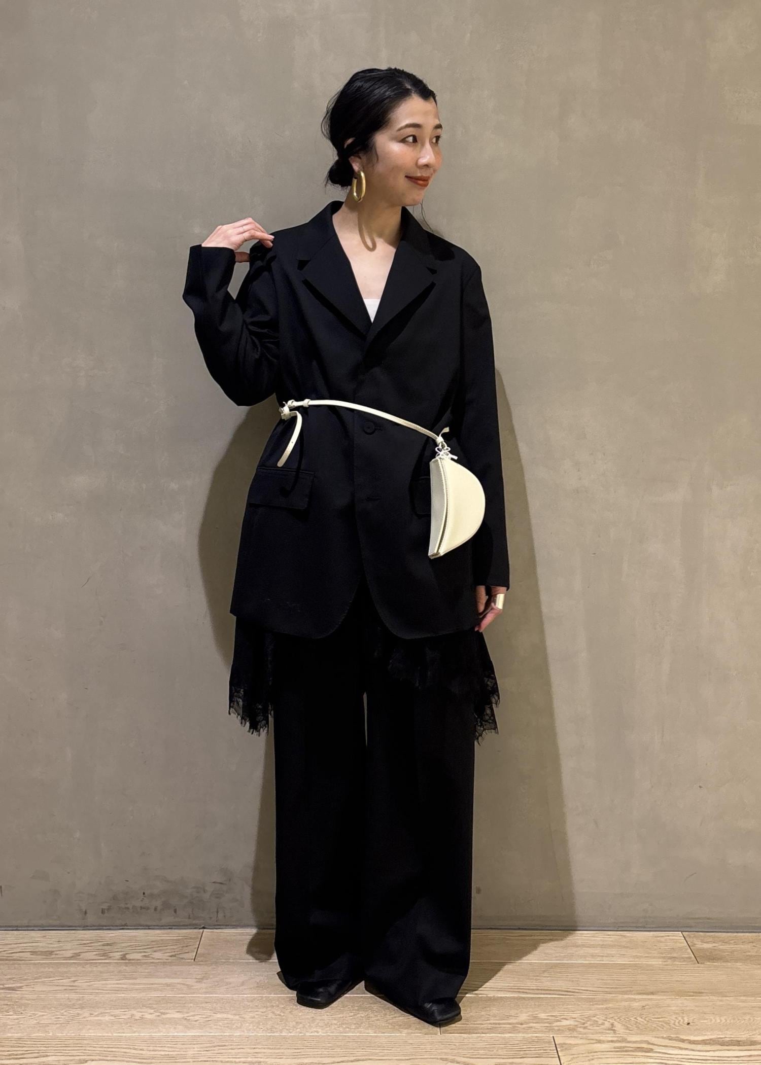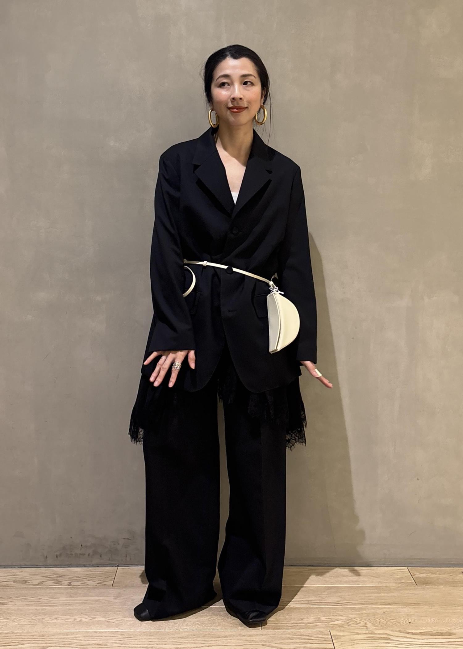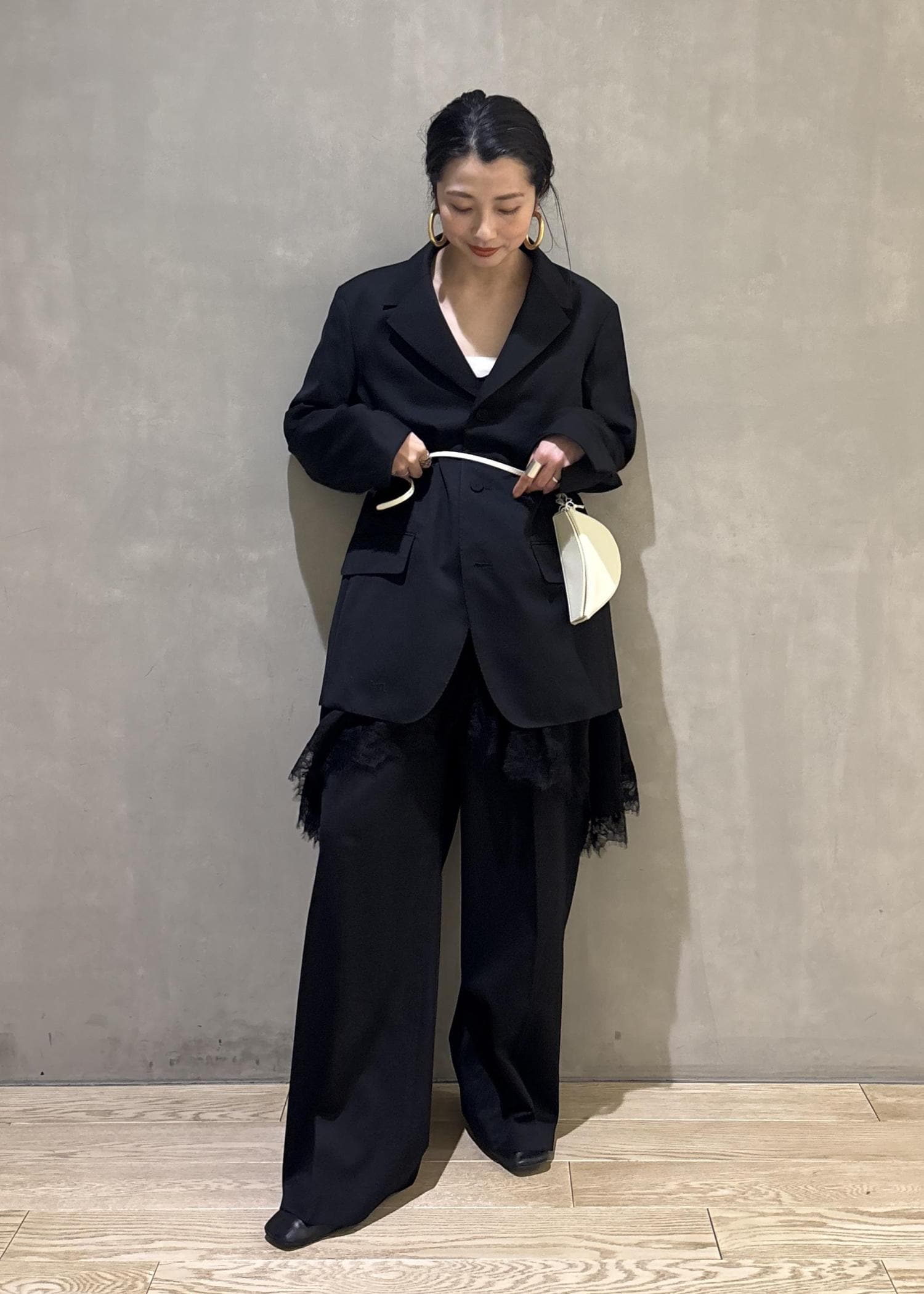 シンプルなセットアップもインナーにレースジレをレイヤードするだけで、素敵なセレモニースタイリングに早替わり。