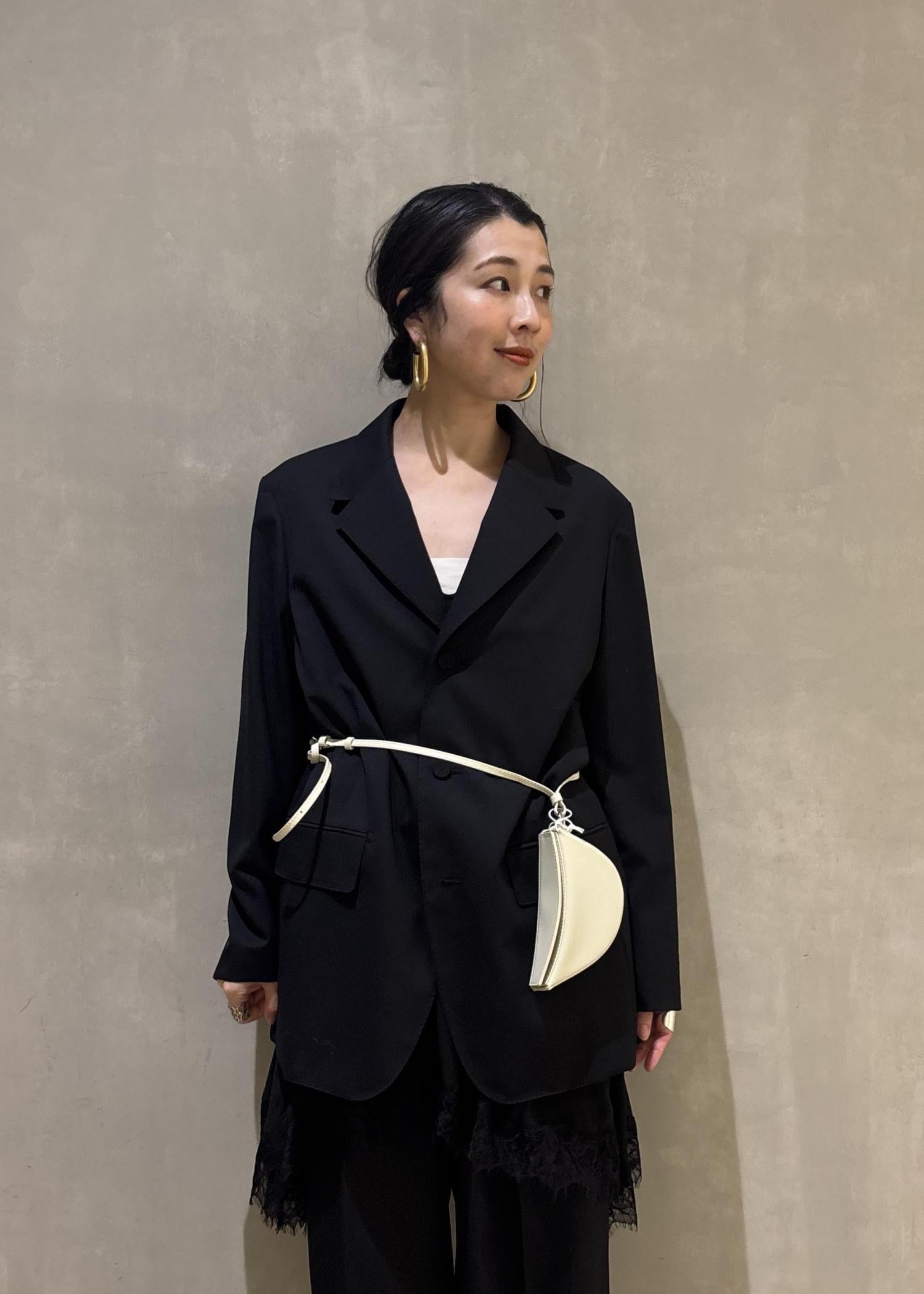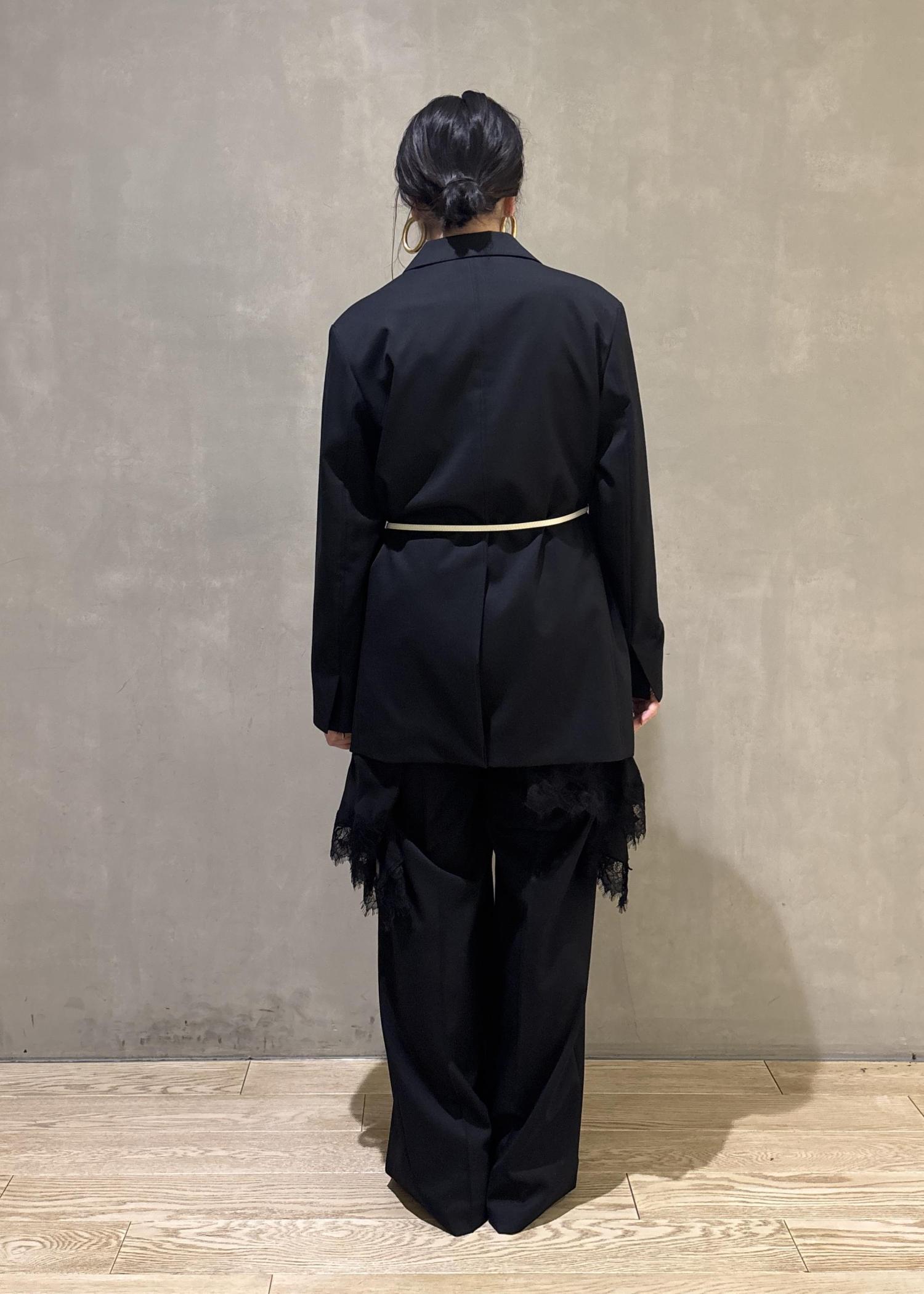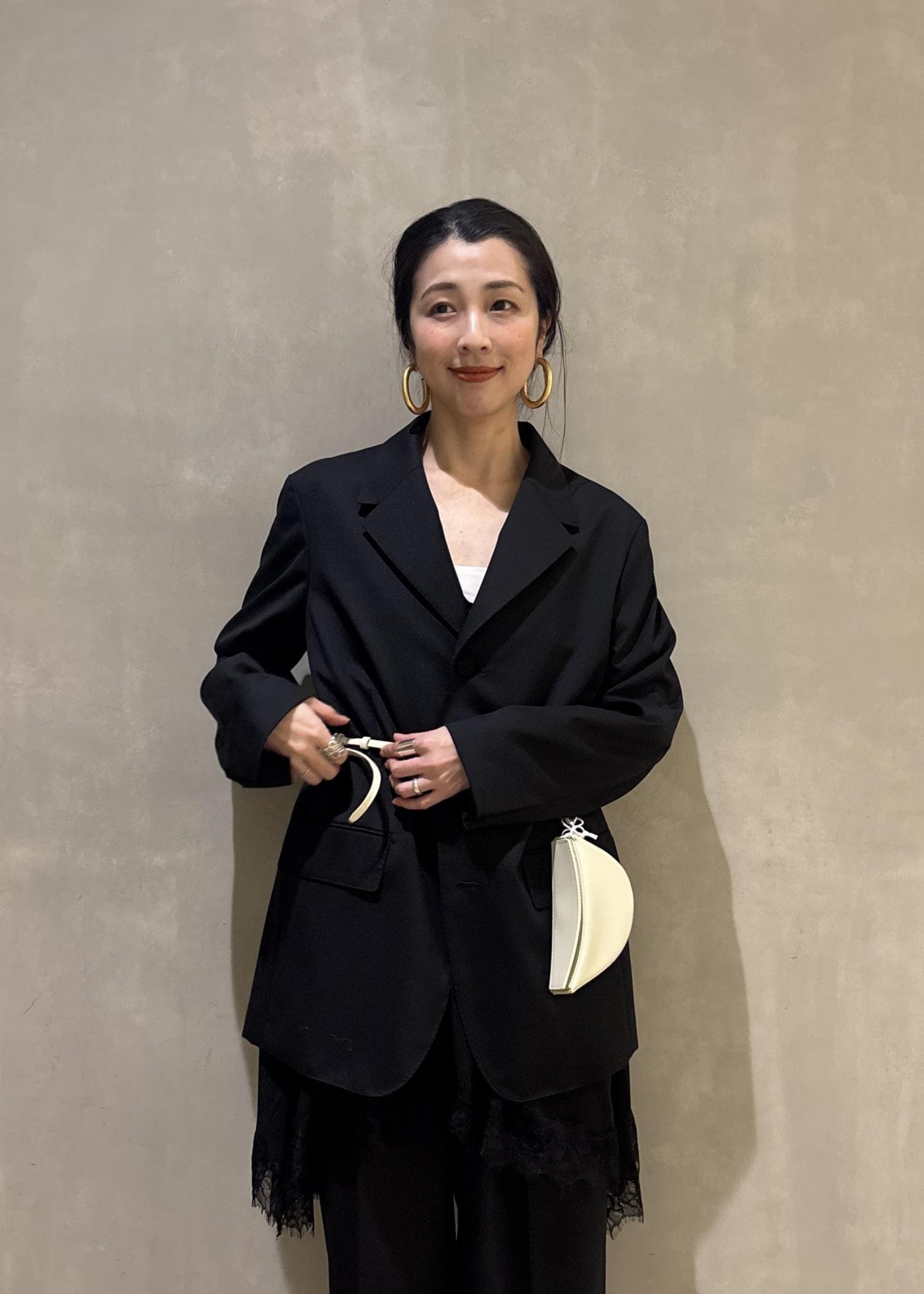 シンプルなセットアップもインナーにレースジレをレイヤードするだけで、素敵なセレモニースタイリングに早替わり。