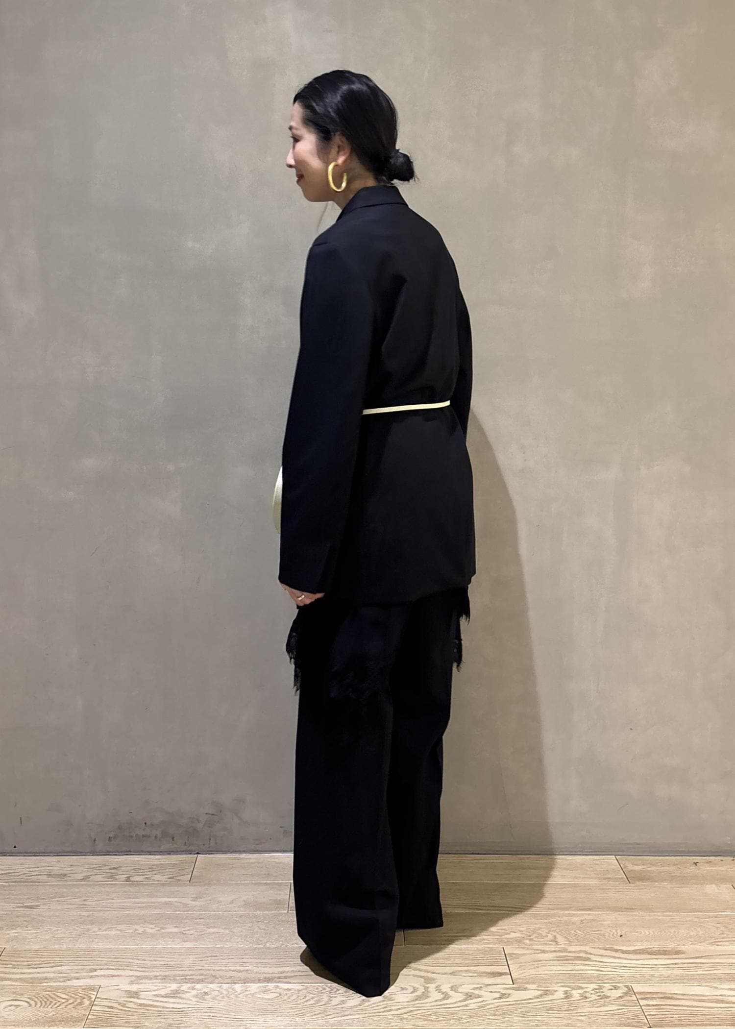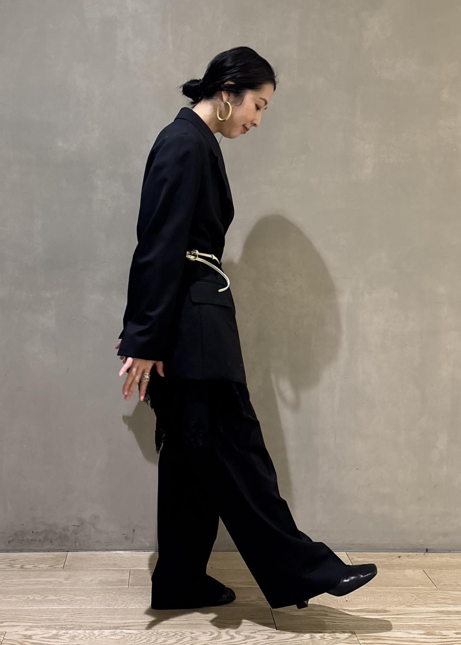 ADAM ET ROPÉ FEMMEイージースラックスブラック / 36¥22,000レビューウエストタックなので、少しゆとりがあり楽に着用できます。太さも細すぎず太すぎずの太さで、カジュアルすぎないのでお仕事着にもおすすめです。後ろゴムなので、締め付けもなくかなりストレスフリーです!!紐は取り外しができるので、テイストに合わせてつけてカジュアルダウンしたり、外してカッコよくまとめたりとアレンジできます。