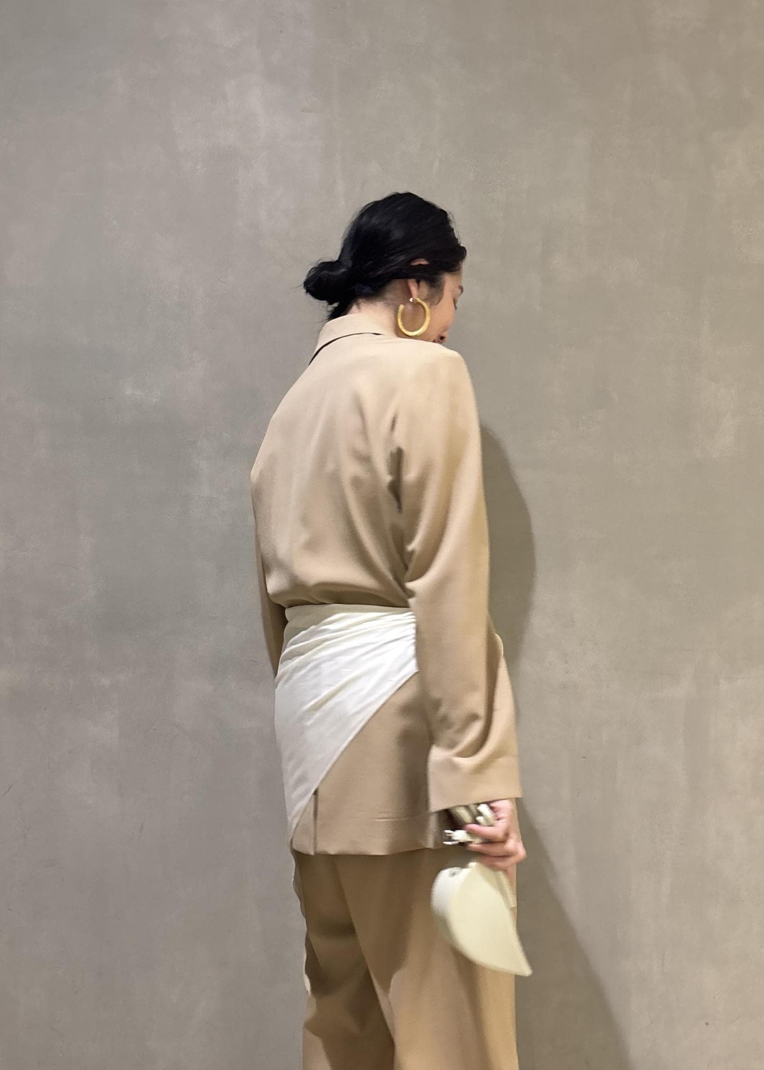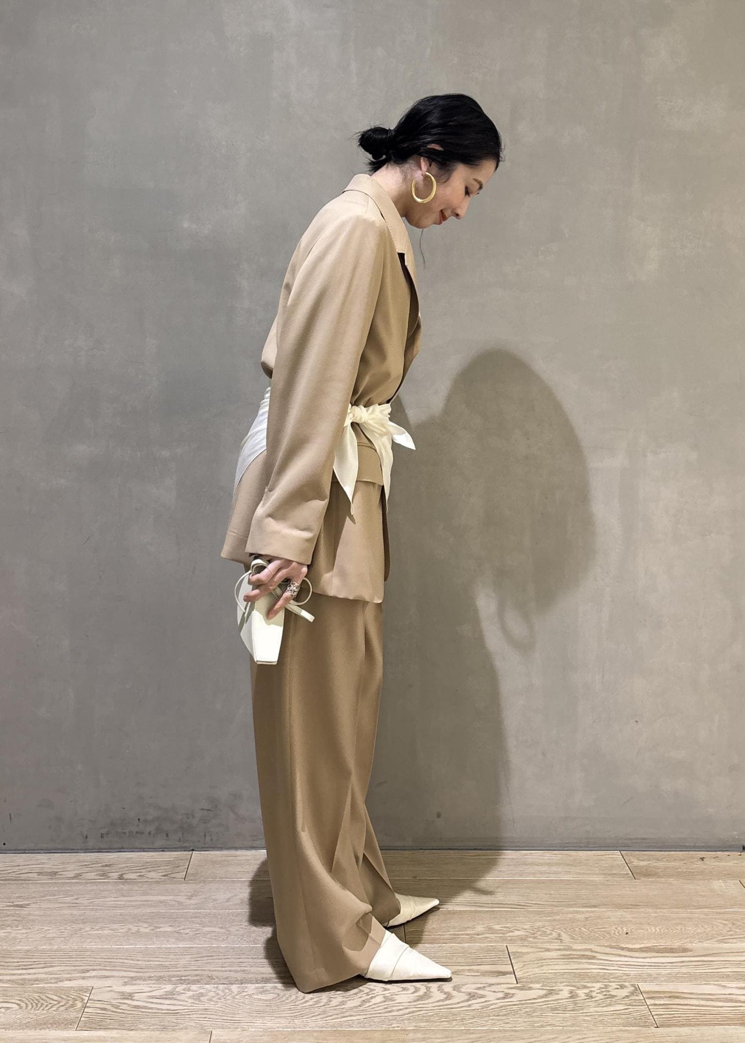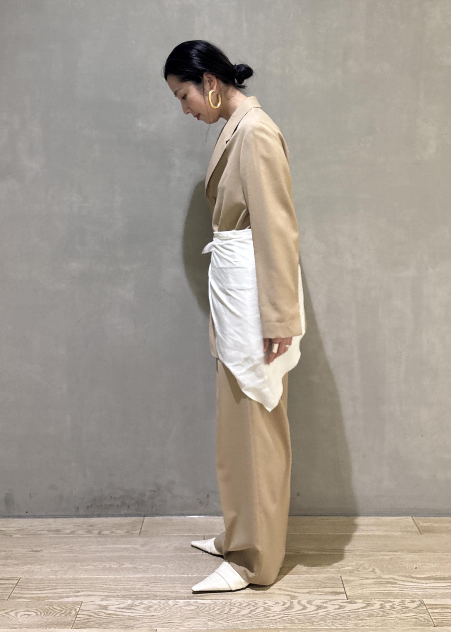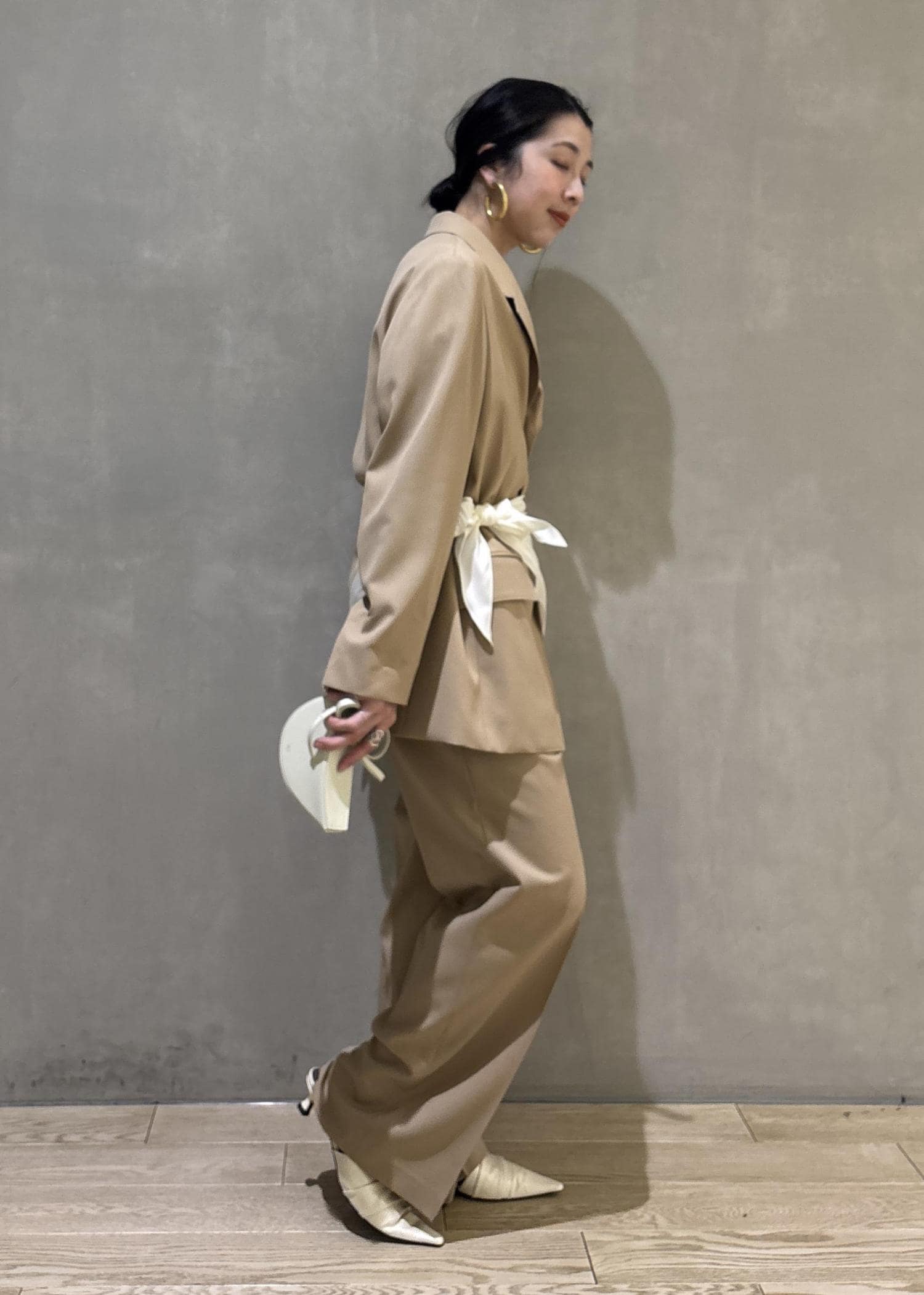 そしてあえてセットアップにスカーフでアレンジしたセレモニースタイリングもおすすめです!(こちらのスカーフ、実はブラウスに付属でついているスカーフで、色々アレンジできますよ!)