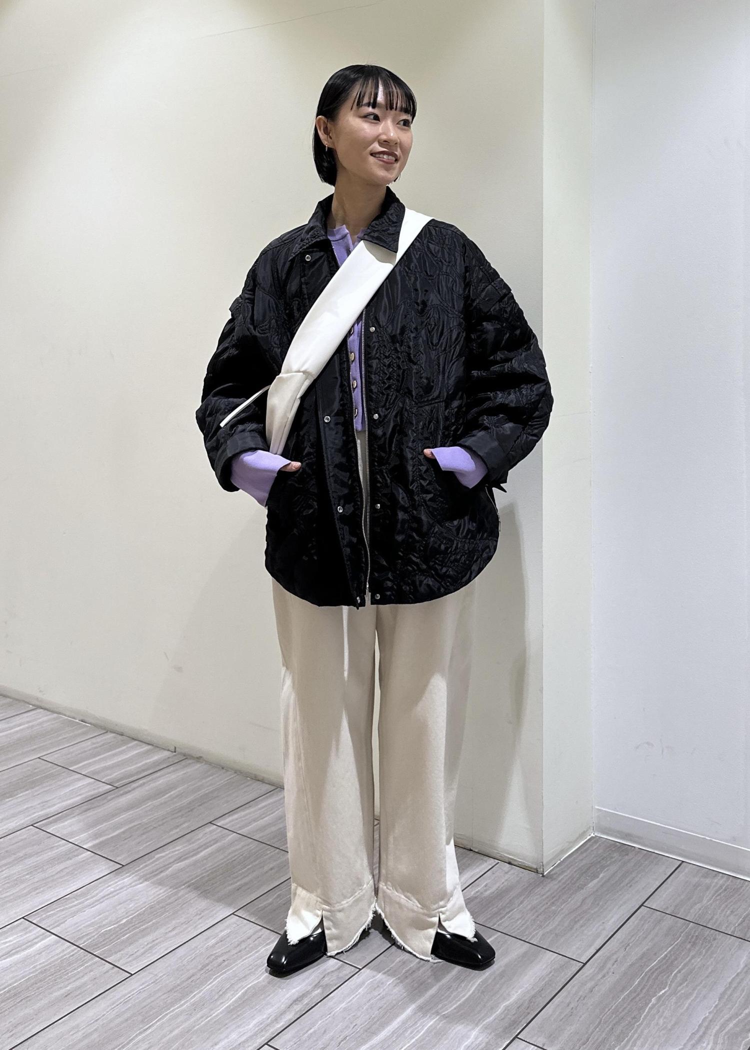 ADAM ET ROPÉ FEMMEイージースラックスブラック / 36¥22,000レビューセンタープレスがしっかり入ったパンツ。オンオフ兼用で着用出来るシルエットで、カジュアルにも綺麗めにも合わせやすいアイテム◯