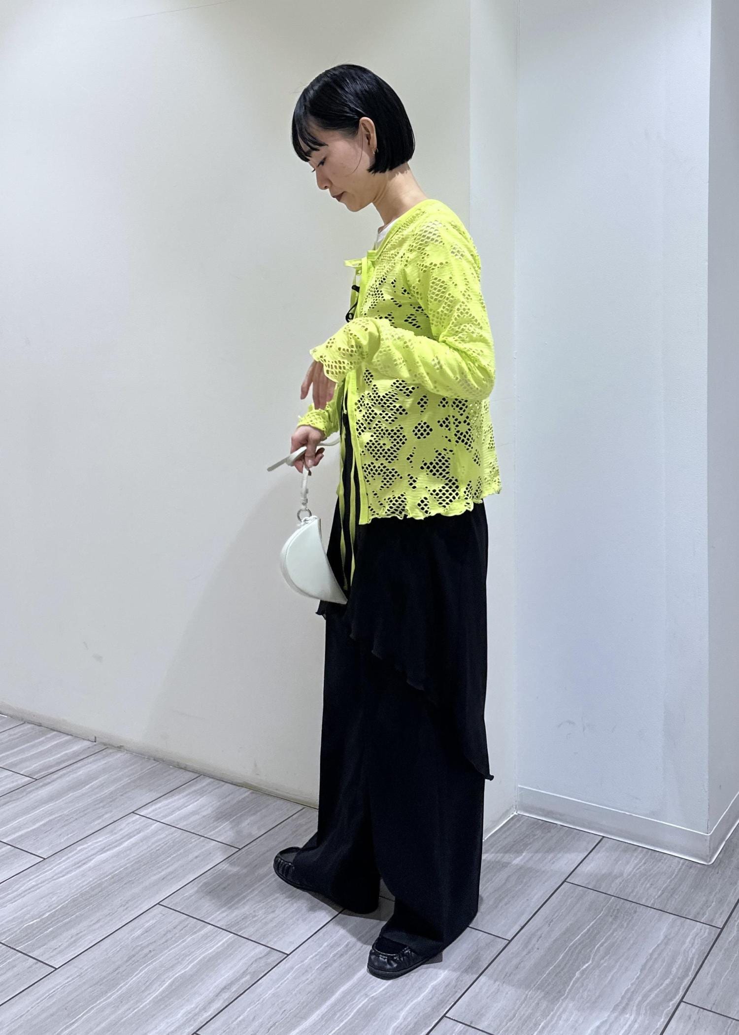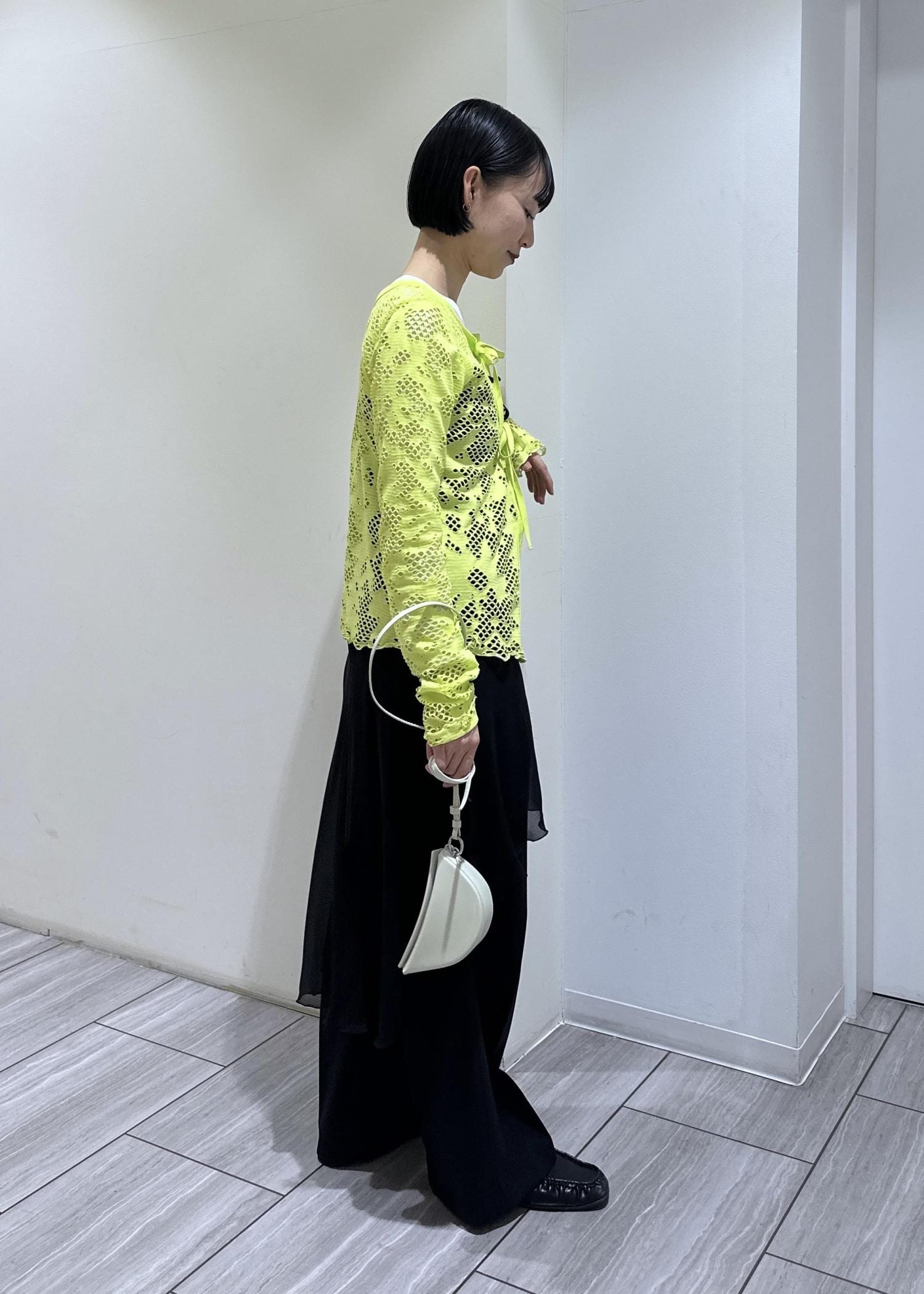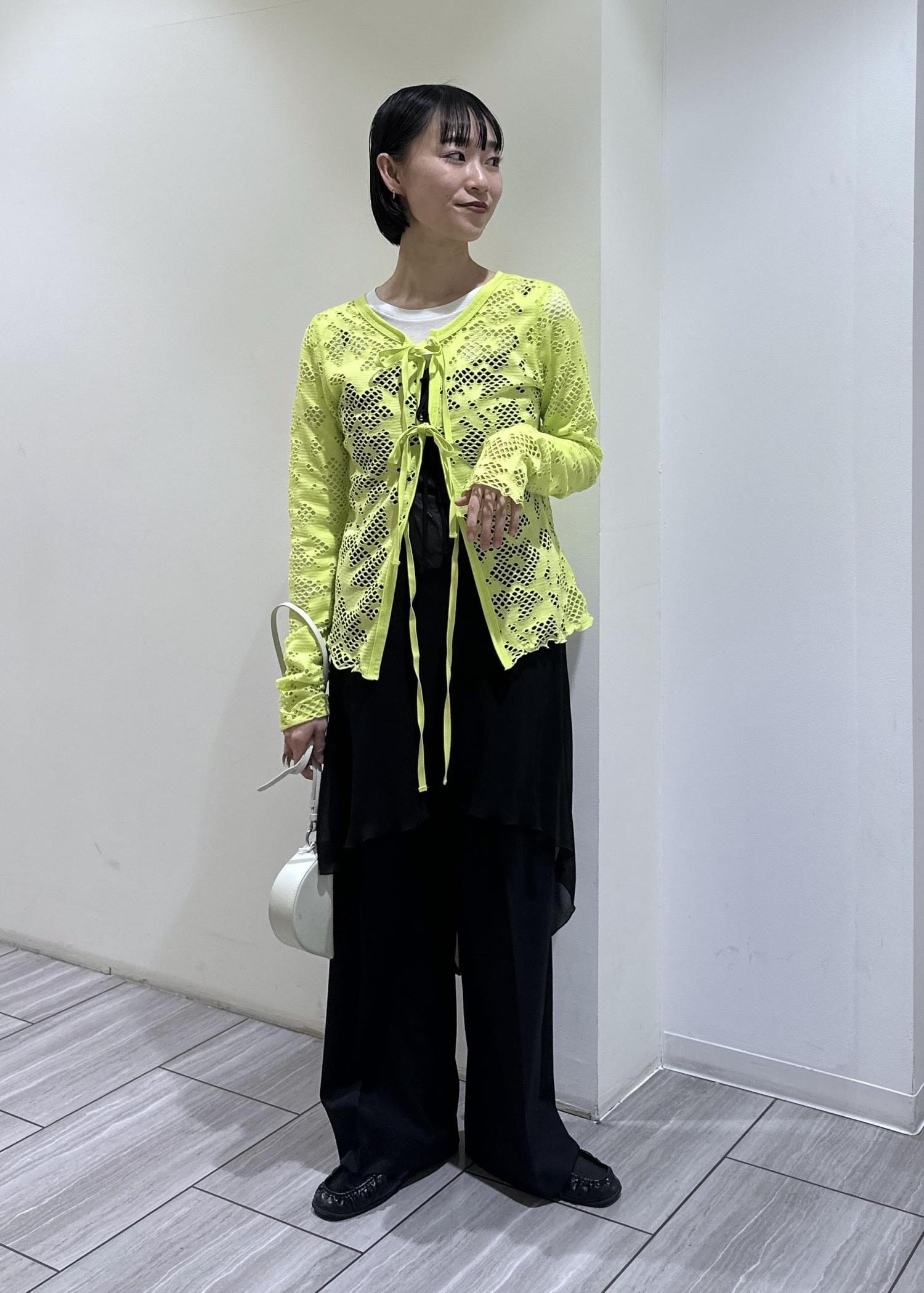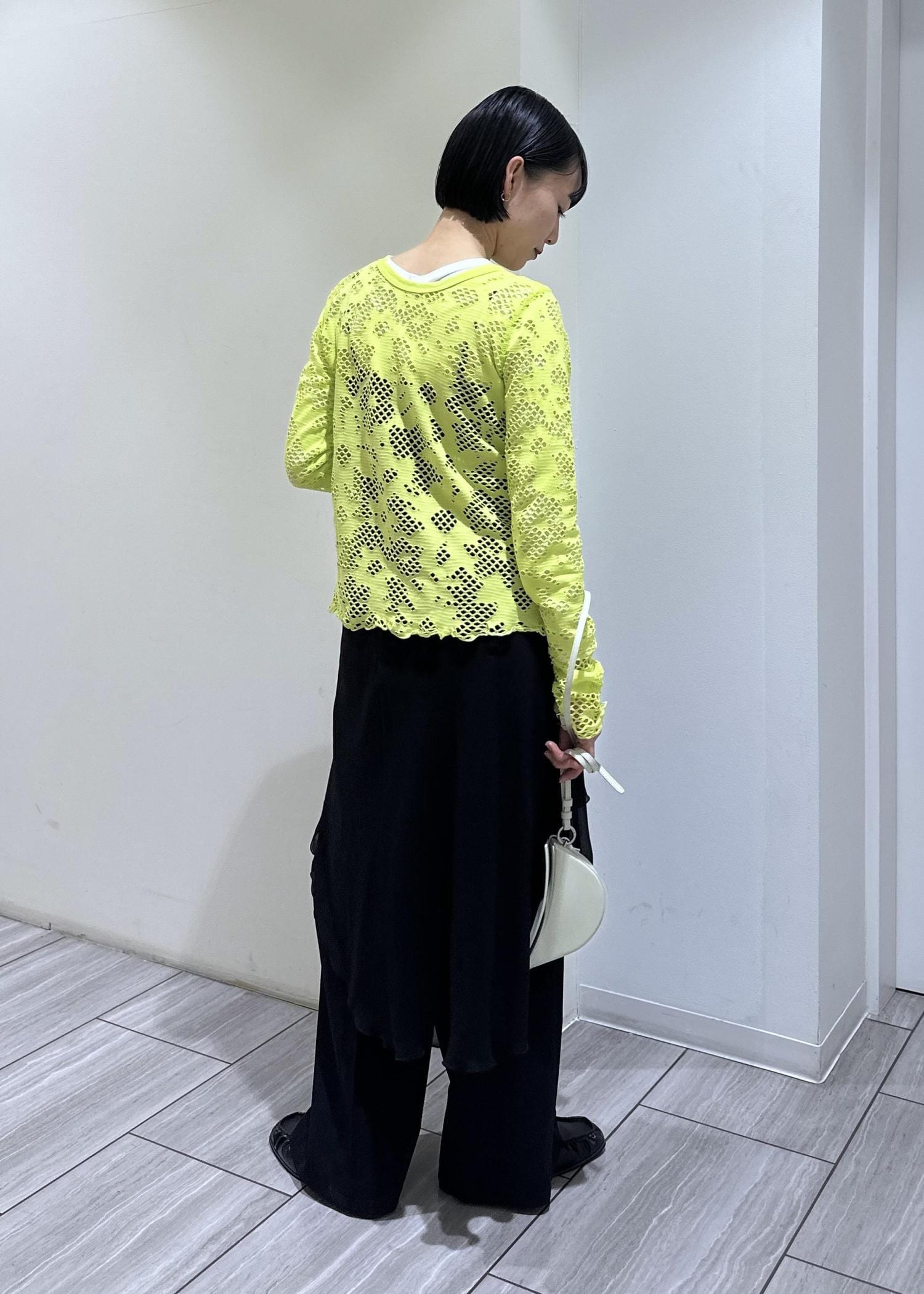 ADAM ET ROPÉ FEMME2WAYホールジャガードトップスキミドリ / F¥15,950レビュー薄手素材のアイテム。インナーとしても一枚着としても大活躍間違い無しのトップス。