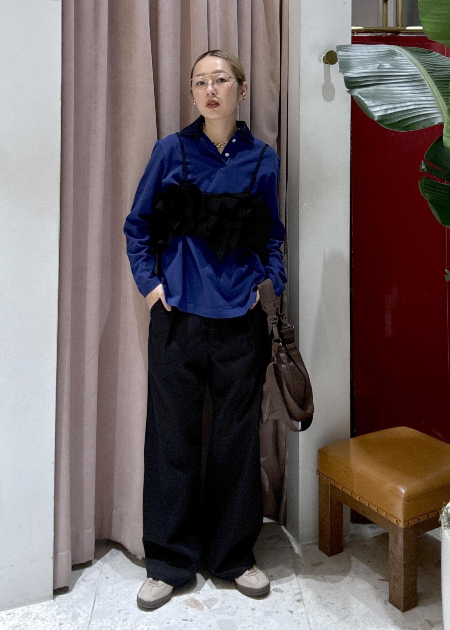 本日は、新作のフリルビスチェを合わせたスタイリングのご紹介です。