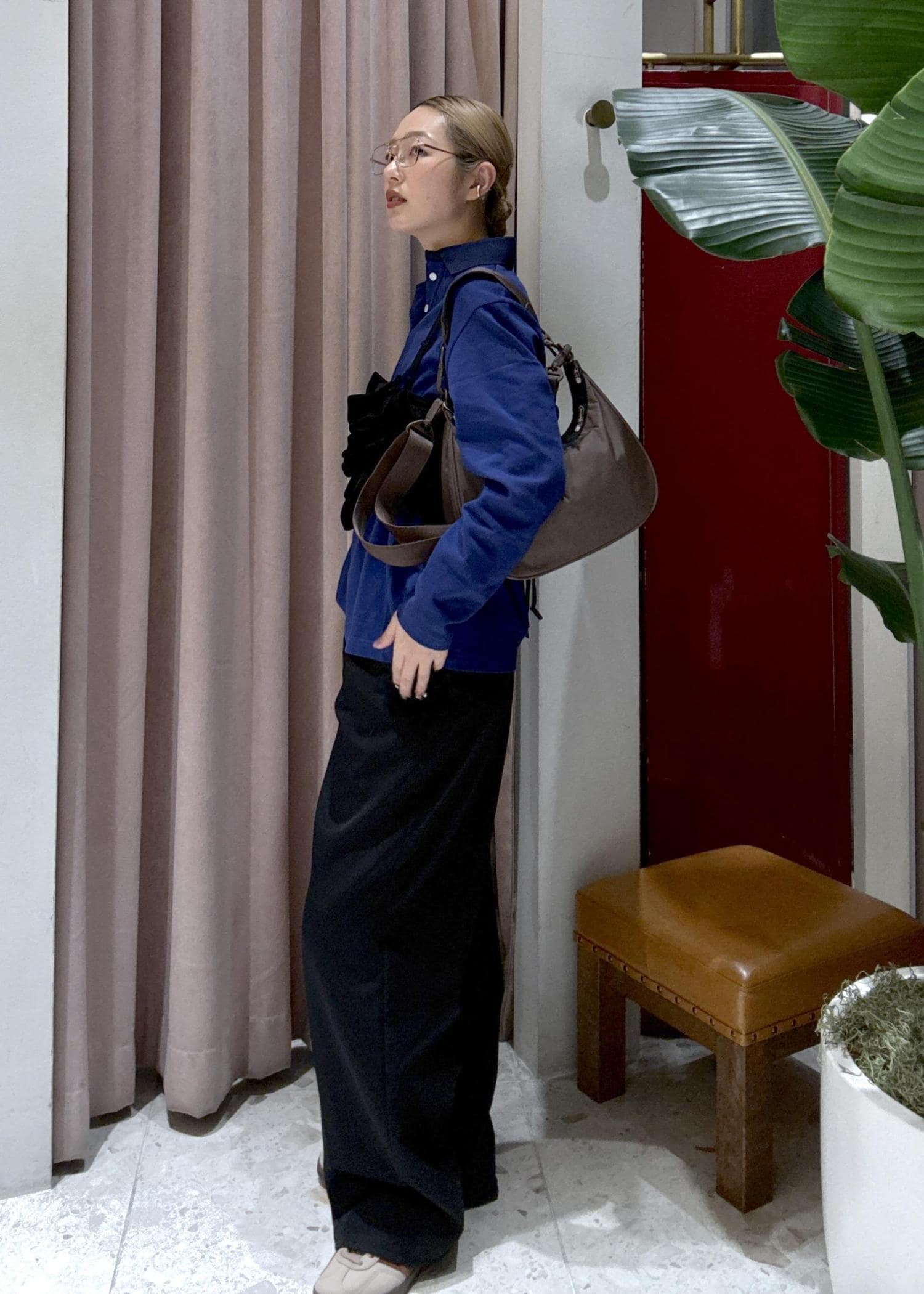 肩紐で長さの調整ができ、バランスがとりやすい一枚です。 -
