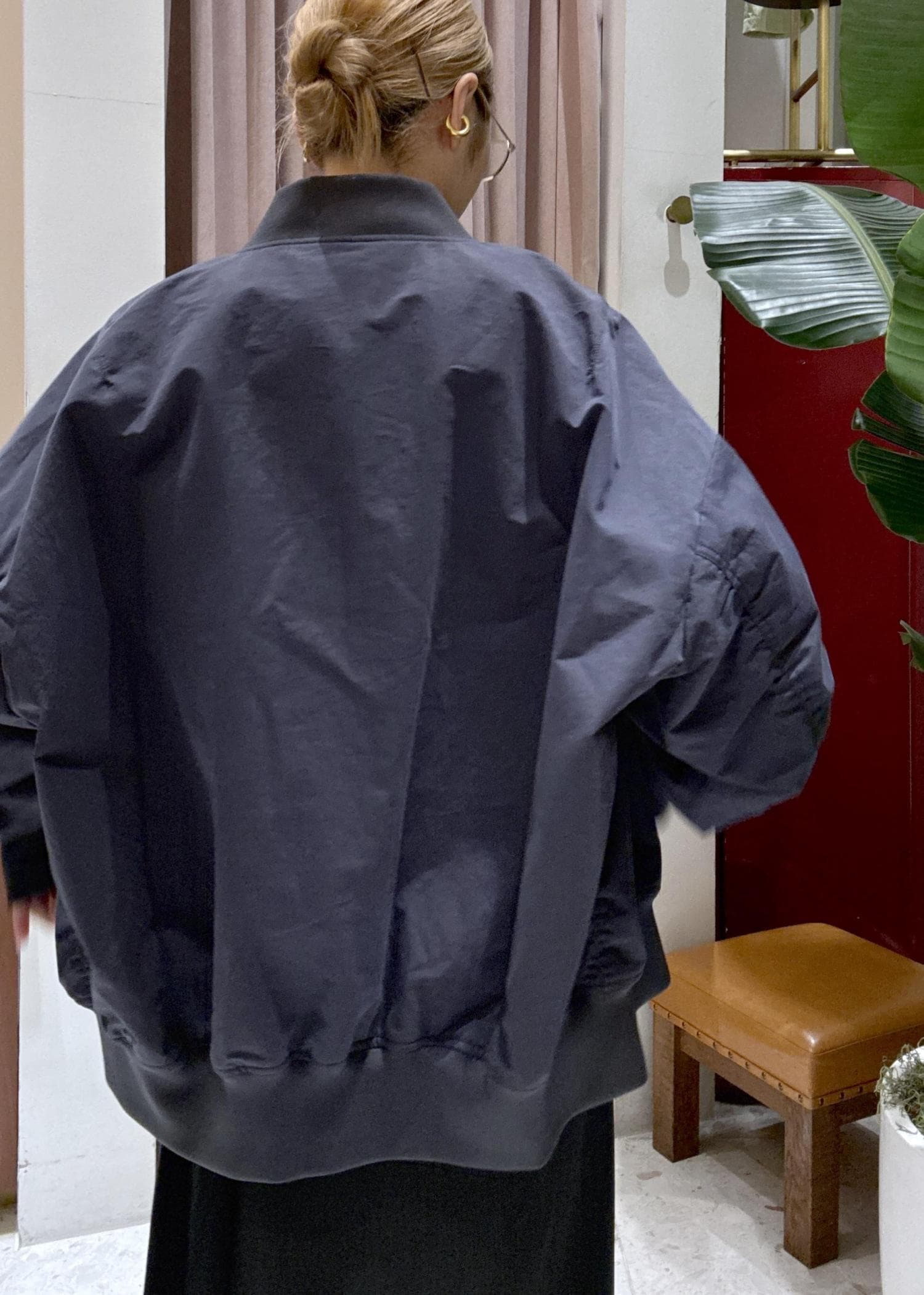 全体的にゆとりのあるサイズ感です。かなりオーバーシルエットで、中にたくさん着込めそうです◎アームなボリューム感も可愛く存在感のあるデザインが魅力的でした!