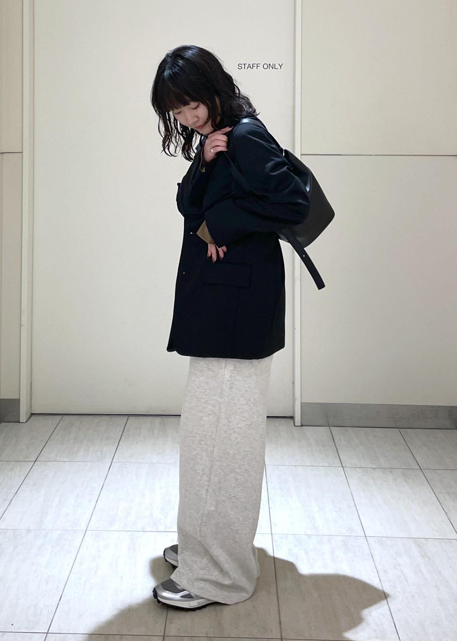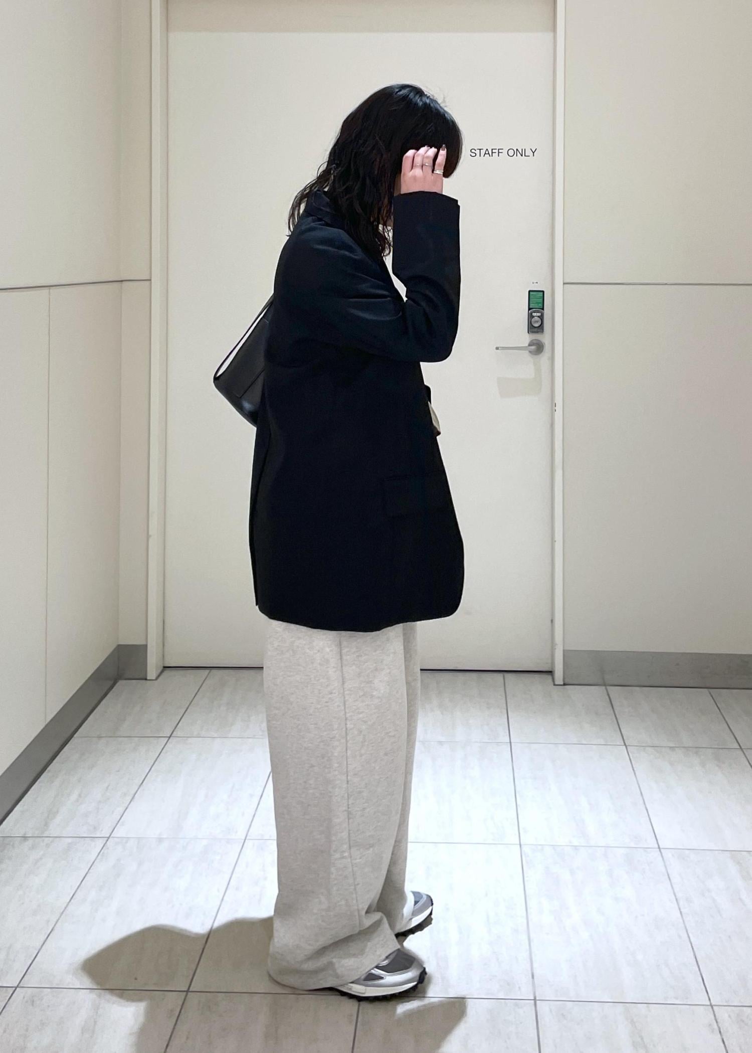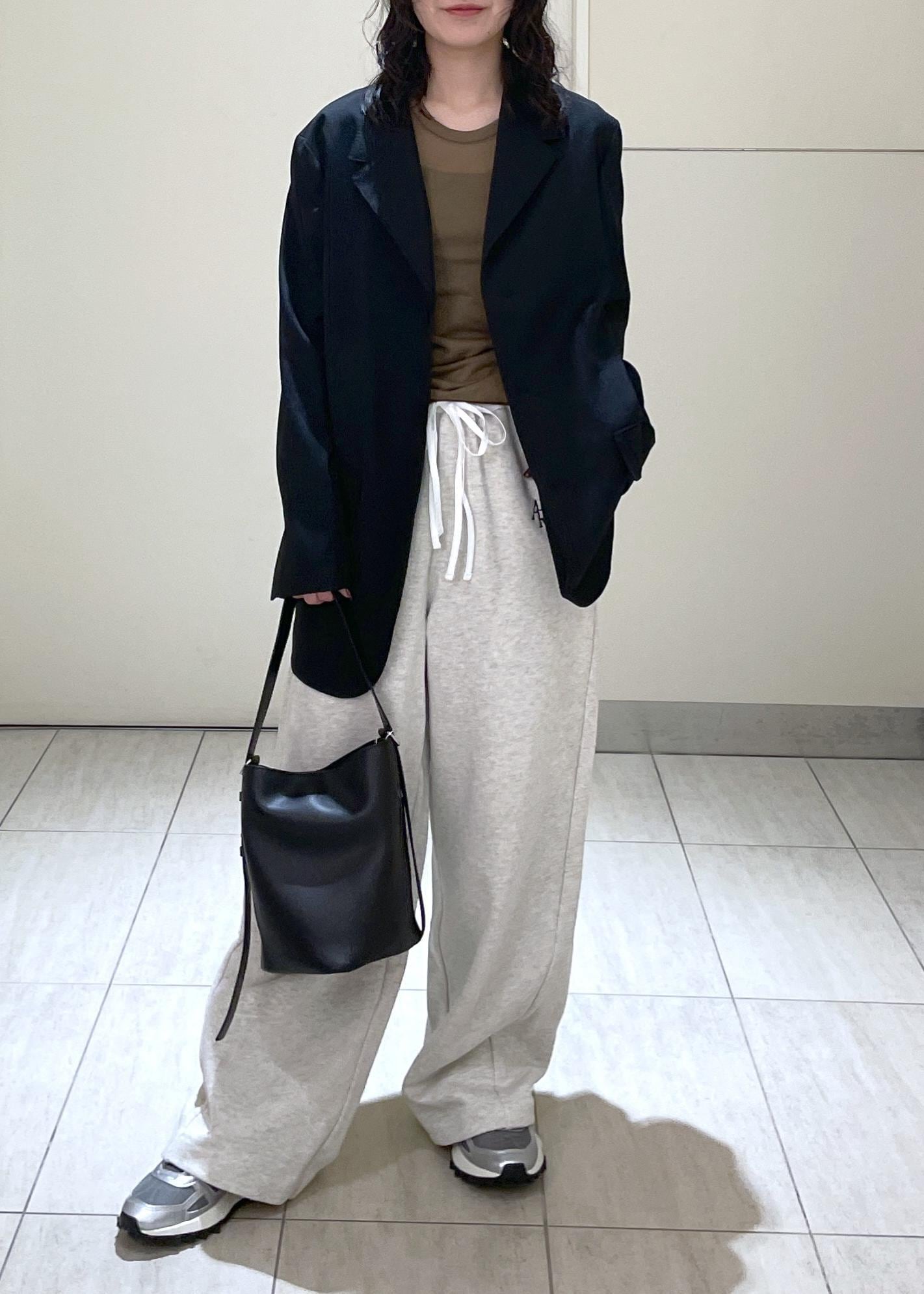 ジャケットはかっちりしすぎないように大きめの38サイズで、ボトムスはスウェットパンツを合わせてラフなジャケットコーデにしてみました!