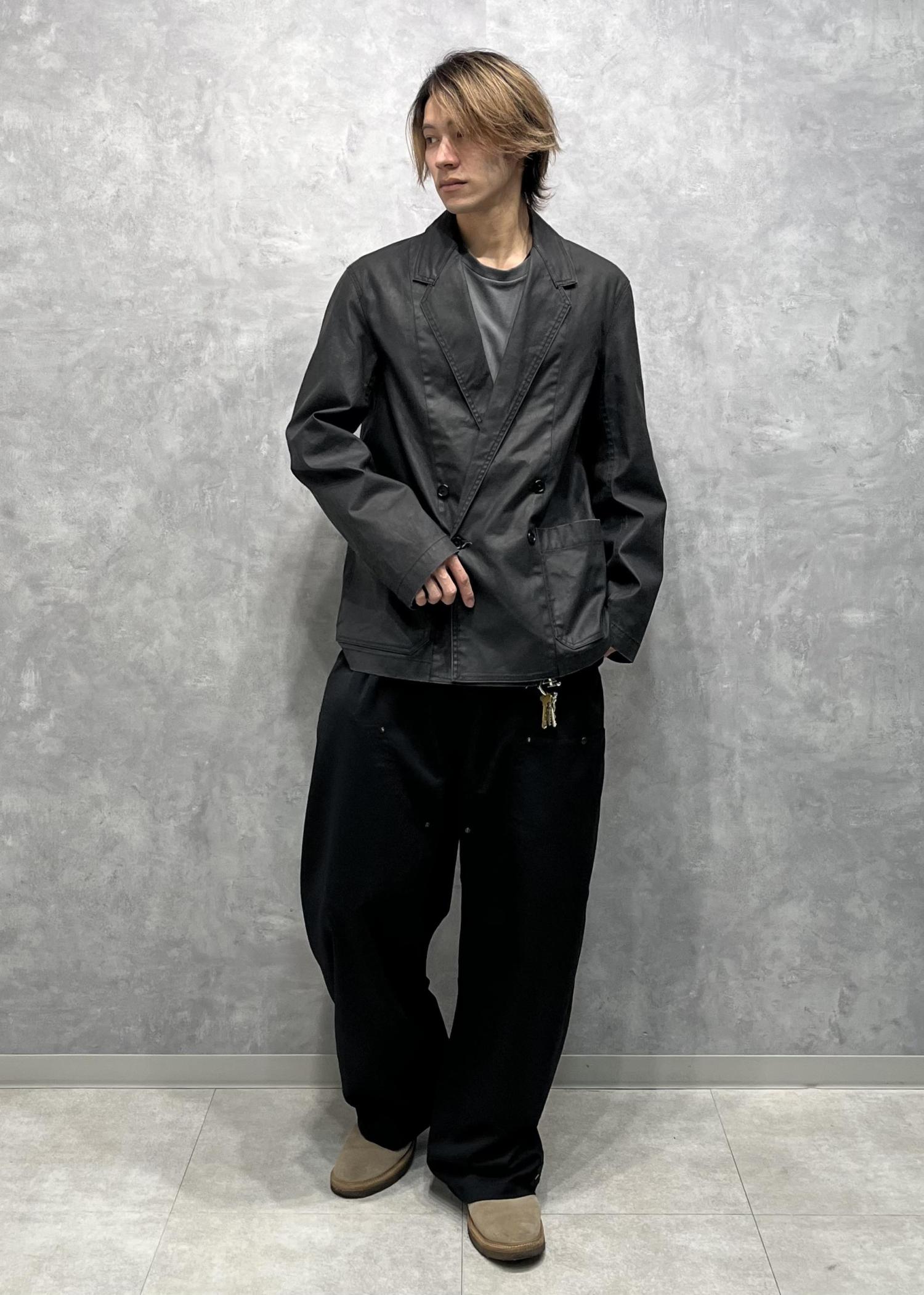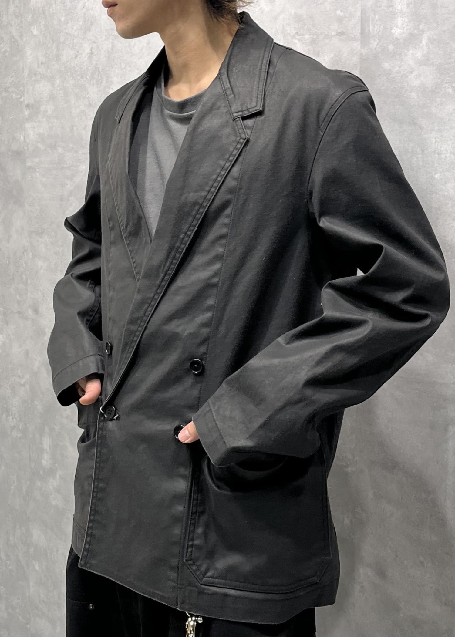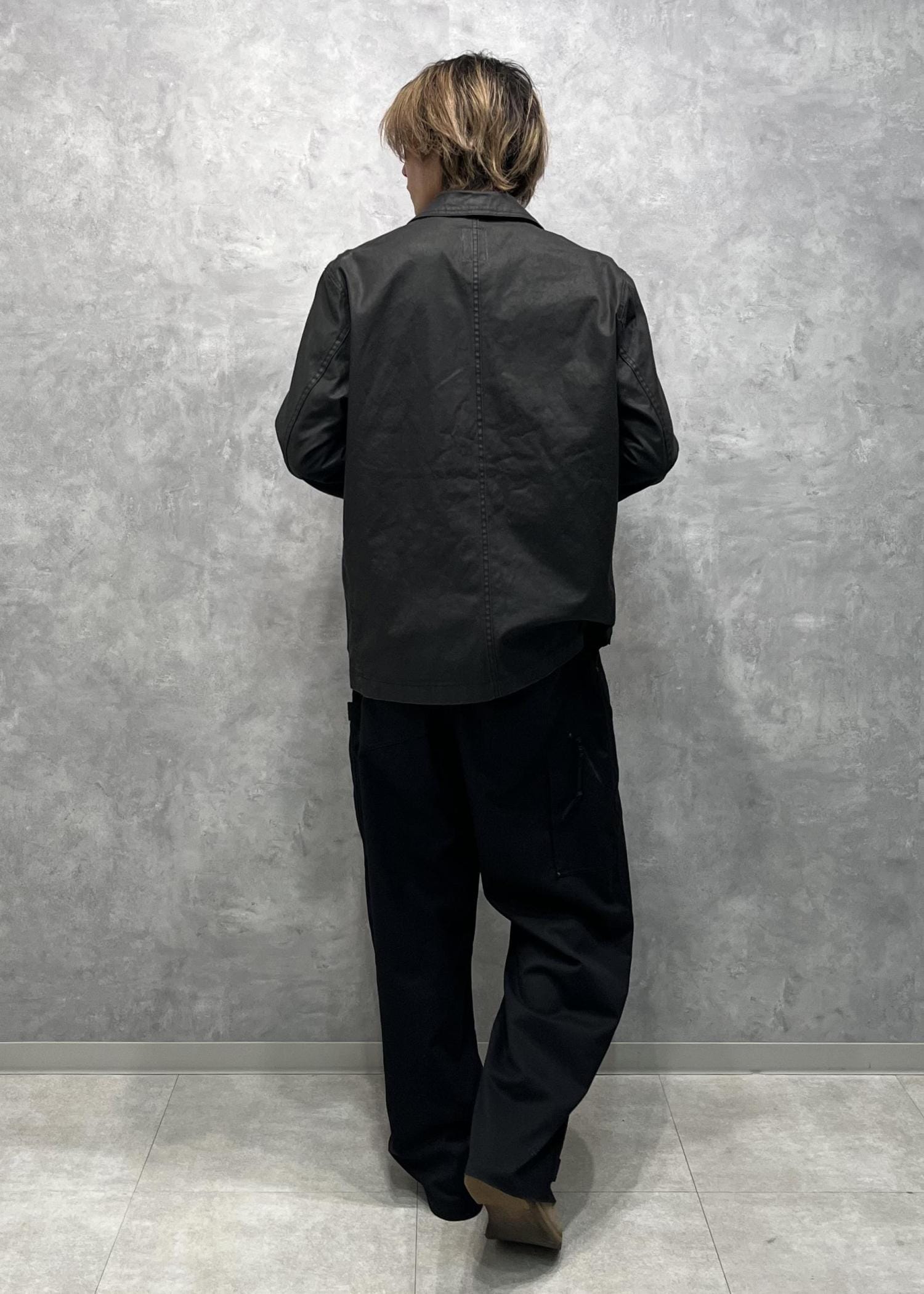 Mサイズでほどよい着用感でした。デニム地なのにレザー見えするようなコーティングが他にはない1着です。 -