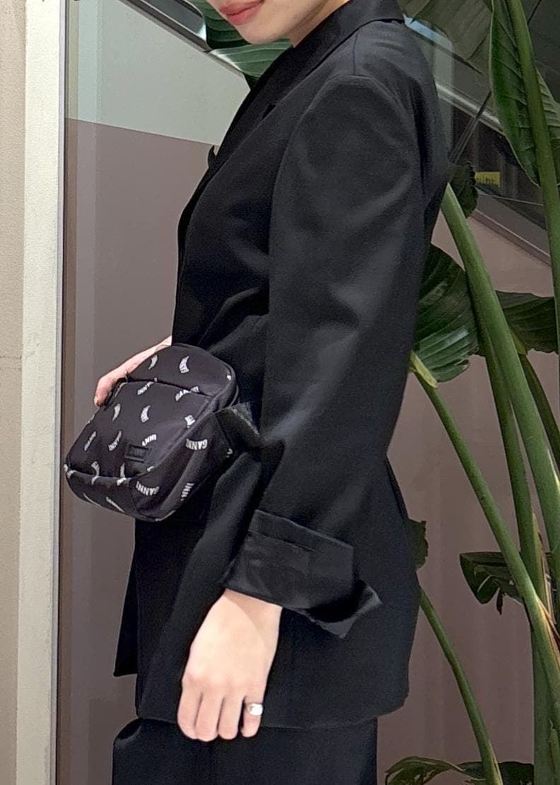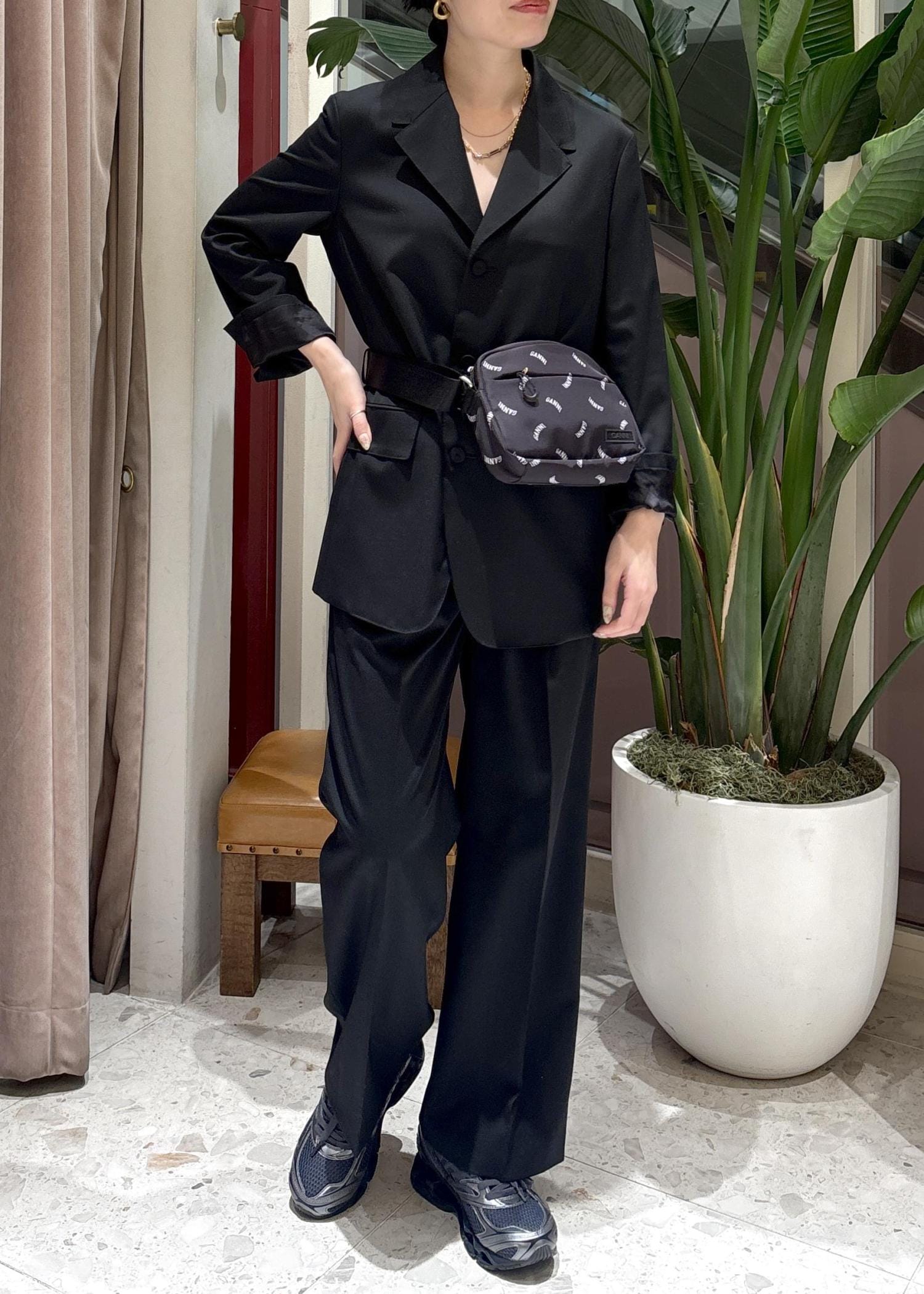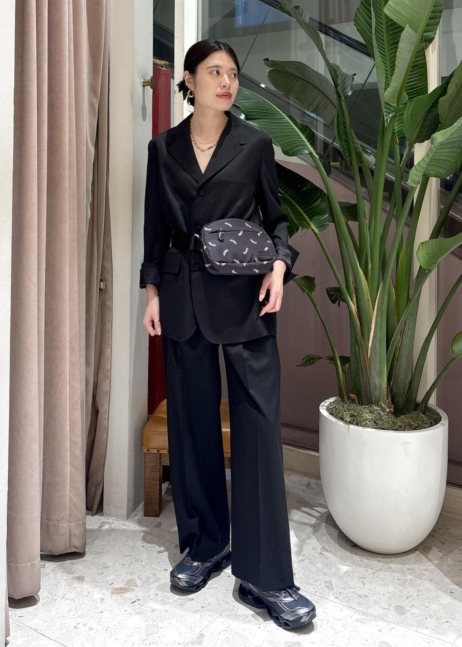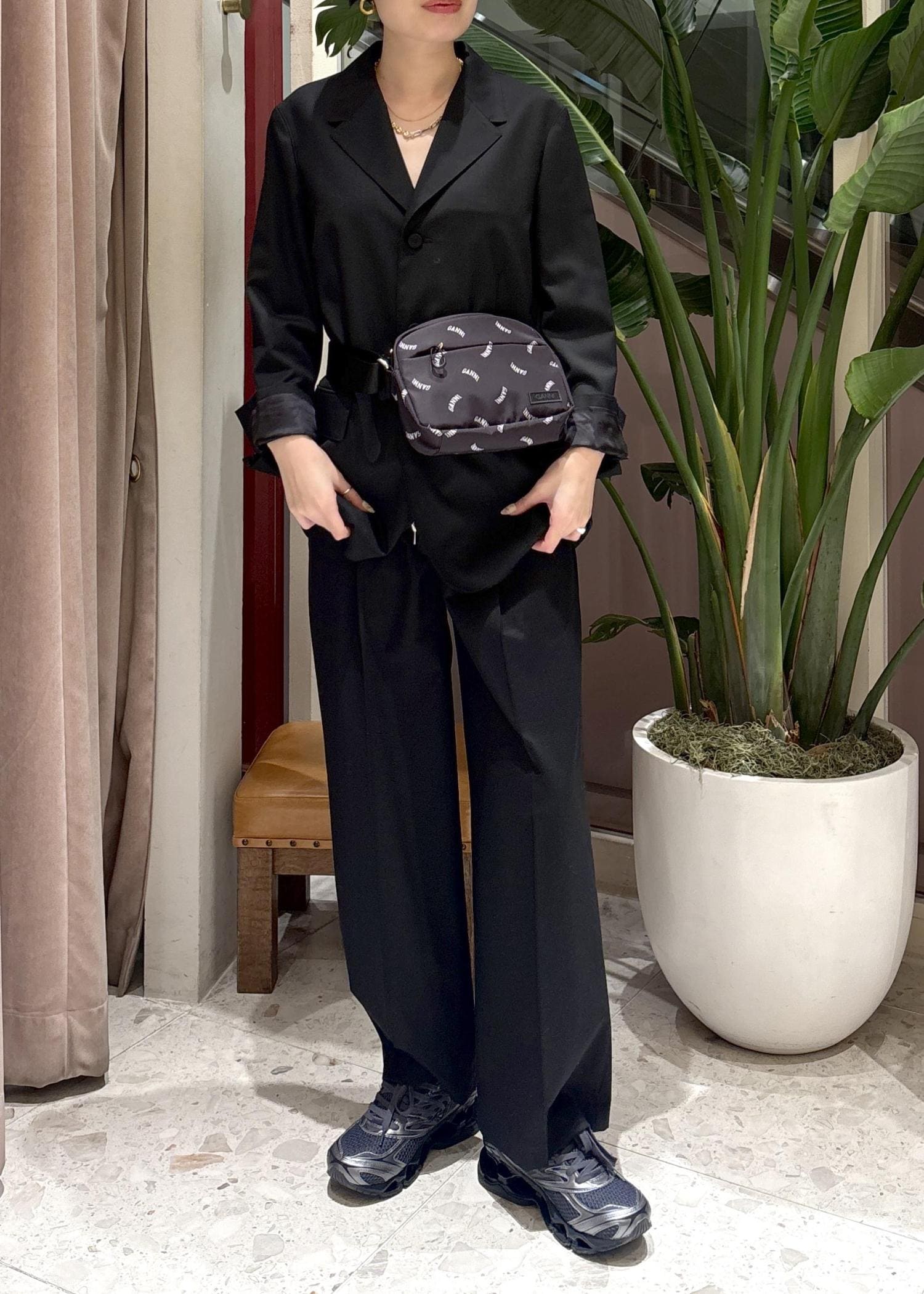 私はモードなセットアップに外しアイテムとしてポシェット風に身につけてみました!
