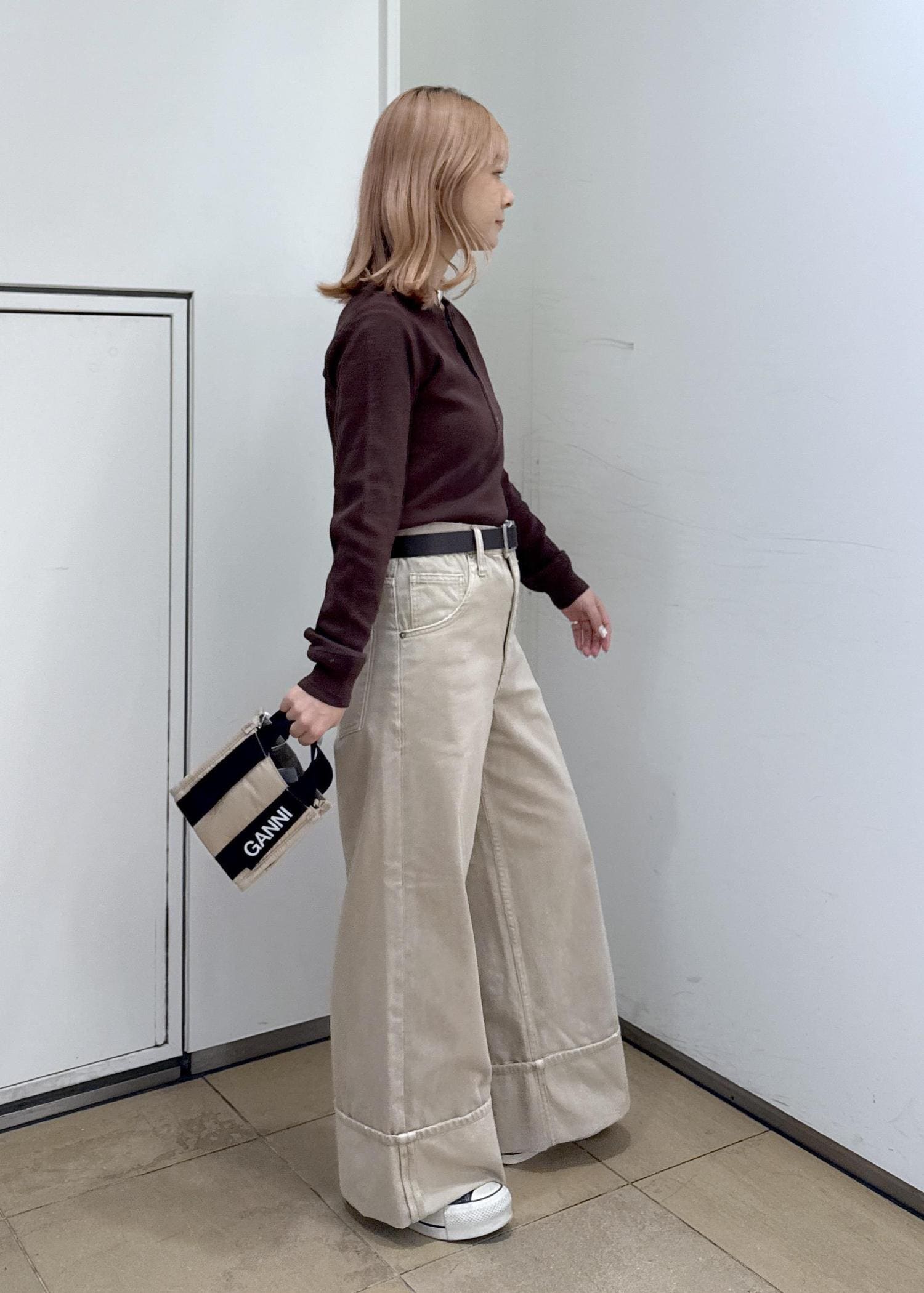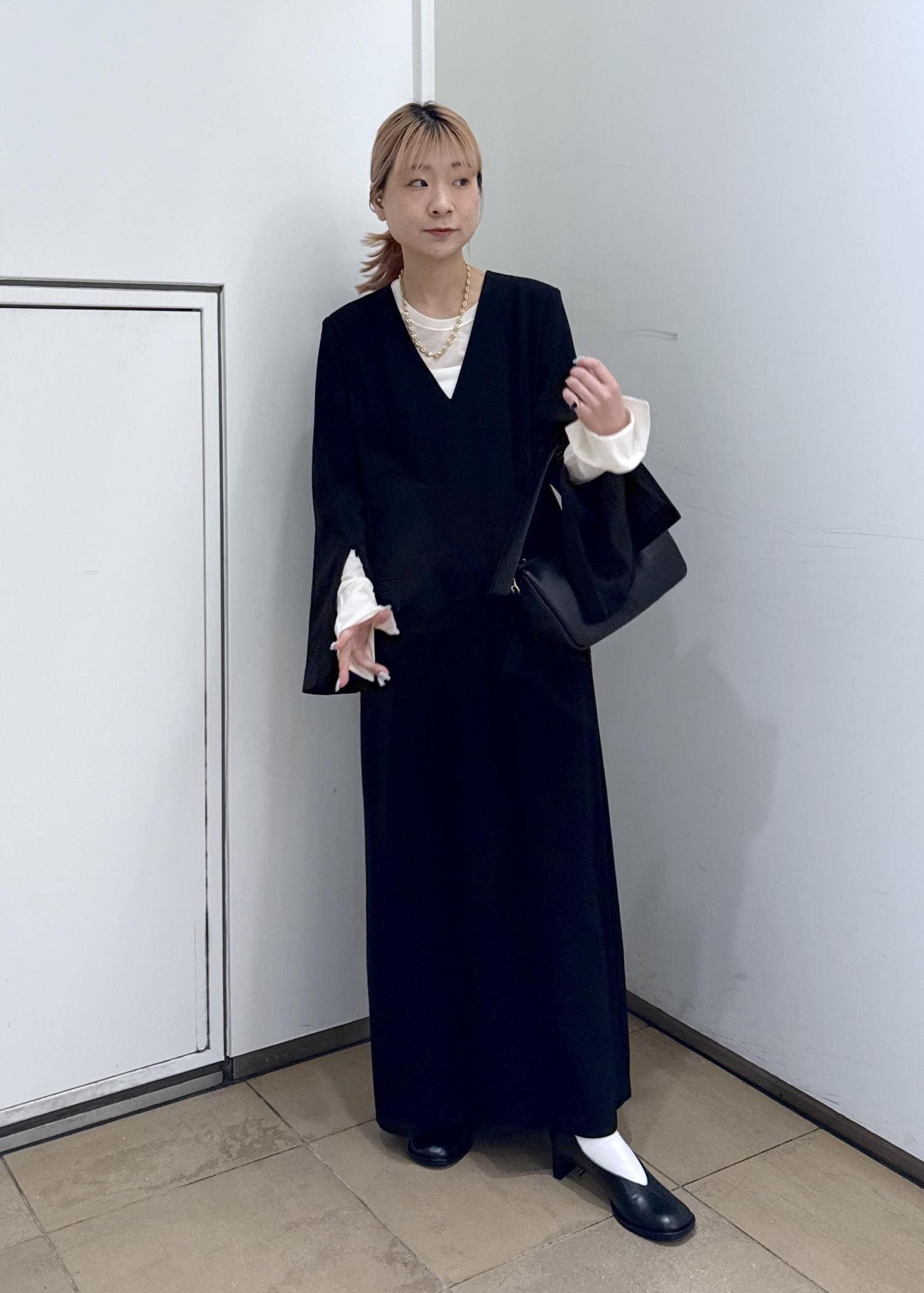 裾にかけてルーズにワイドになっていきウエスト周りははスッキリと着れます。 -