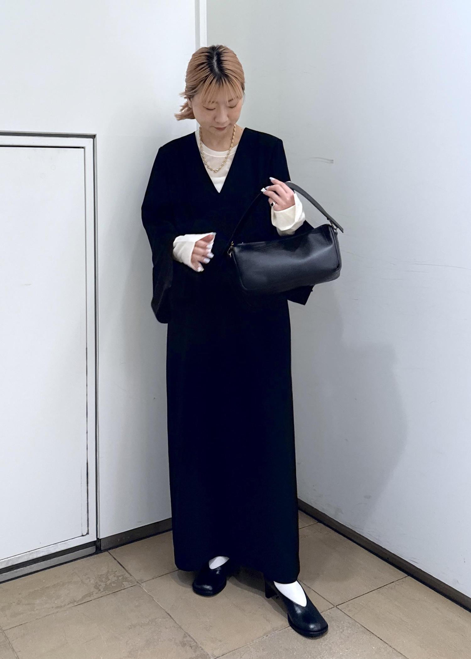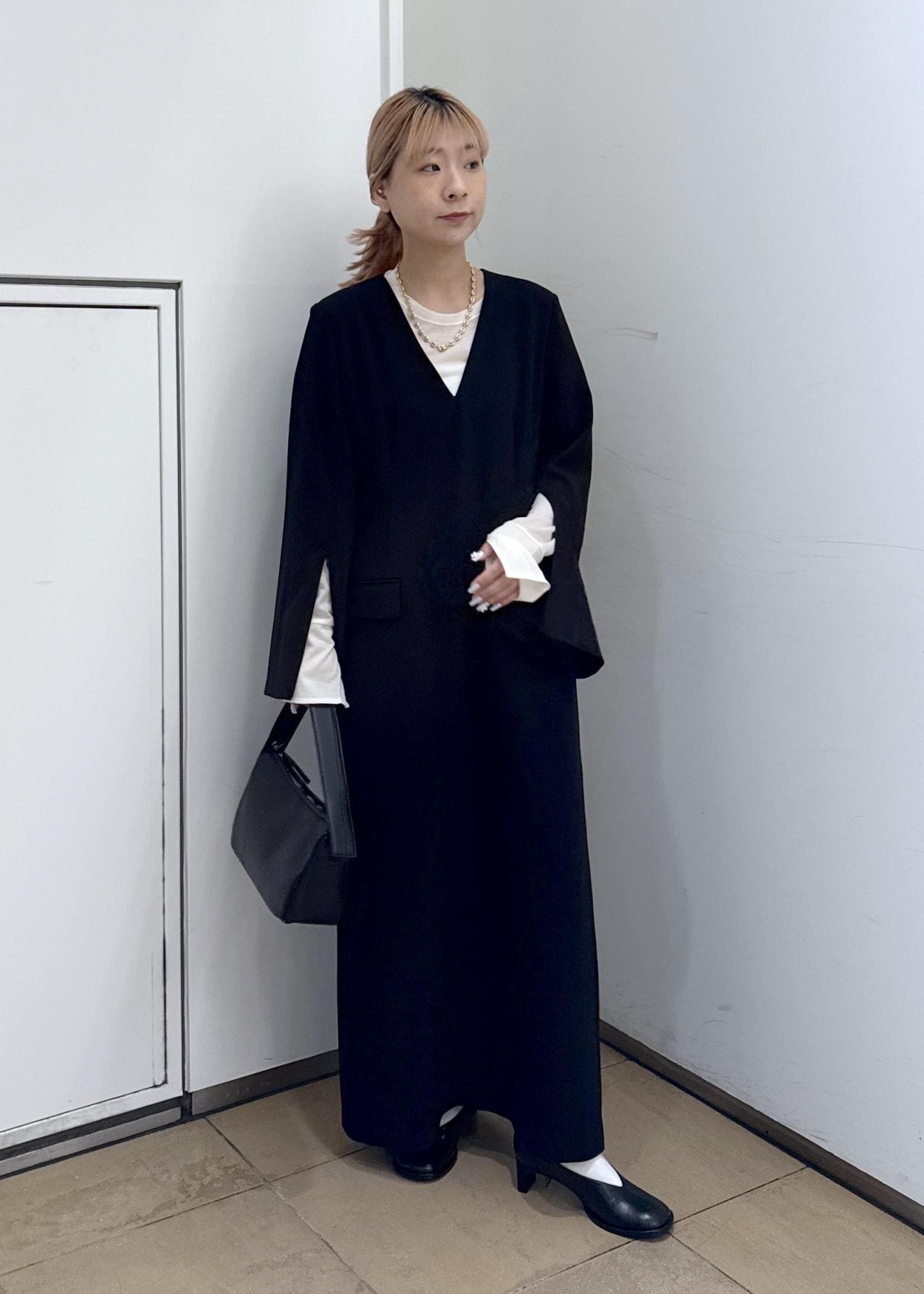 ADAM ET ROPÉ FEMME【サステナブル】スリットスリーブワンピースブラック / 38¥33,000レビュー159センチ38を着用してみました!