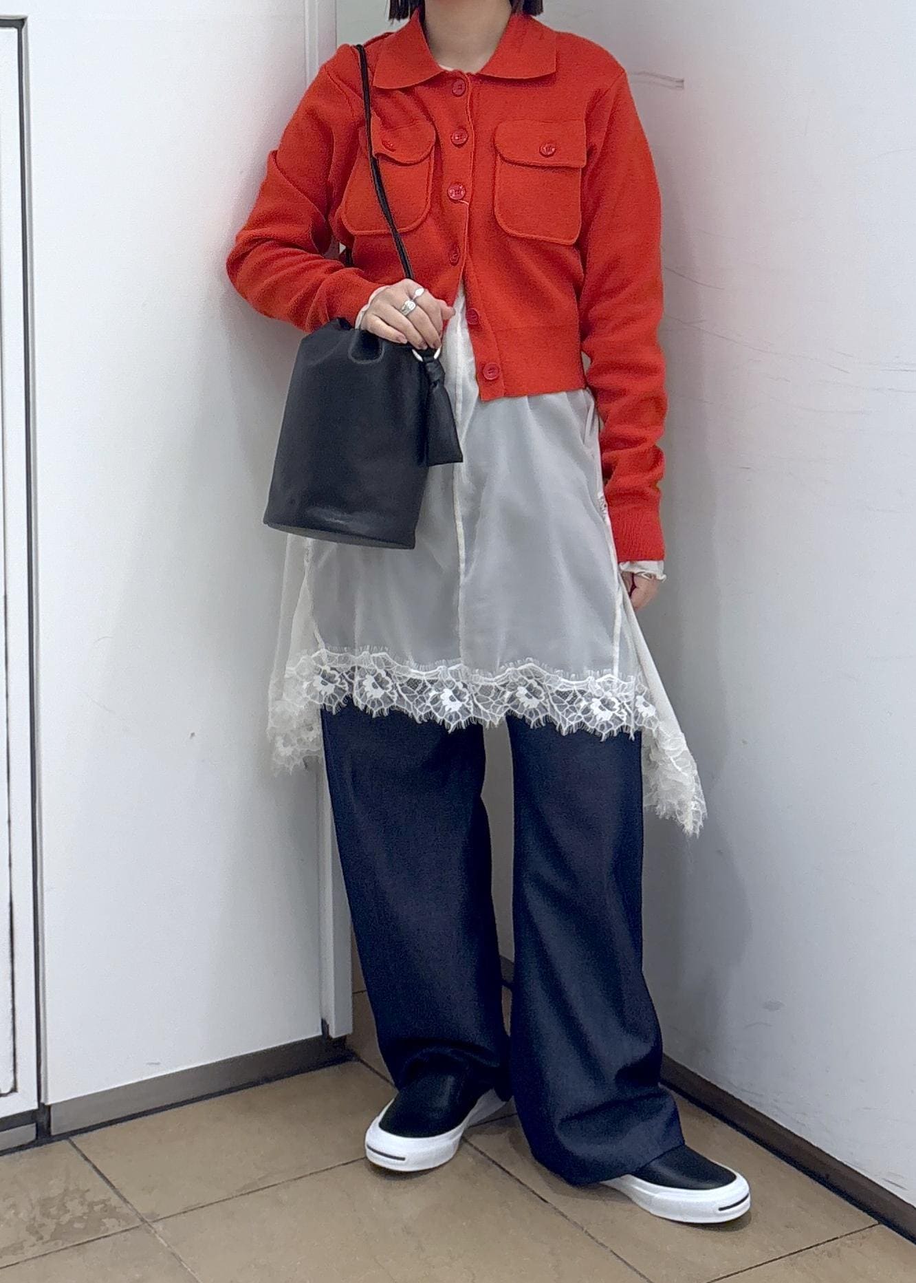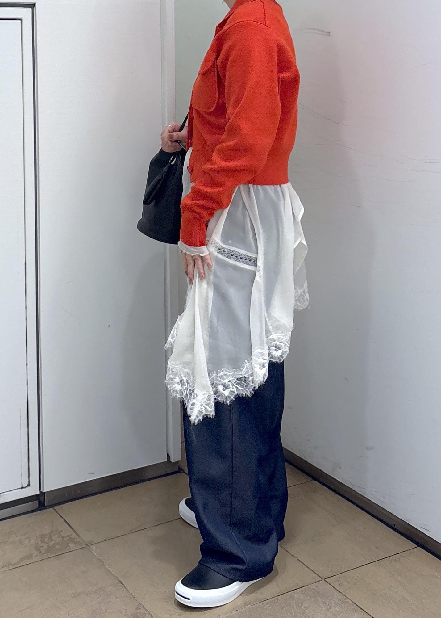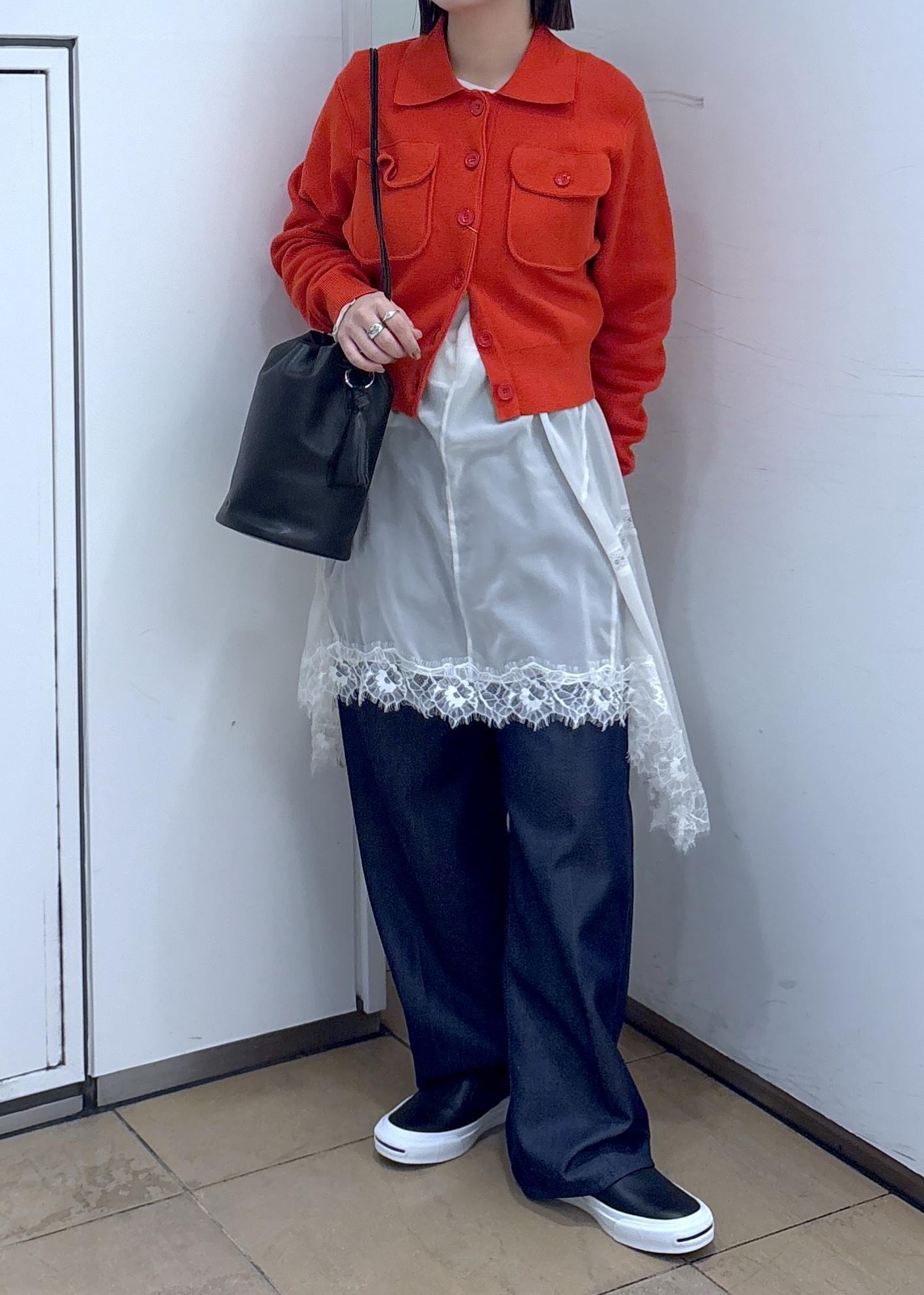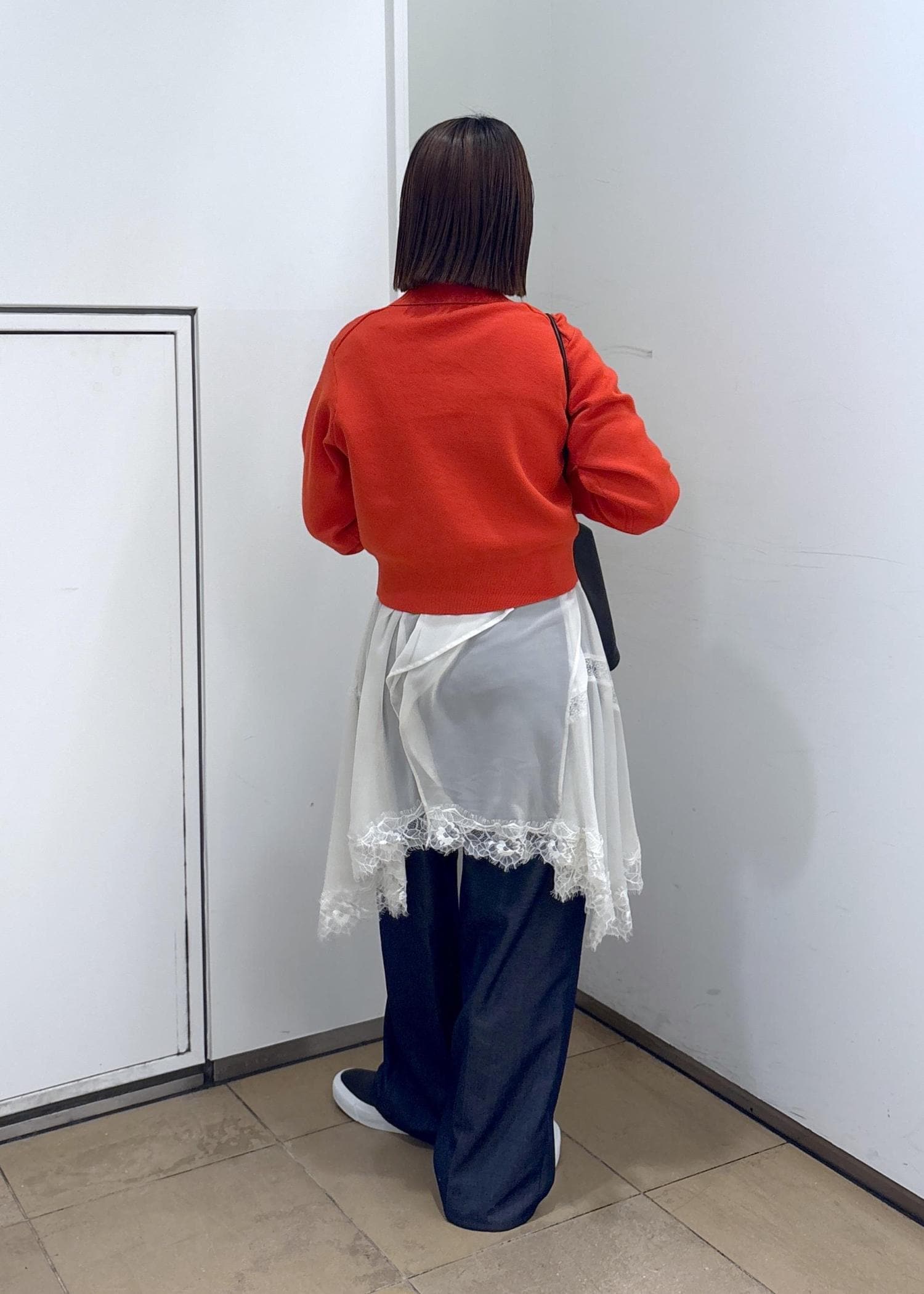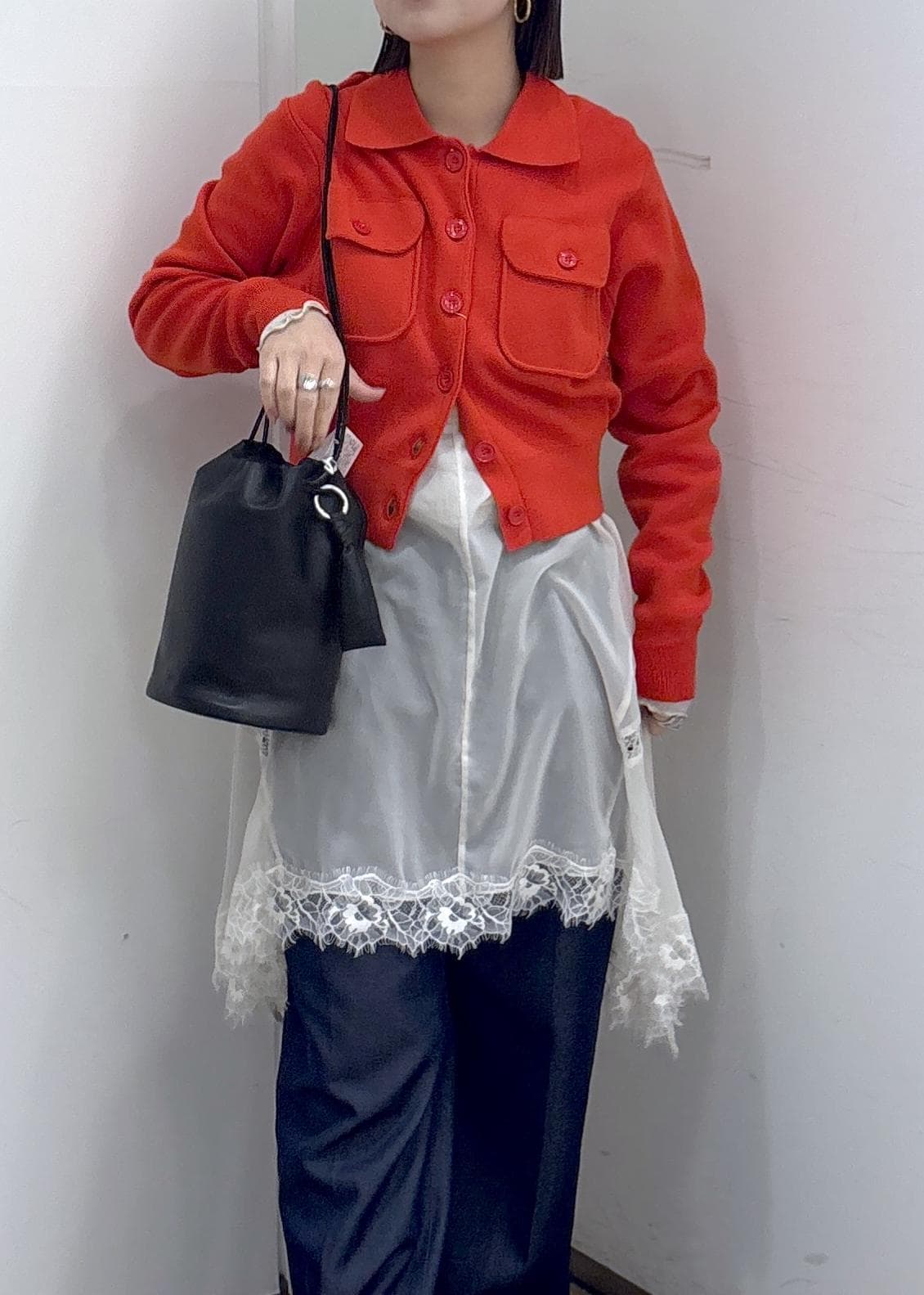 ADAM ET ROPÉ FEMMEコットンカシミヤポケットカーディガンレッド系 / F¥24,200レビュー丈感もコンパクトでコンパクトなシルエットです。