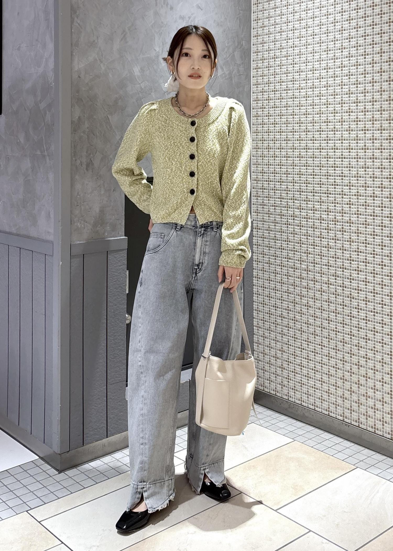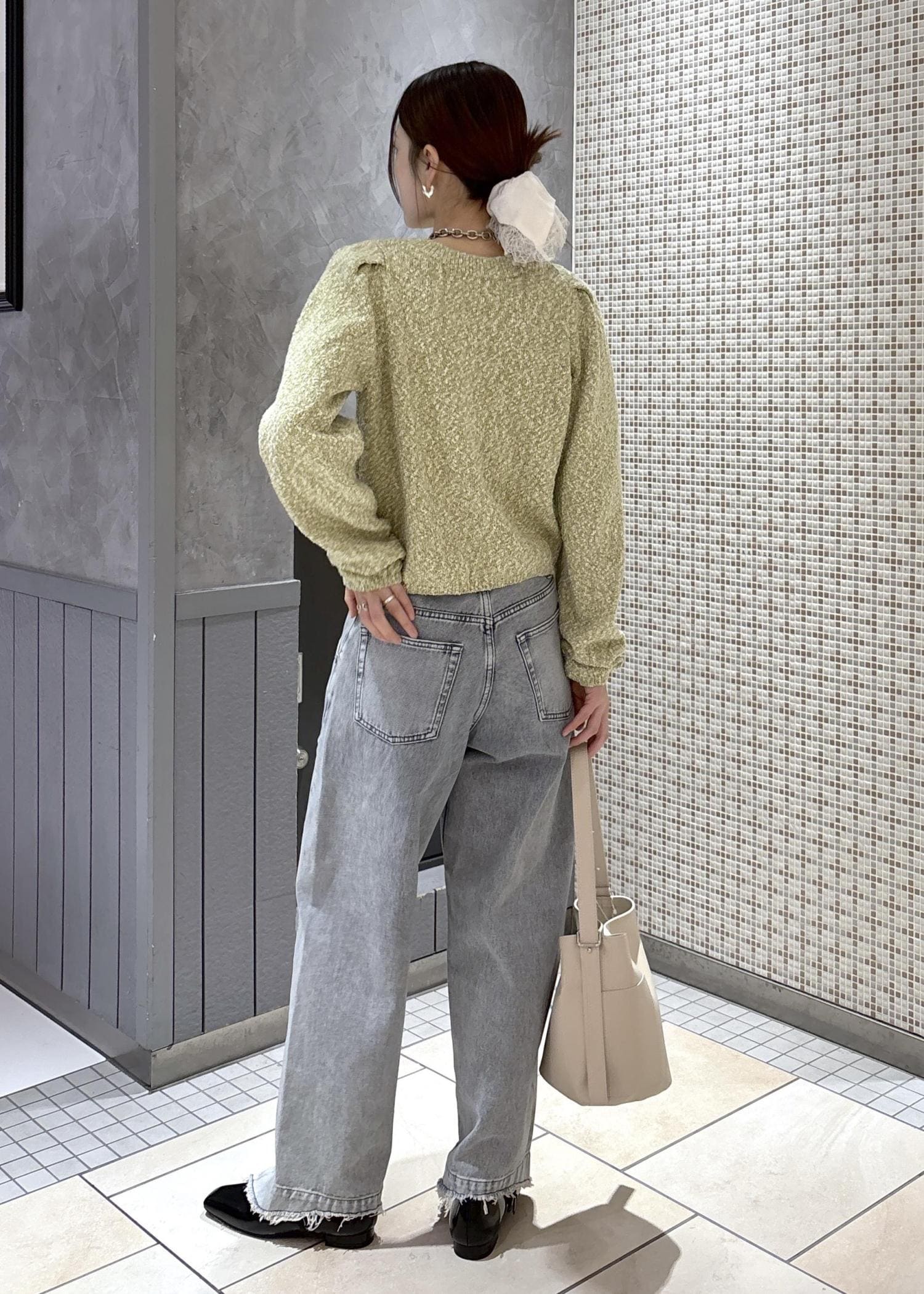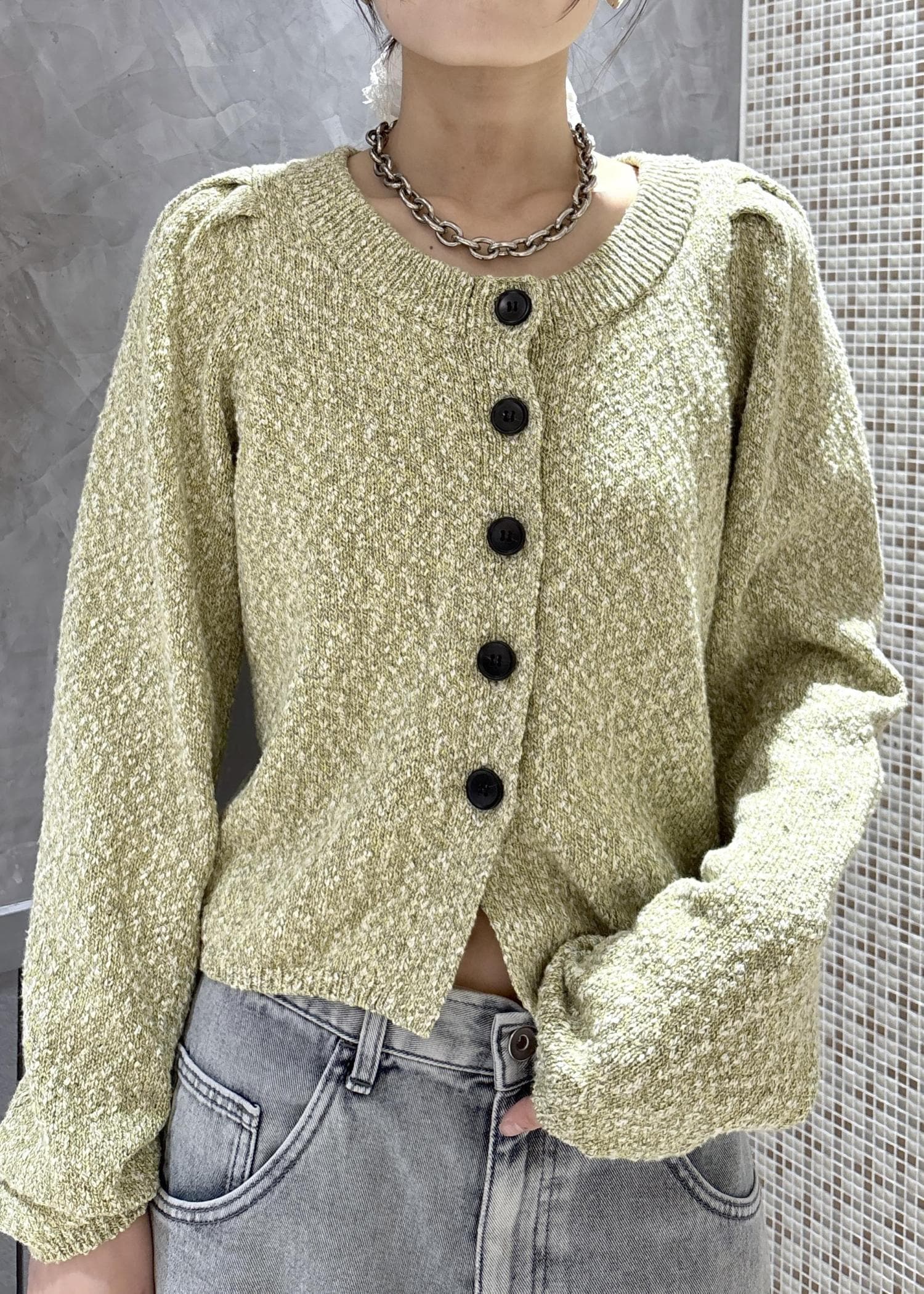 ADAM ET ROPÉ FEMME【サステナブル】カラーメランジパフスリーブカーディガングリーン系 / F¥22,000レビュー首周りがややゆったりめのUネックで、顔周りがスッキリ見えします!