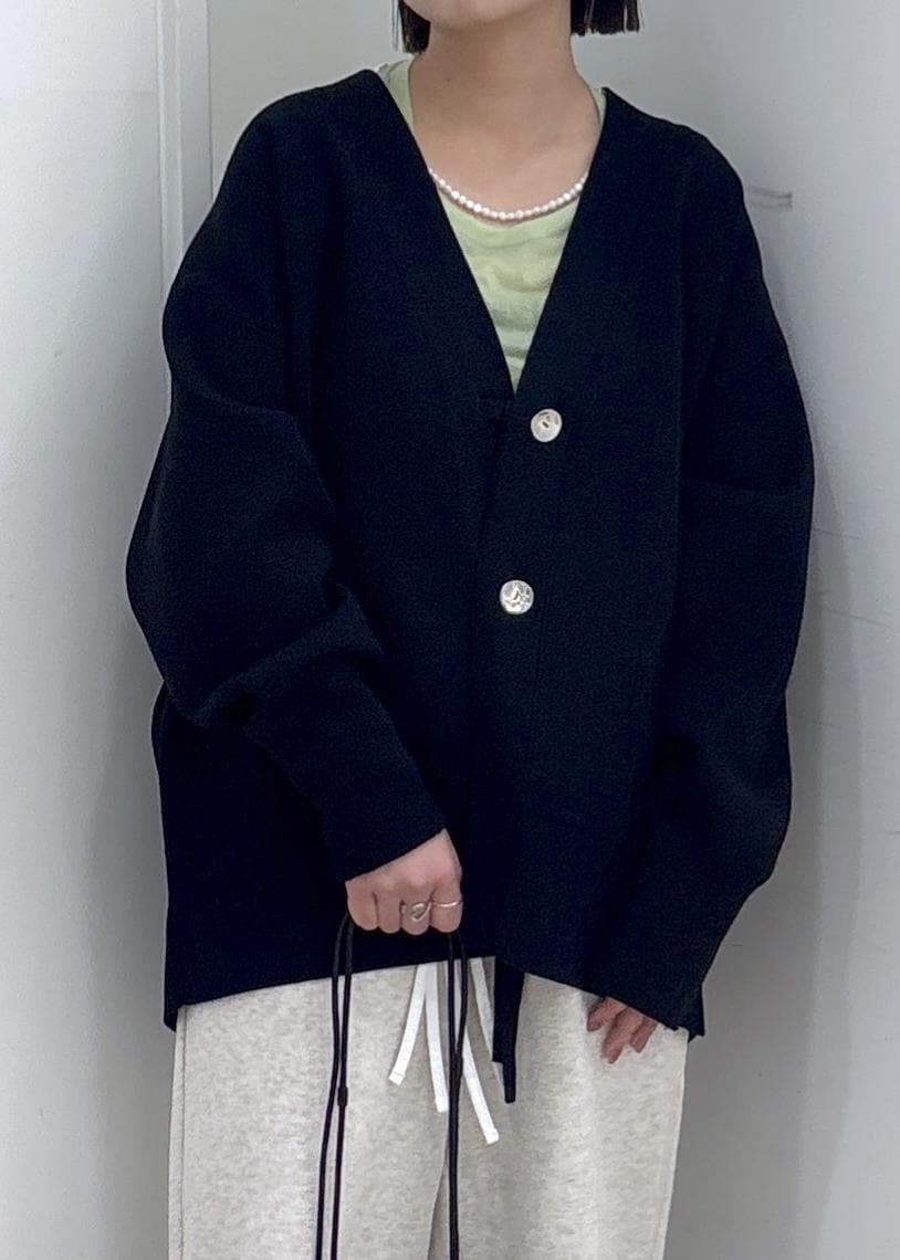 ボタンが2wayになっており、メタルボタン、リボン側にしたり雰囲気を変えて着用いただけます◎ヒップも隠れる丈感です。