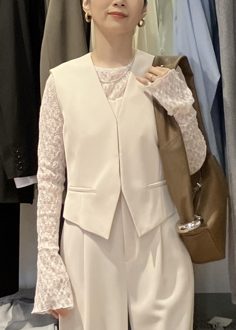 デニムとスウェットだけのスタイリングもこのレースを間に着るだけで、オシャレなスタイリングに格上げされますよ! -